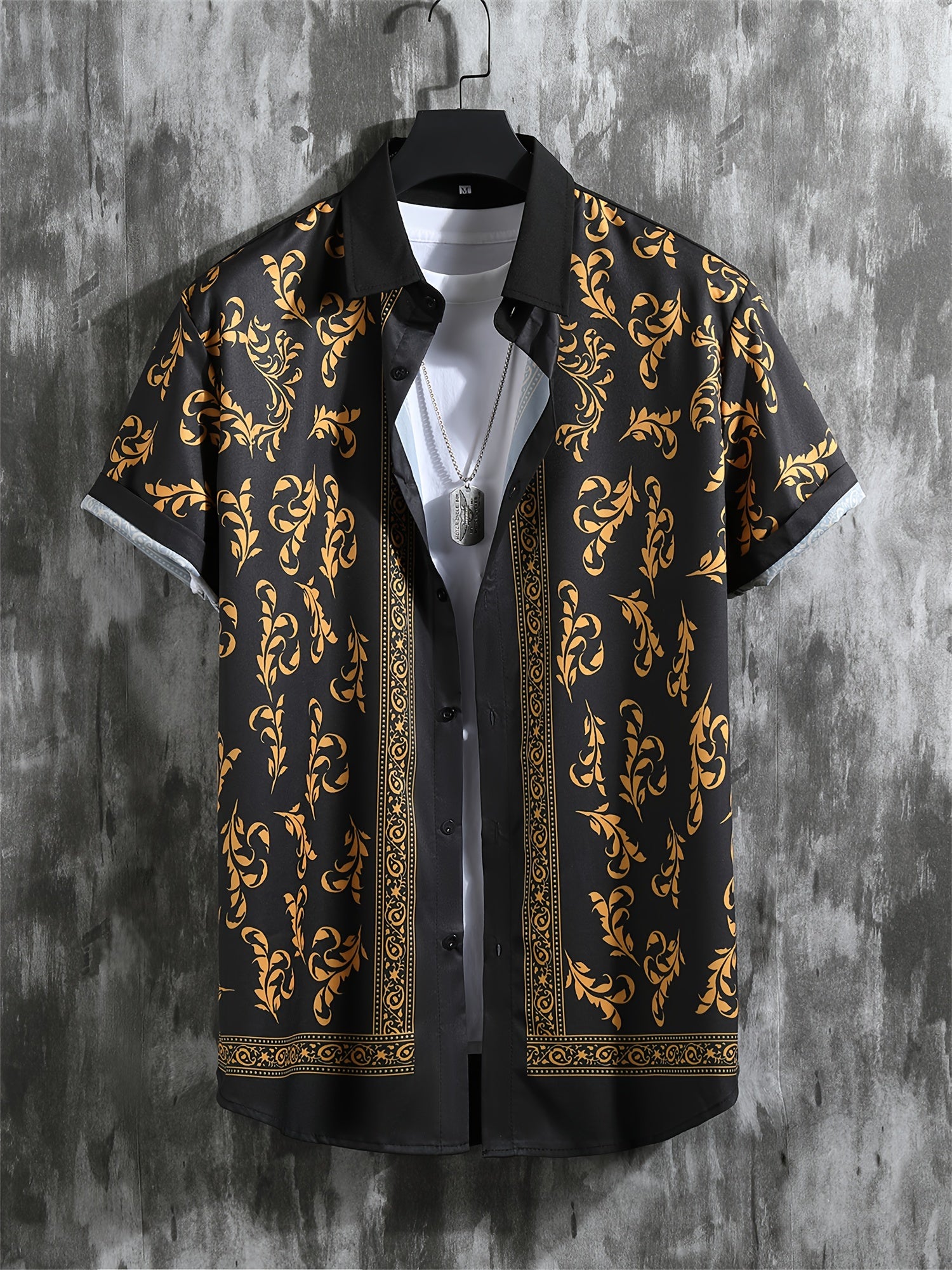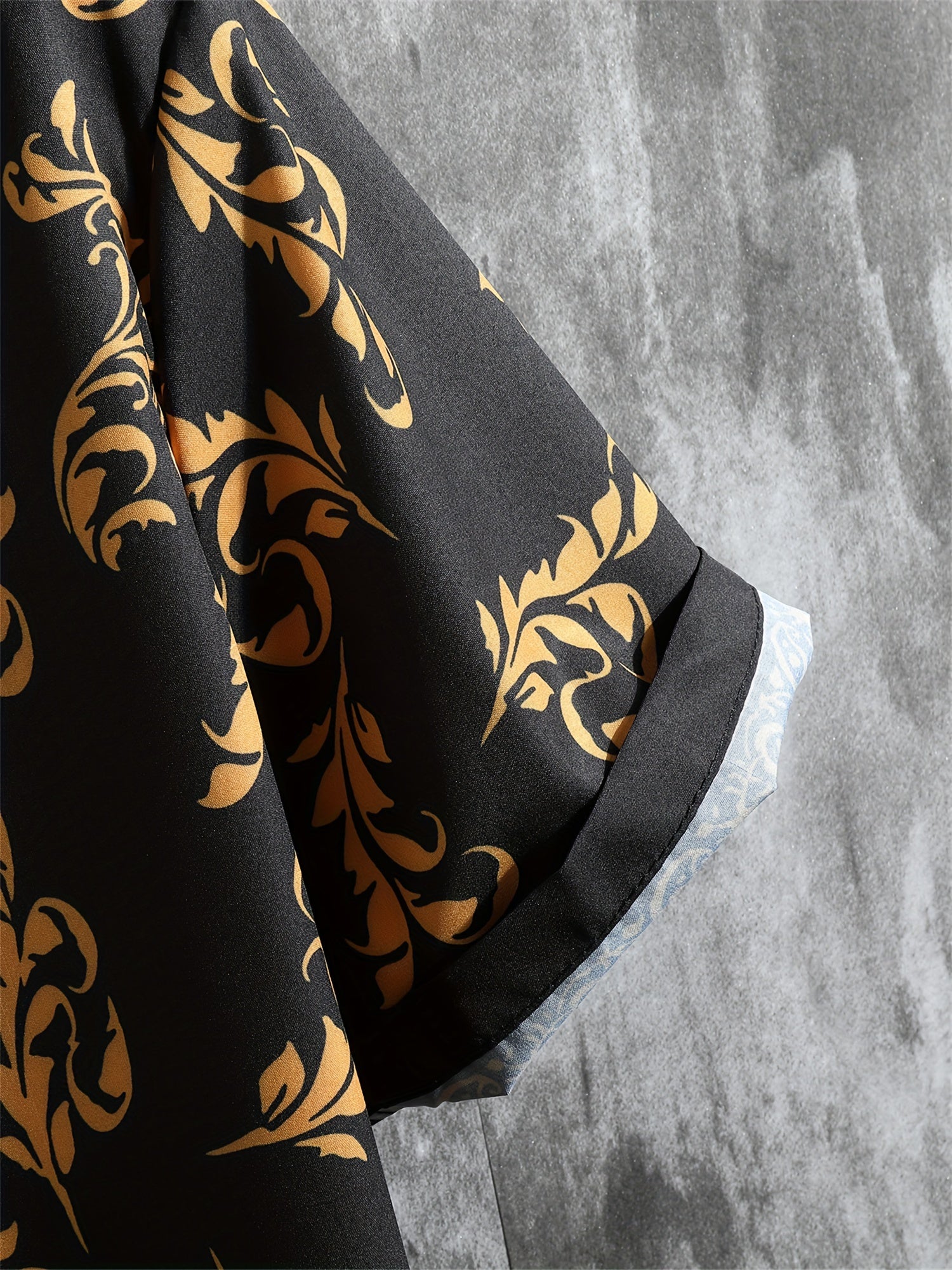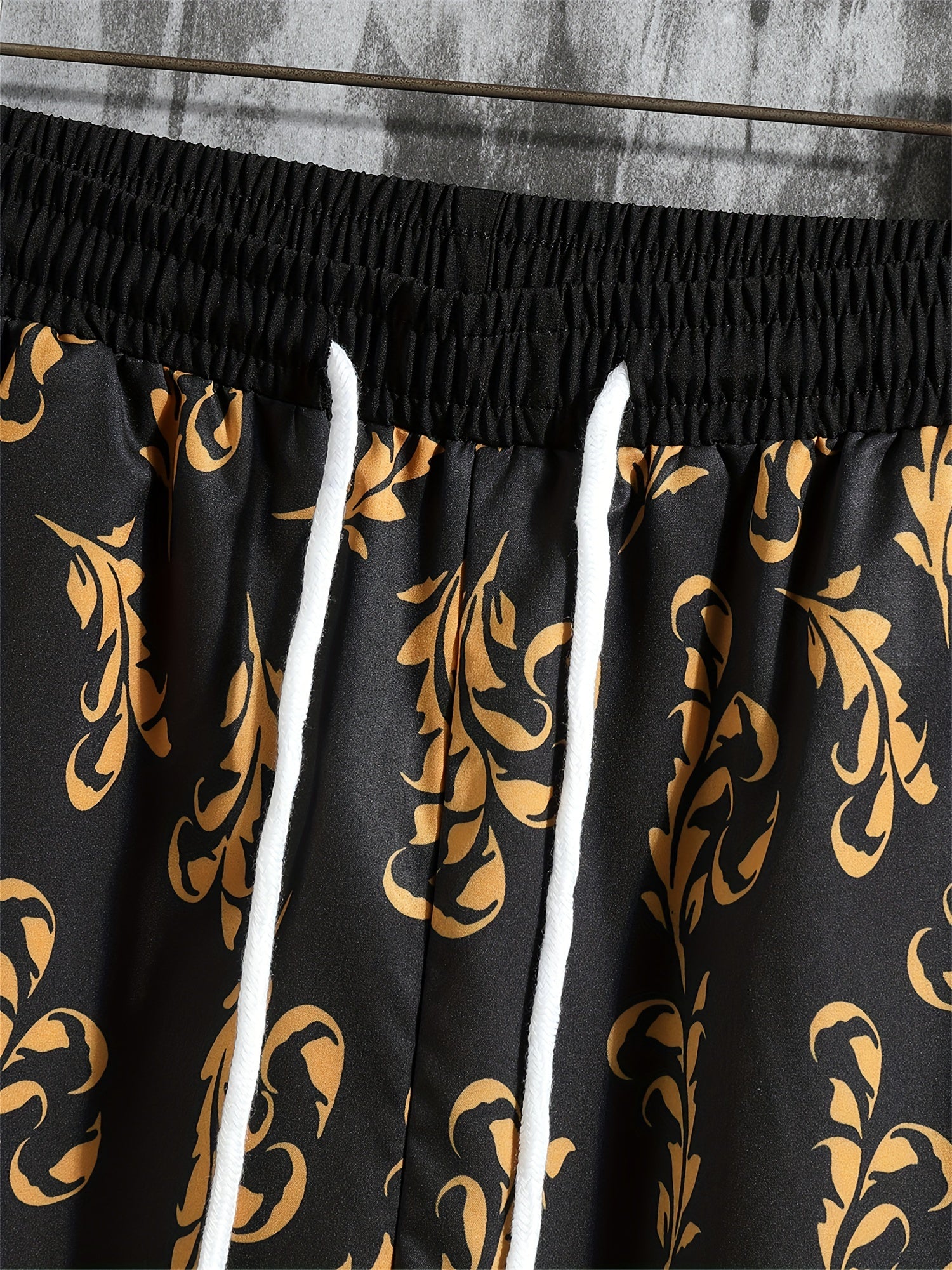 Men's Casual Summer Outfit Set, Short Sleeve Shirt And Pants, Floral Print, Polyester Blend, Machine Washable