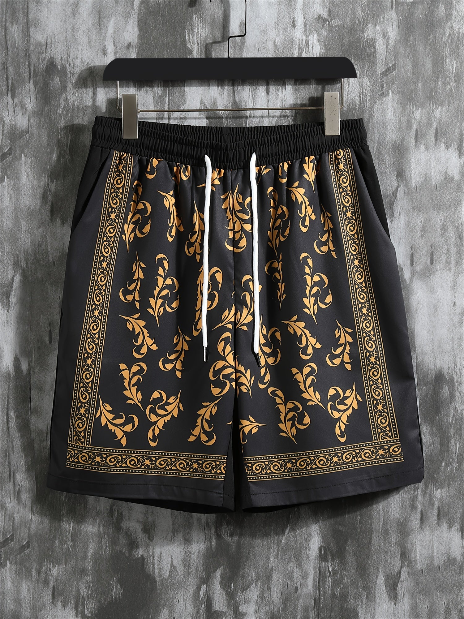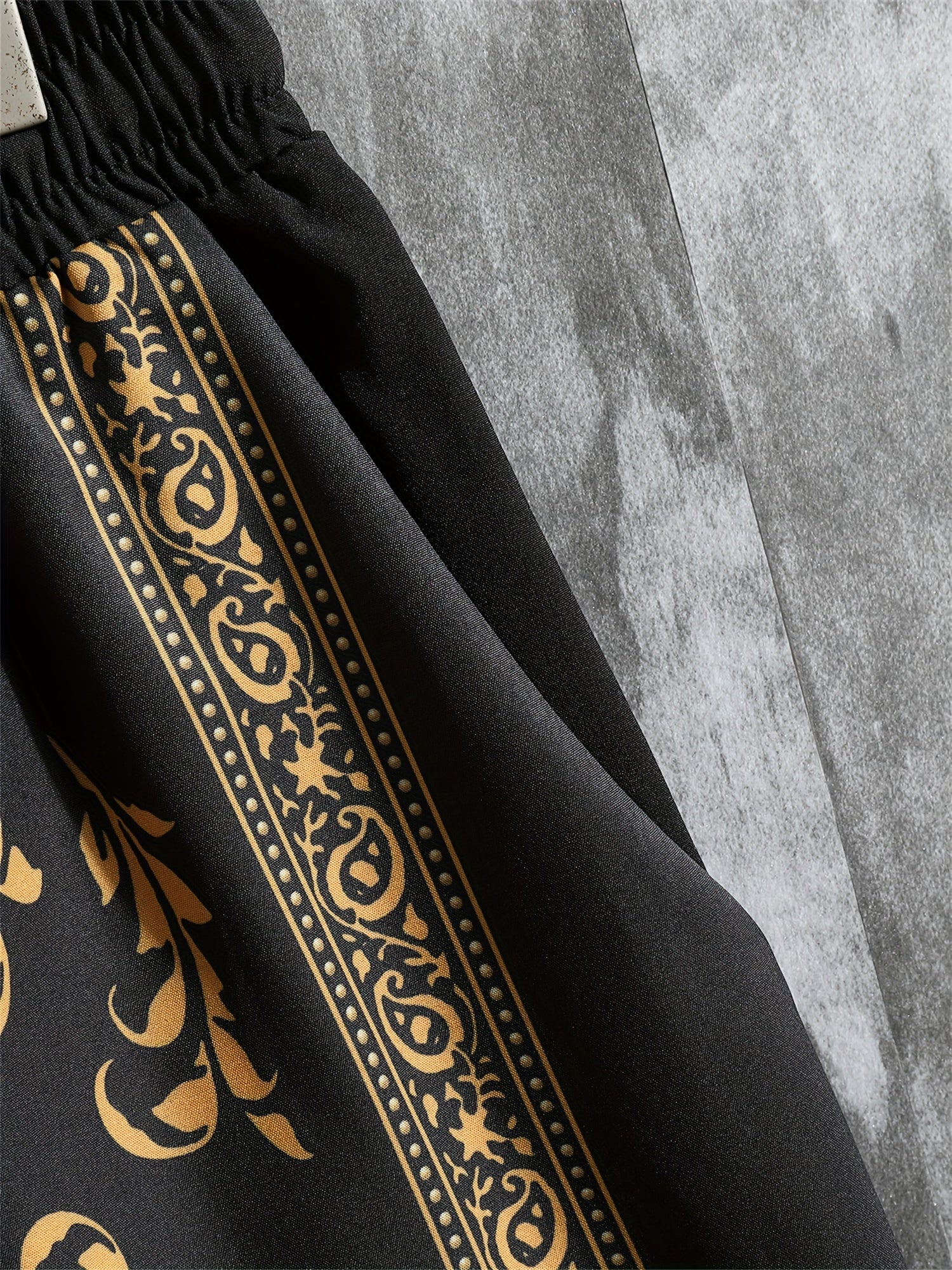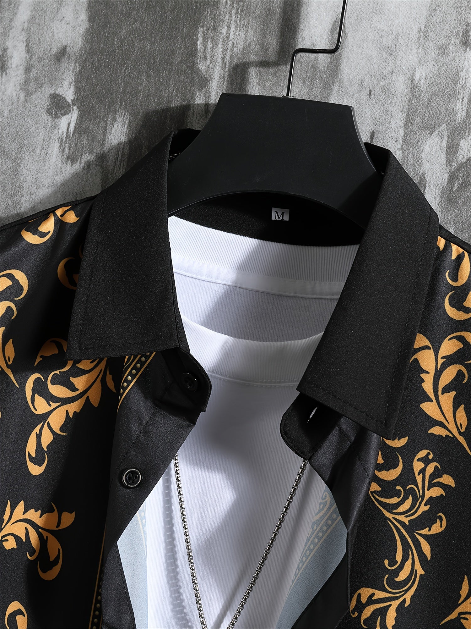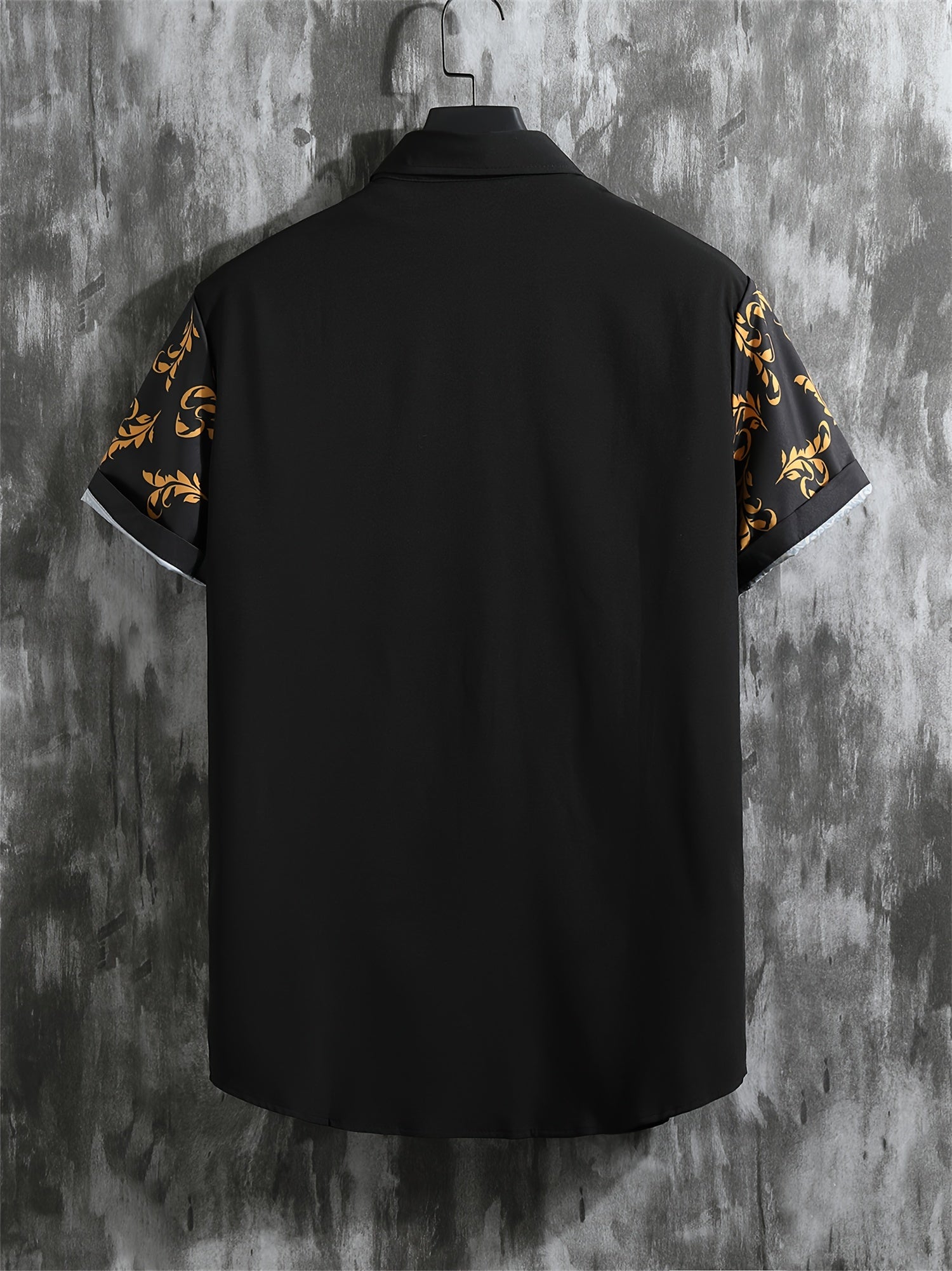 Men's Casual Summer Outfit Set, Short Sleeve Shirt And Pants, Floral Print, Polyester Blend, Machine Washable