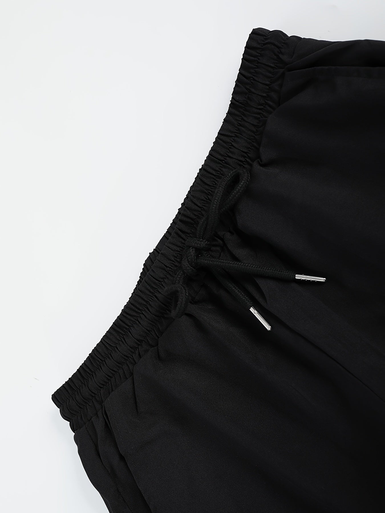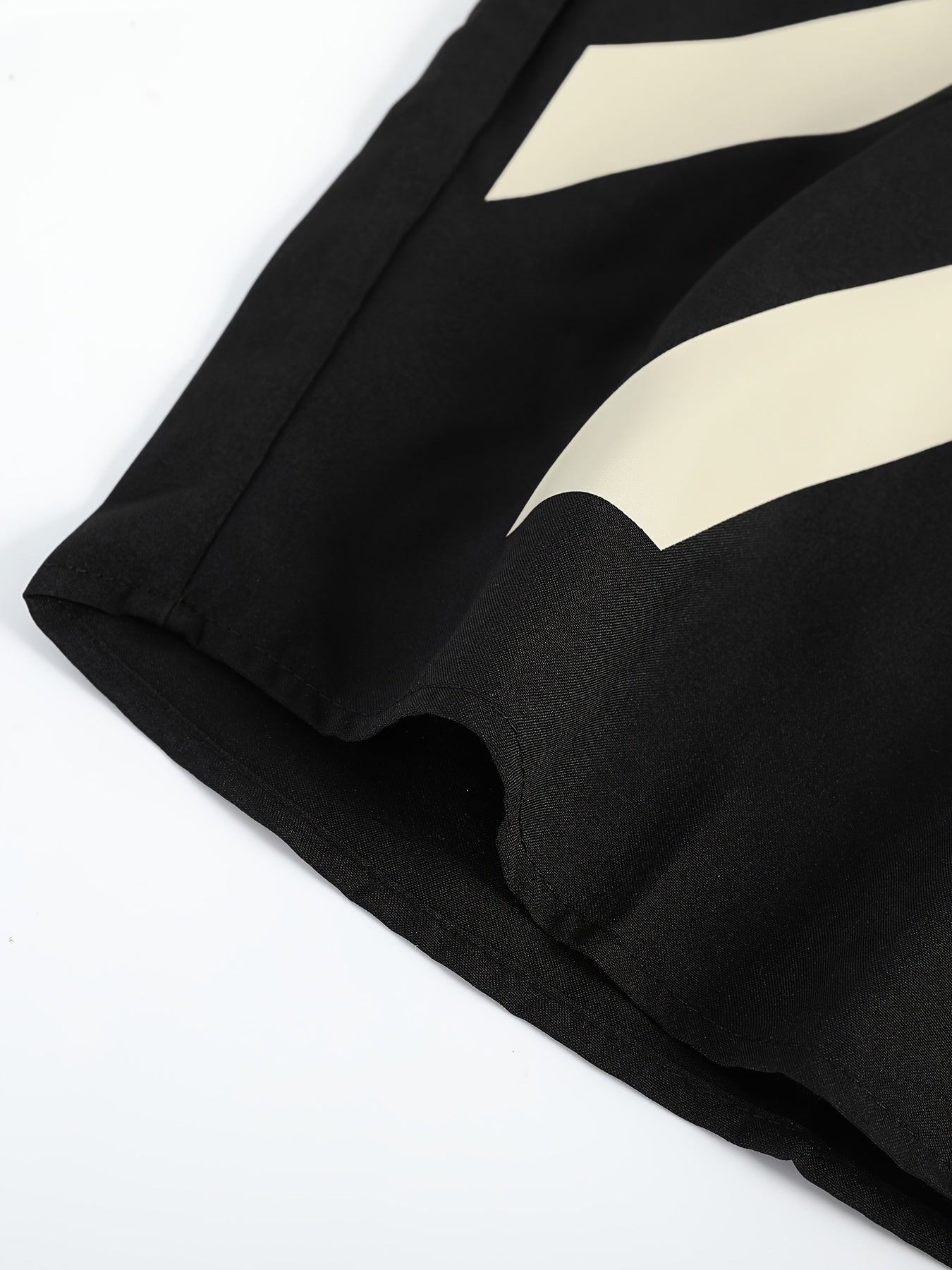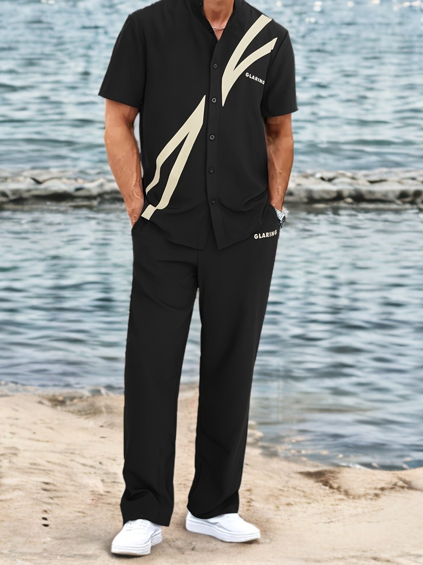 Men'S Casual Summer Short Sleeve Shirt & Pants Set - Black with White Geometric Print, Button-Up Collared Shirt & Loose Fit Pants, Non-Stretch Fabric, Perfect for Spring/Fall, Spring Summer Outfit | Geometric Print Shirt | Bu