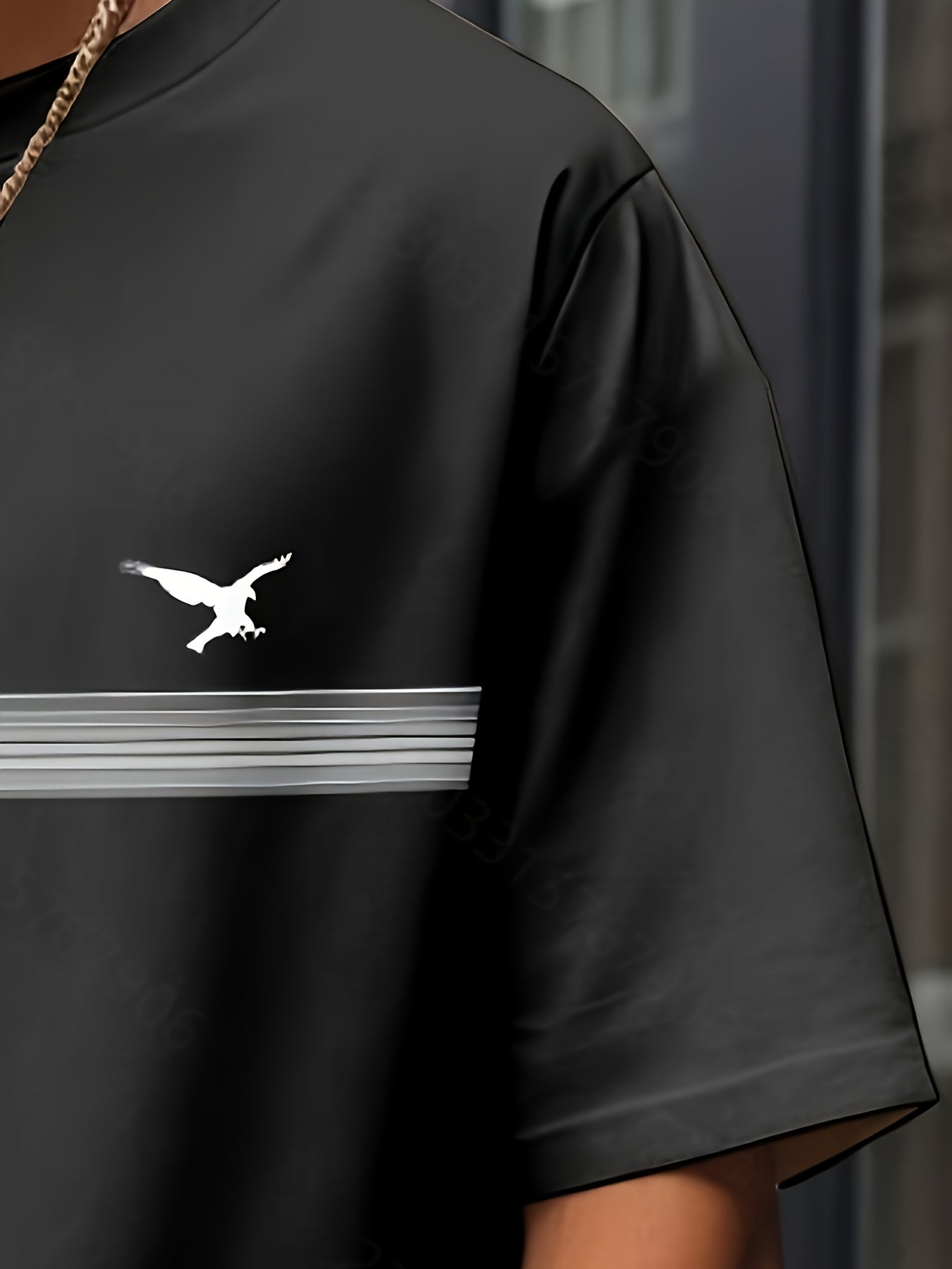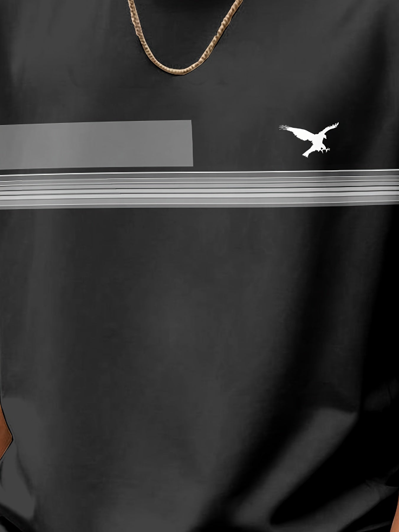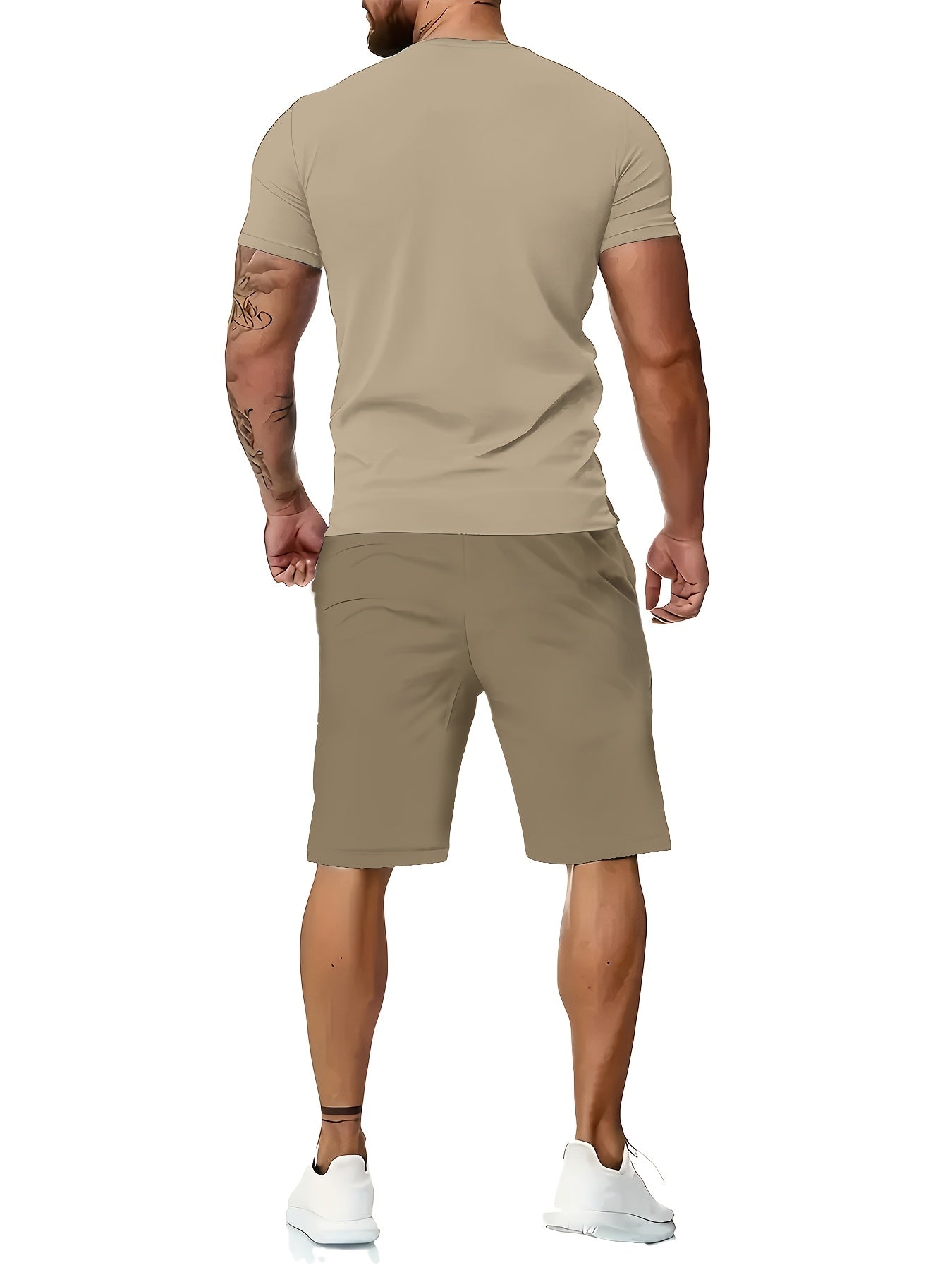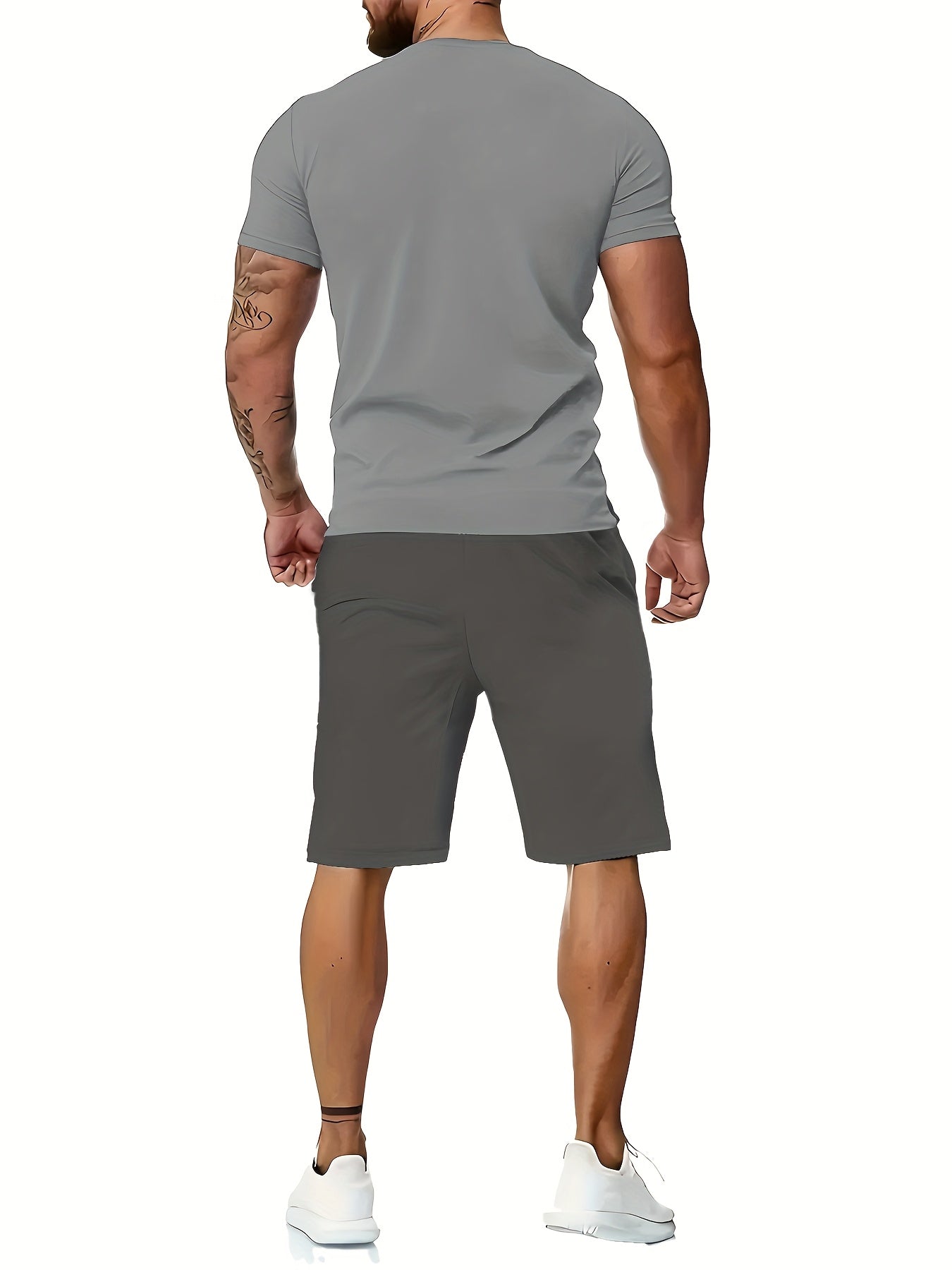 Men'S Casual Summer Two-Piece Athletic Wear Set - Light Blue T-Shirt with Green & White Stripes, Matching Shorts, Perfect for Daily Leisure, Vacation, and Sports, Casual Sportswear | Relaxed Fit Shorts | Stretchable Fabric