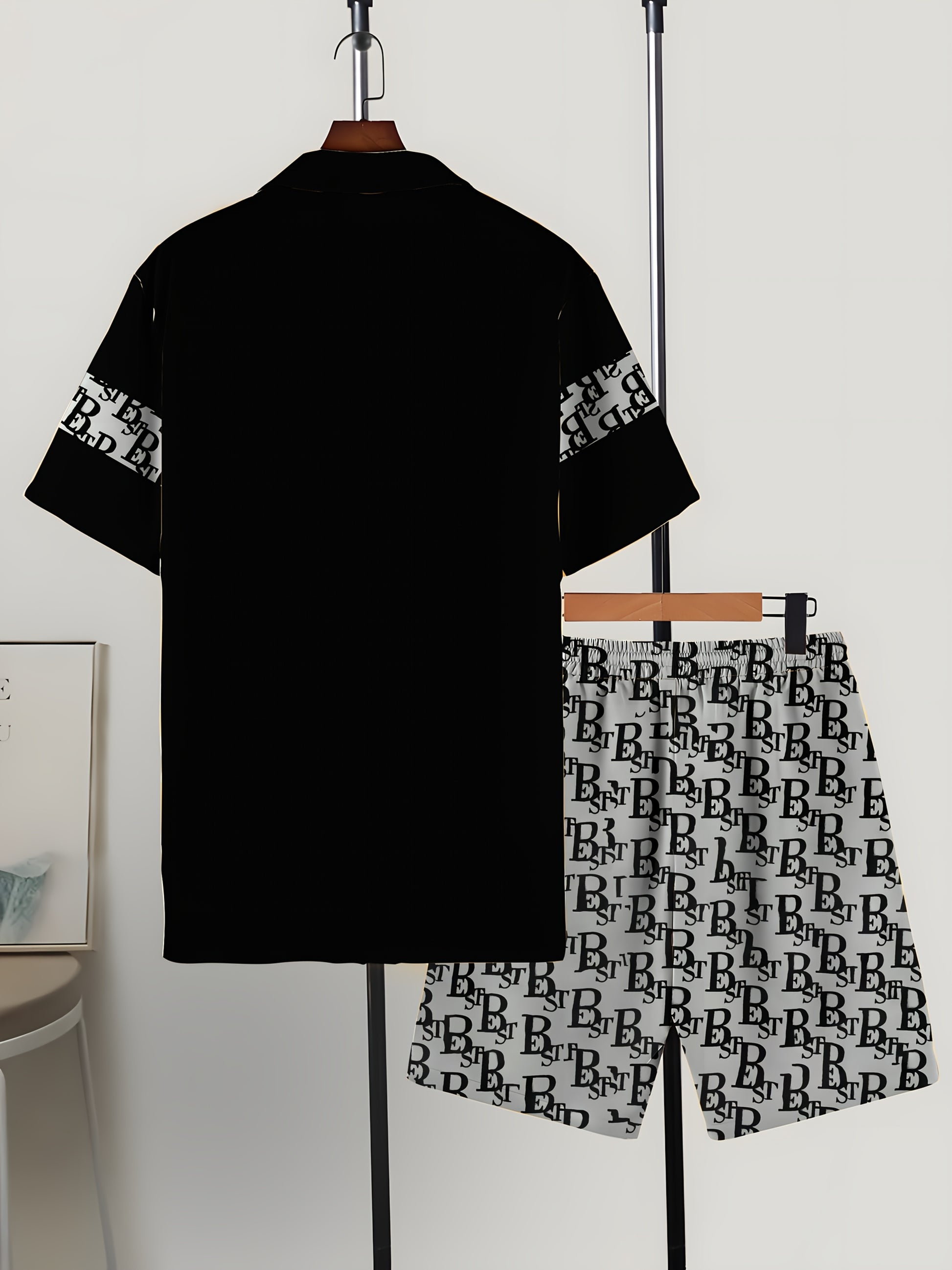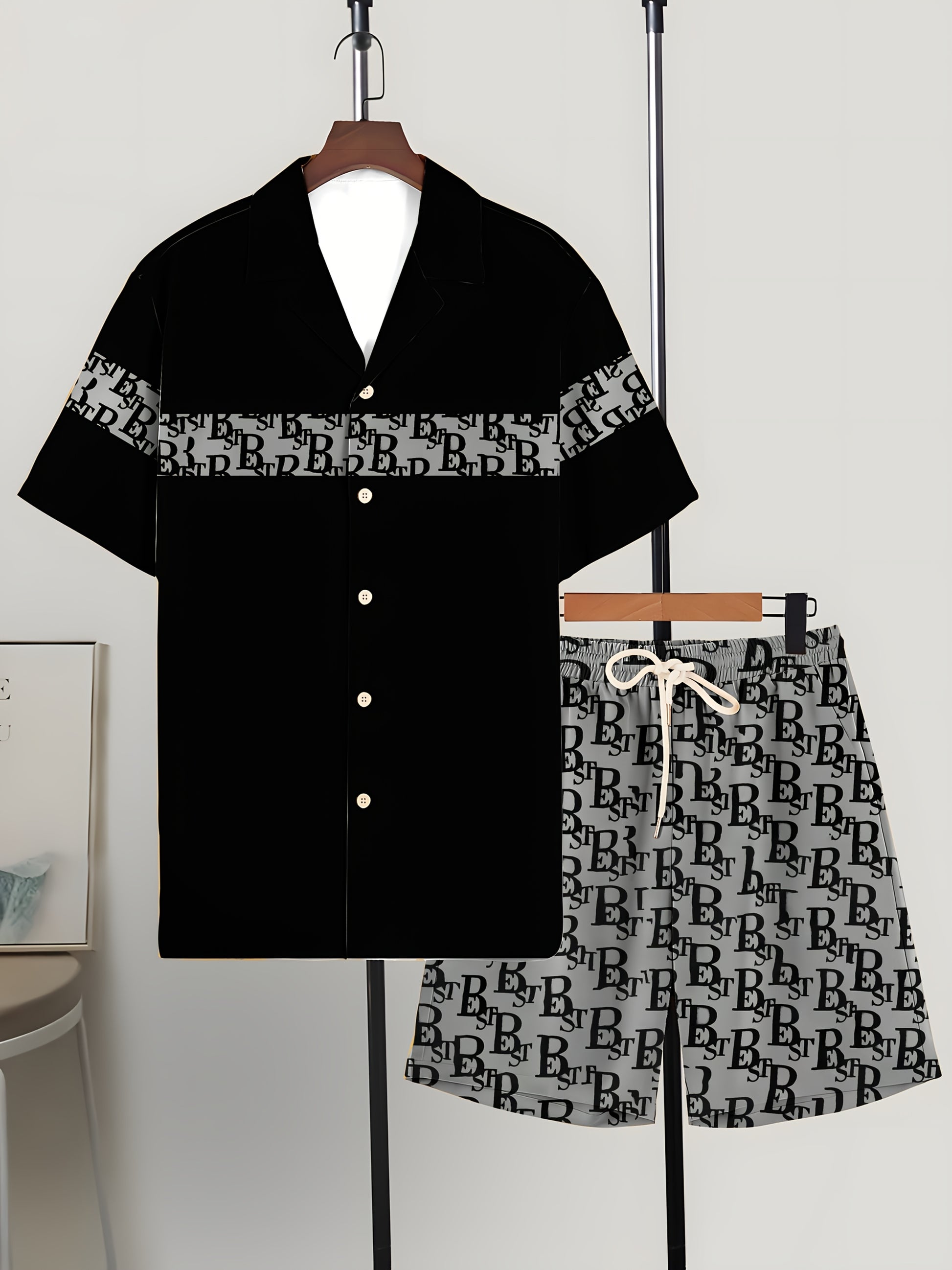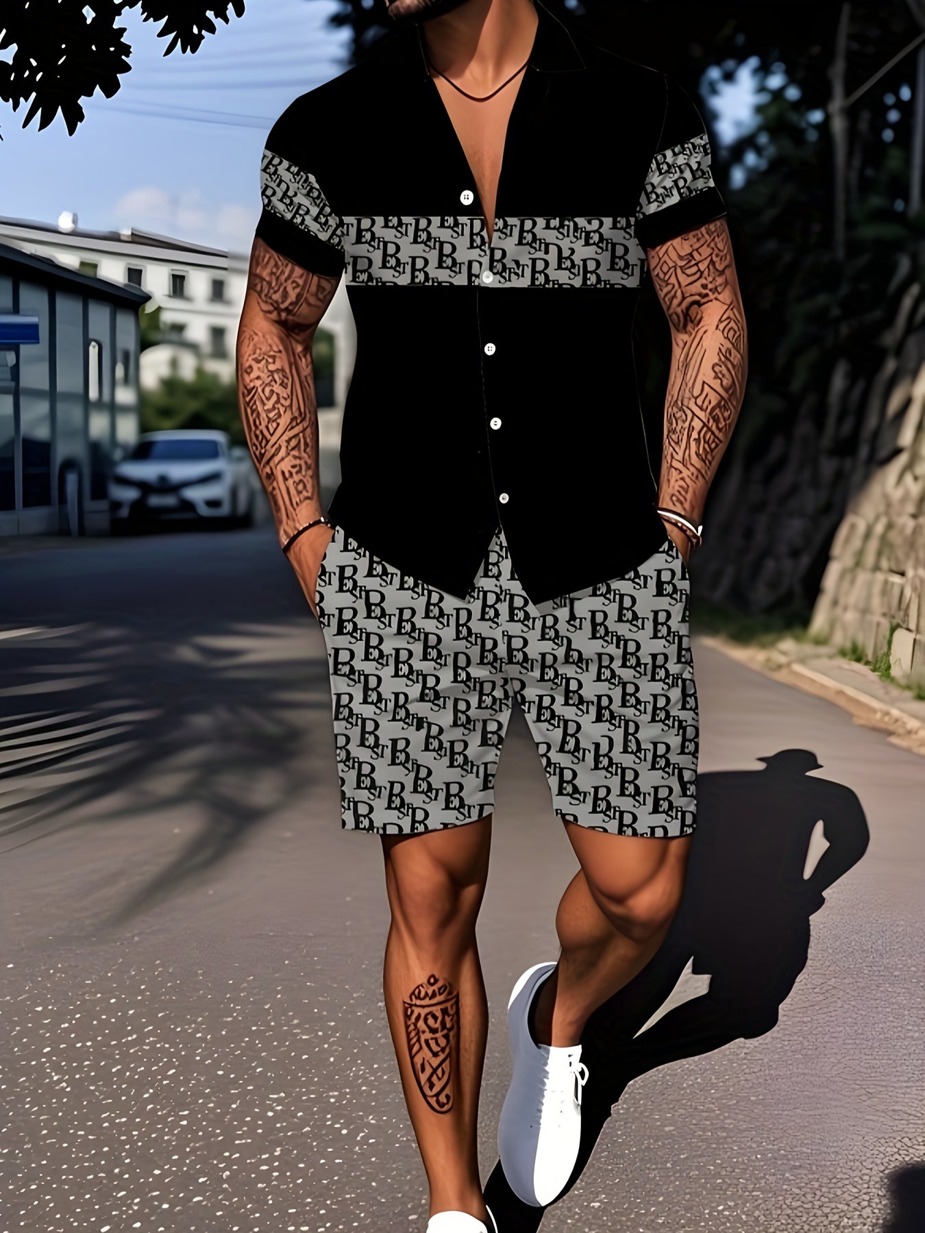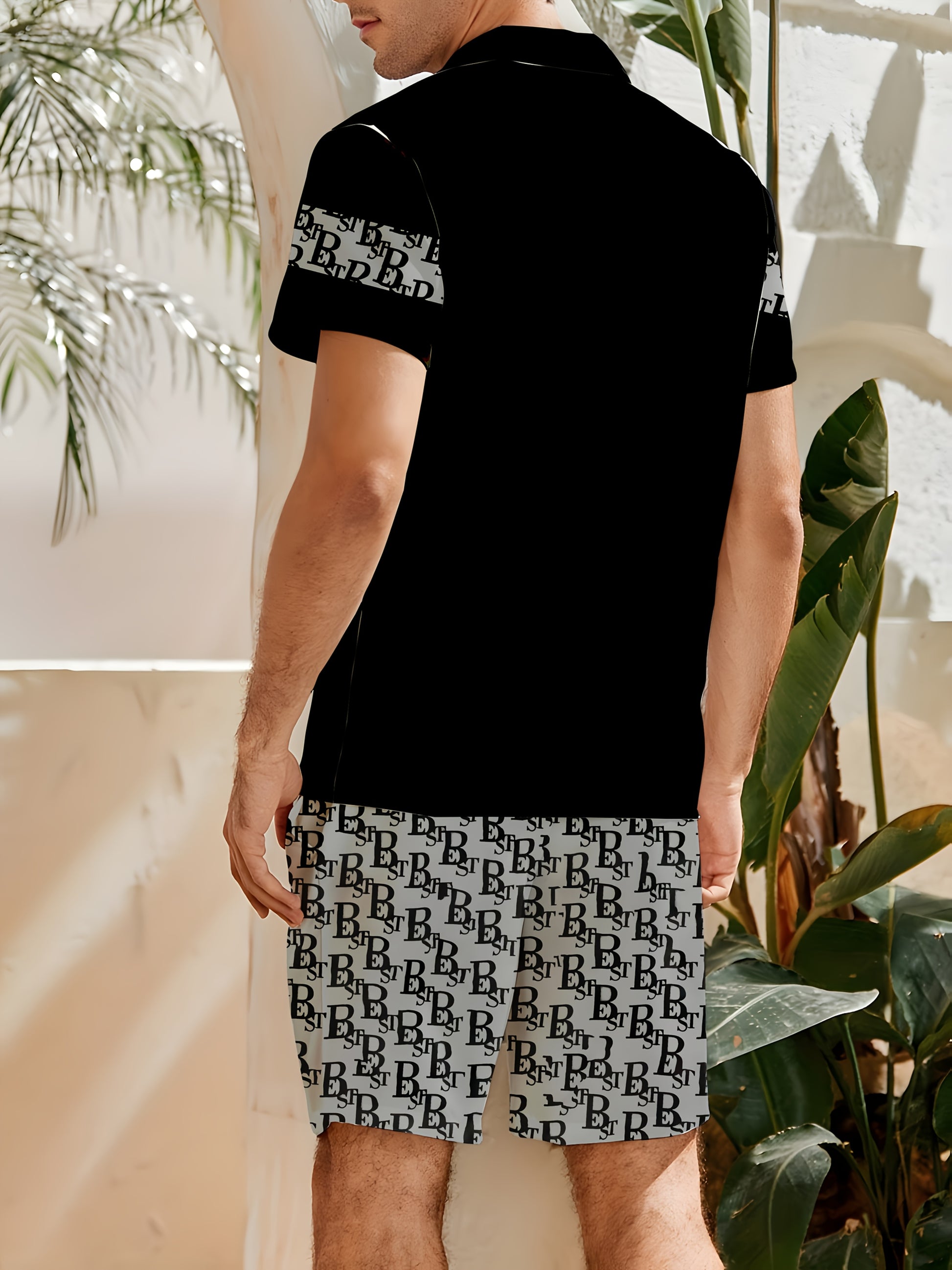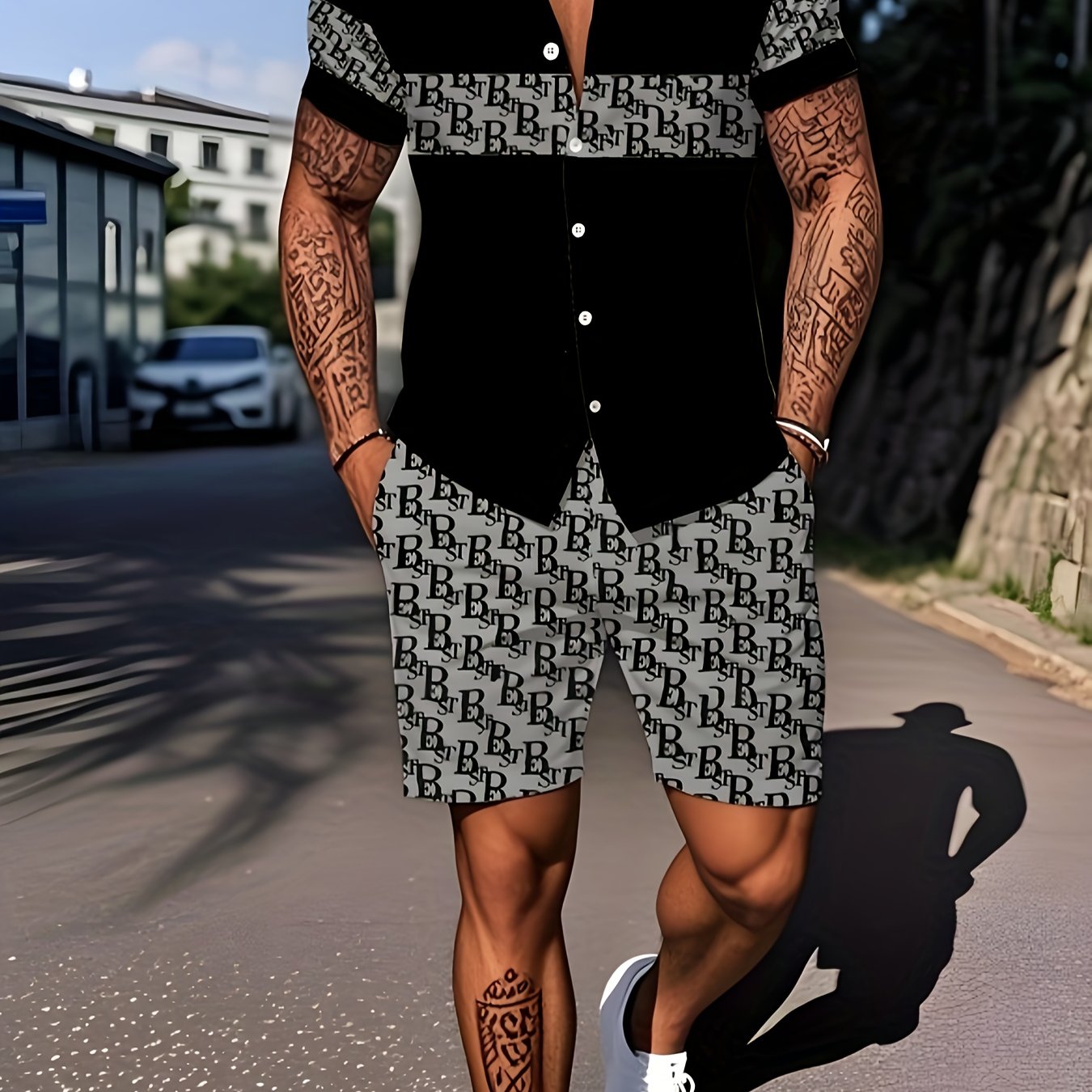Men'S Casual Tropical Letter Print Pajama Set - Short Sleeve Shirt with Button- Collar & Shorts with Pockets, Comfortable Non-Stretch Fabric, All-Season Home Wear, Relaxed Fit, Home Comfort Clothing | Relaxed Fit Shorts | But