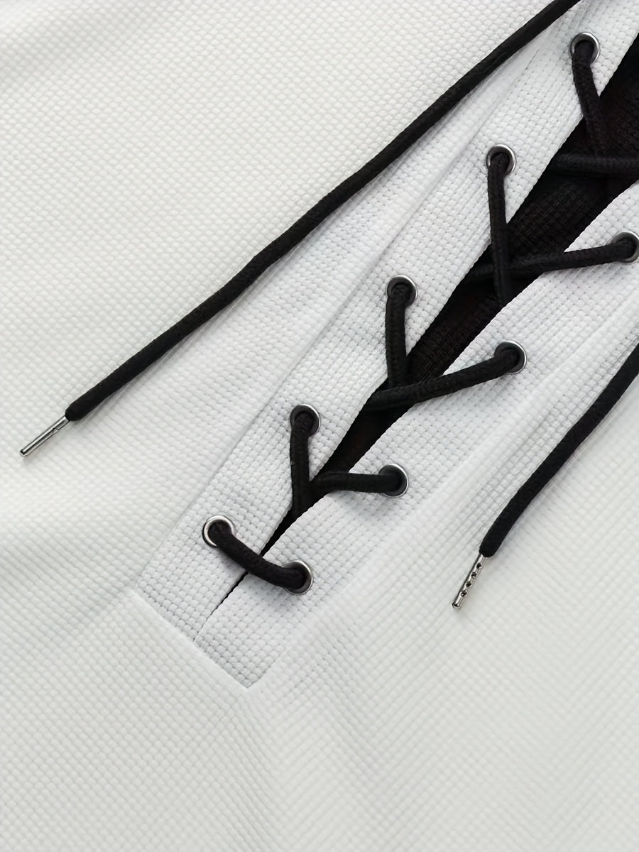 Men'S Casual Waffle Knit Short Sleeve T-Shirt with Drawstring Detail - Maroon Black, Round Neck, Breathable Polyester Fabric for Summer Outings, Casual Weekend Wear Round Neck Tee Stylish Contrast Stitchin