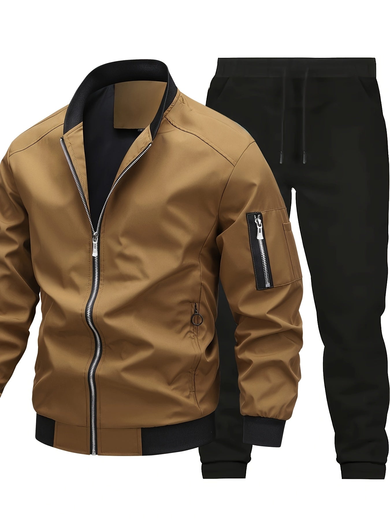 Men'S Casual Workwear Jacket and Pants Set, Solid Color, Long Sleeve, Regular Fit, with Pockets, for Spring/Fall, Casual Attire, Casual Attire|Casual Style|Solid Color Jacket