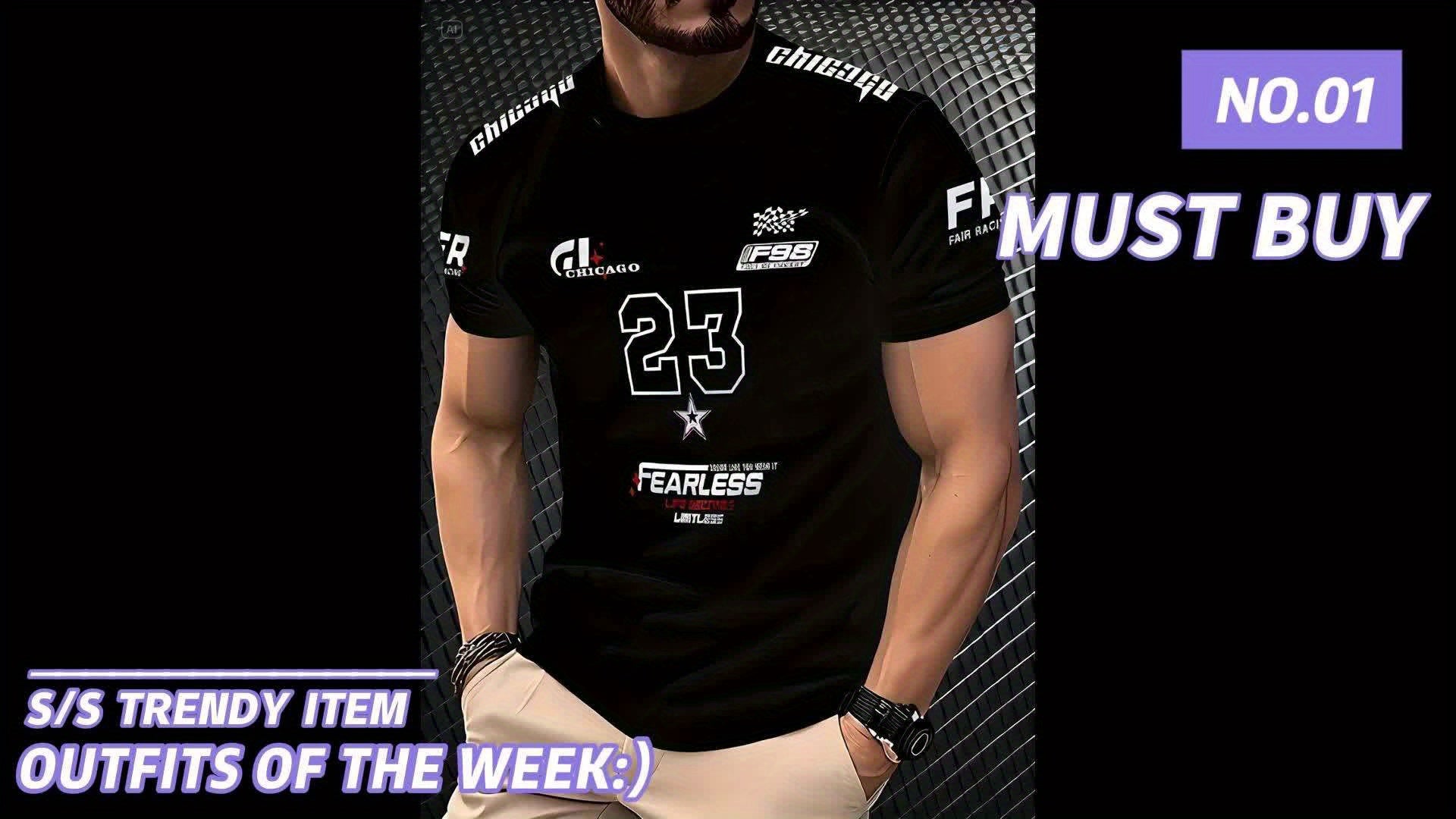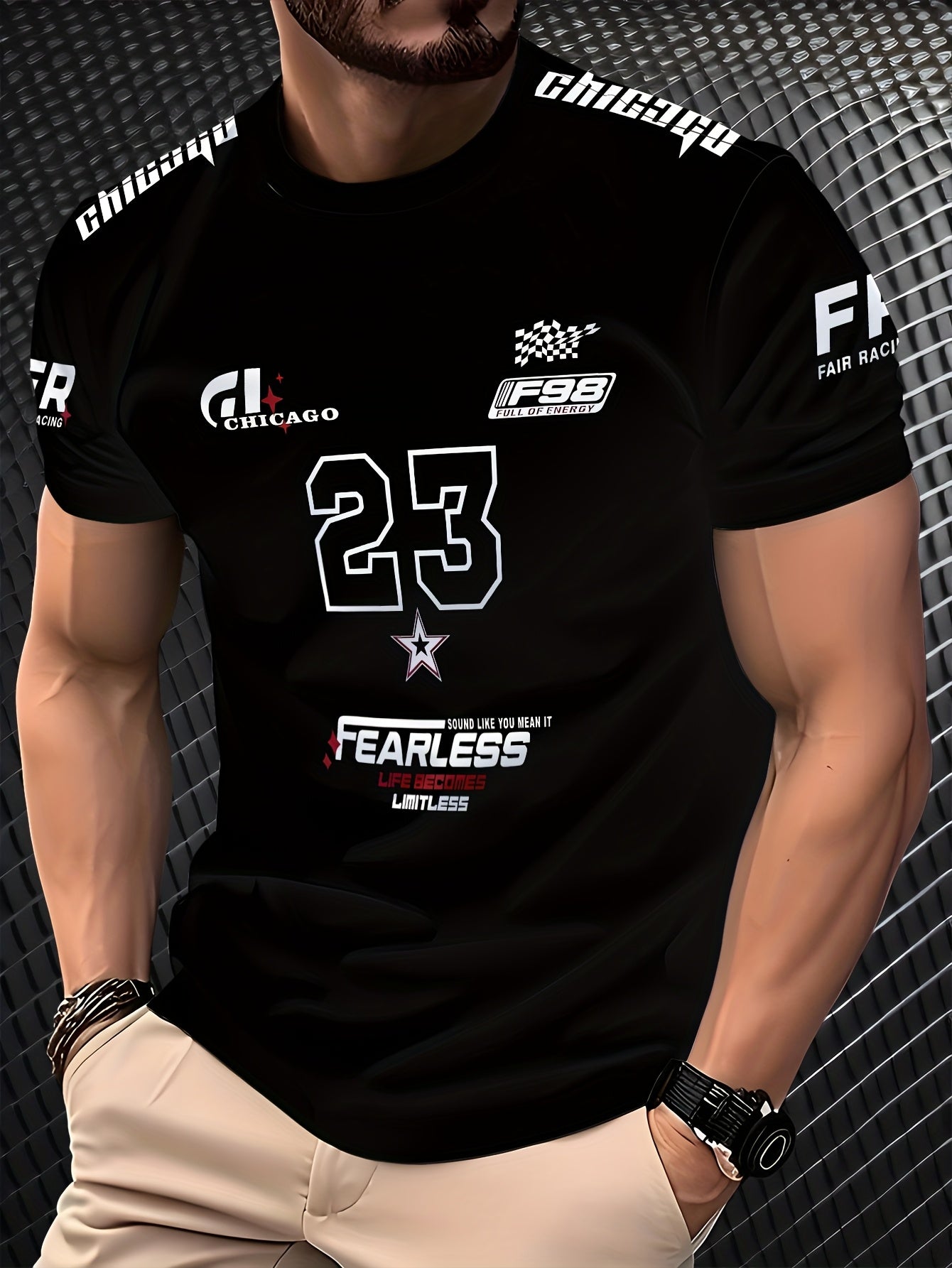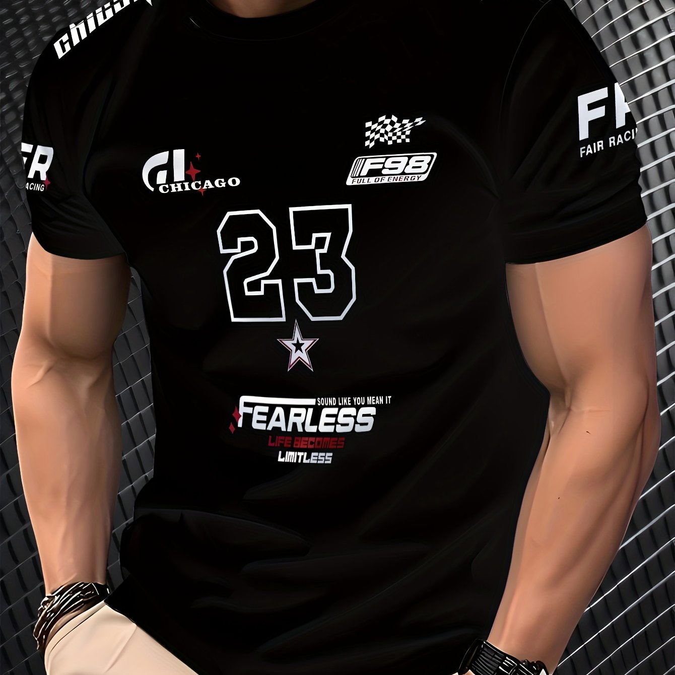 Men'S Chicago 23 Graphic Tee - Breathable Lightweight 3D Print T-Shirt, Breathable Polyester, Casual Round Neck Top, Non-See-Through, Fashionable All-Match Design, Comfortable for All Seasons, Casual Wear Sporty Chicago 2