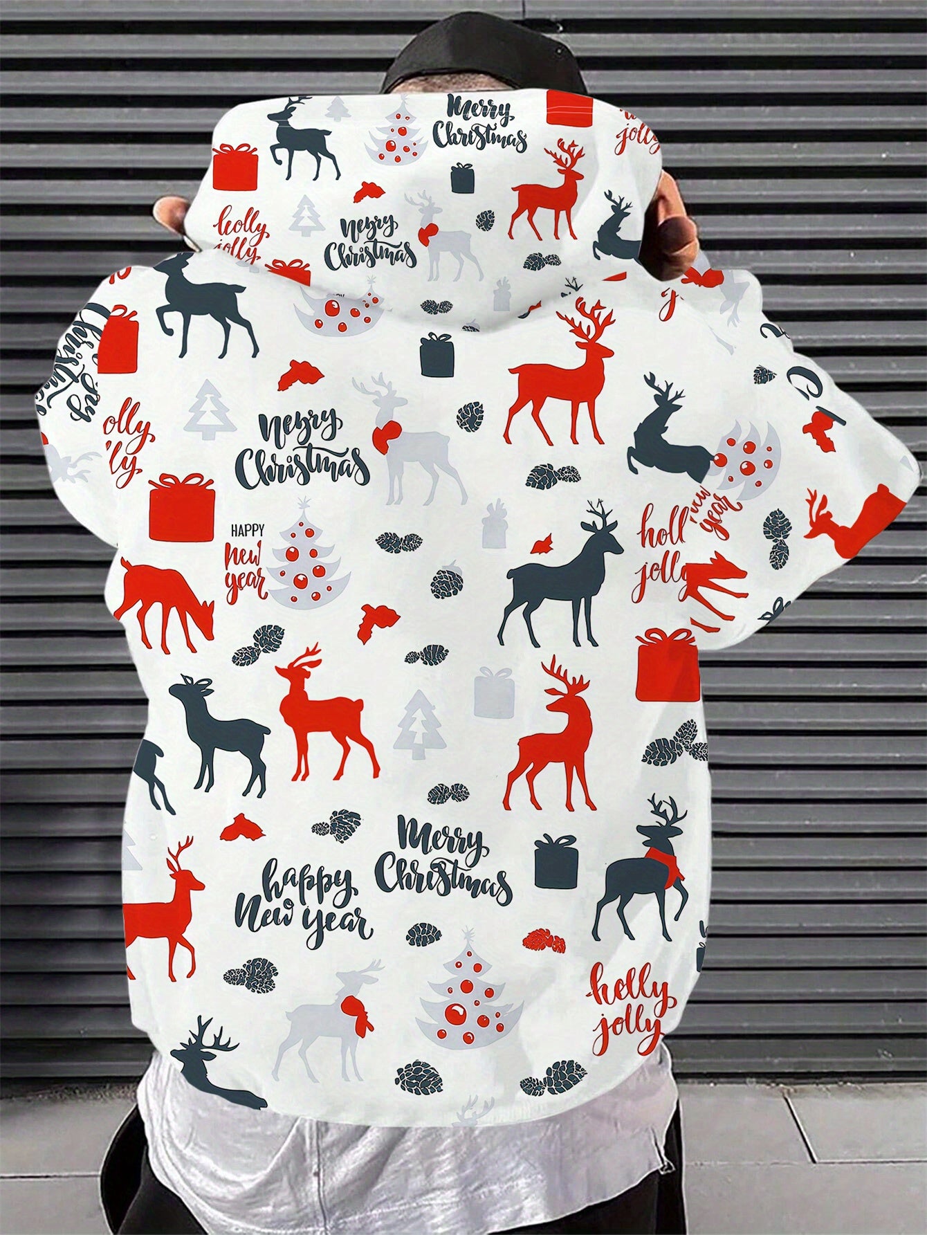 Men'S Christmas Hoodie - Red & Black Holiday Sweatshirt with Merry Christmas Text, Hooded Pullover for Christmas Party Outfit, Casual Winter Clothing - Festive Casual Attire, Christmas Clothes, Seasonal Fashion, Geometric Pri