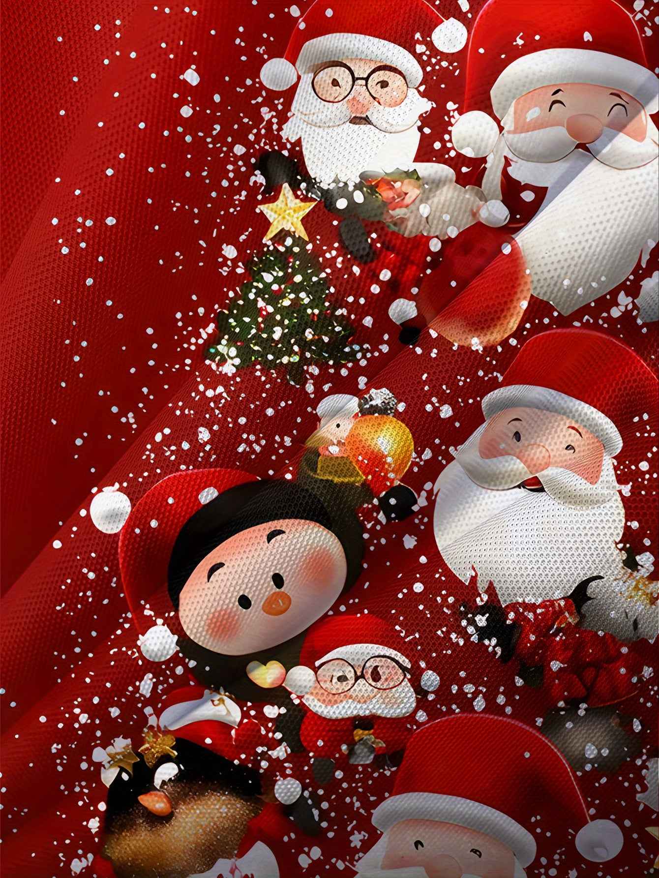 Men's Christmas Santa Claus Tree Shirt - Long Sleeve Button-Up Holiday Party Outfit with Santa Faces - Machine Washable Red Christmas Attire for Office, Home, and Gifts - Festive Casual Tops for Adults, Christmas Garland, Sea