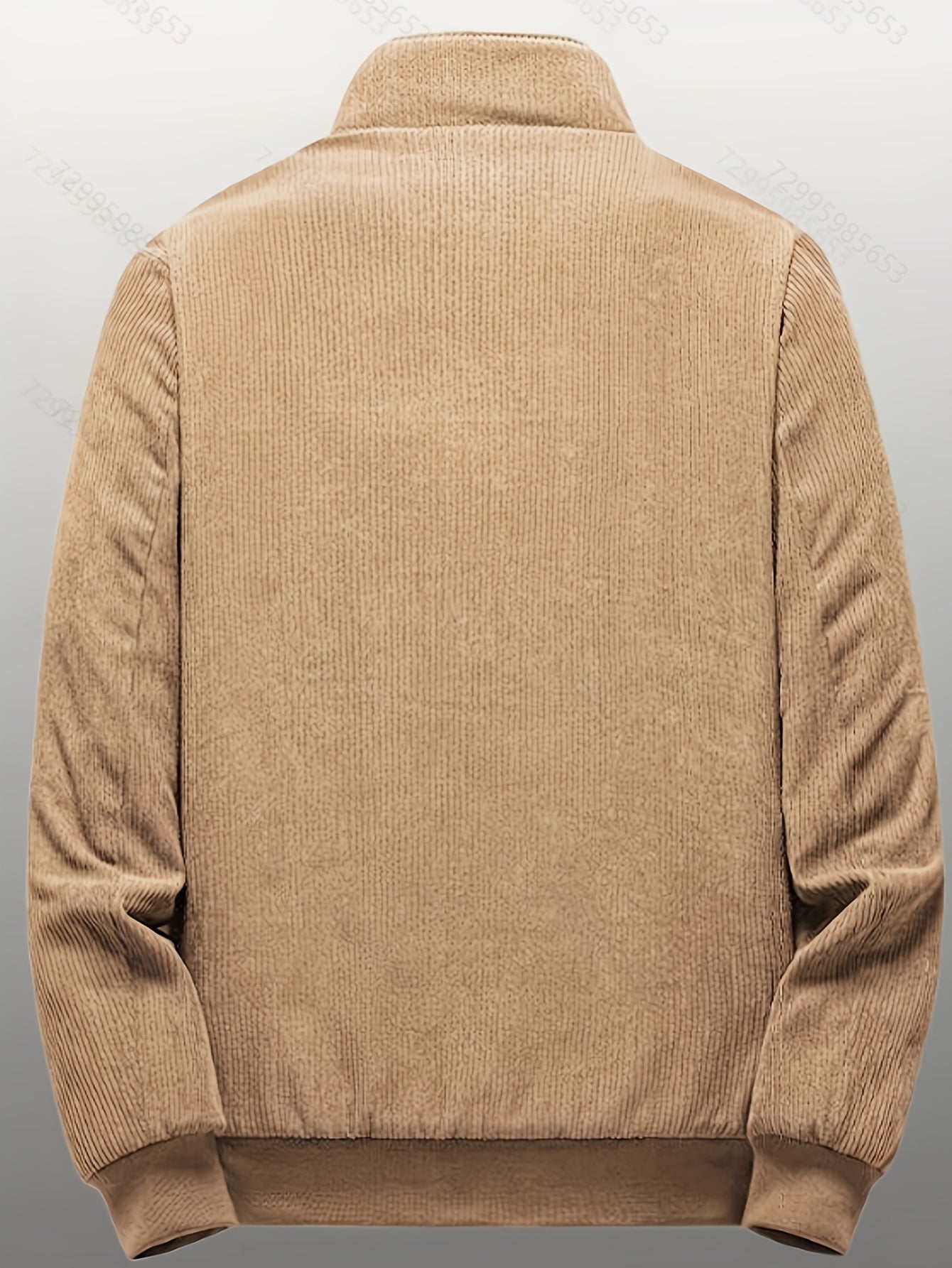Men's Corduroy Jacket Olive Green - Retro Loose-Fit Full-Zip Winter Coat with Stand Collar & Zippered Pockets, Machine Washable Corduroy Outer (No) for Casual & Formal Wear - Autumn/Winter Outerwear, Womens Coats And Jackets,