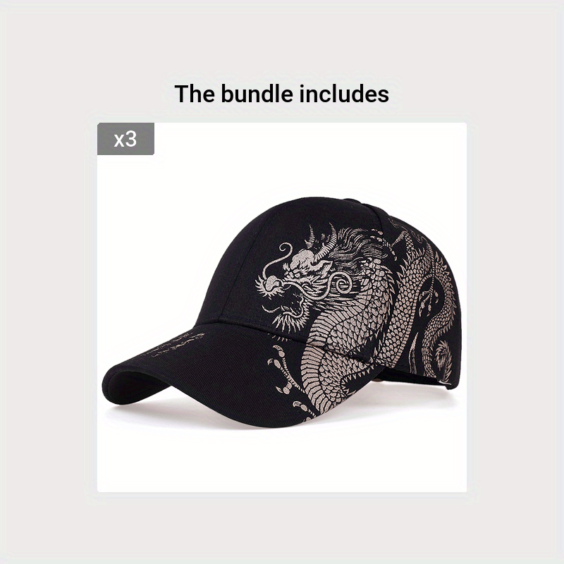 Men's Dragon Design Baseball Cap, 3 Colors Available