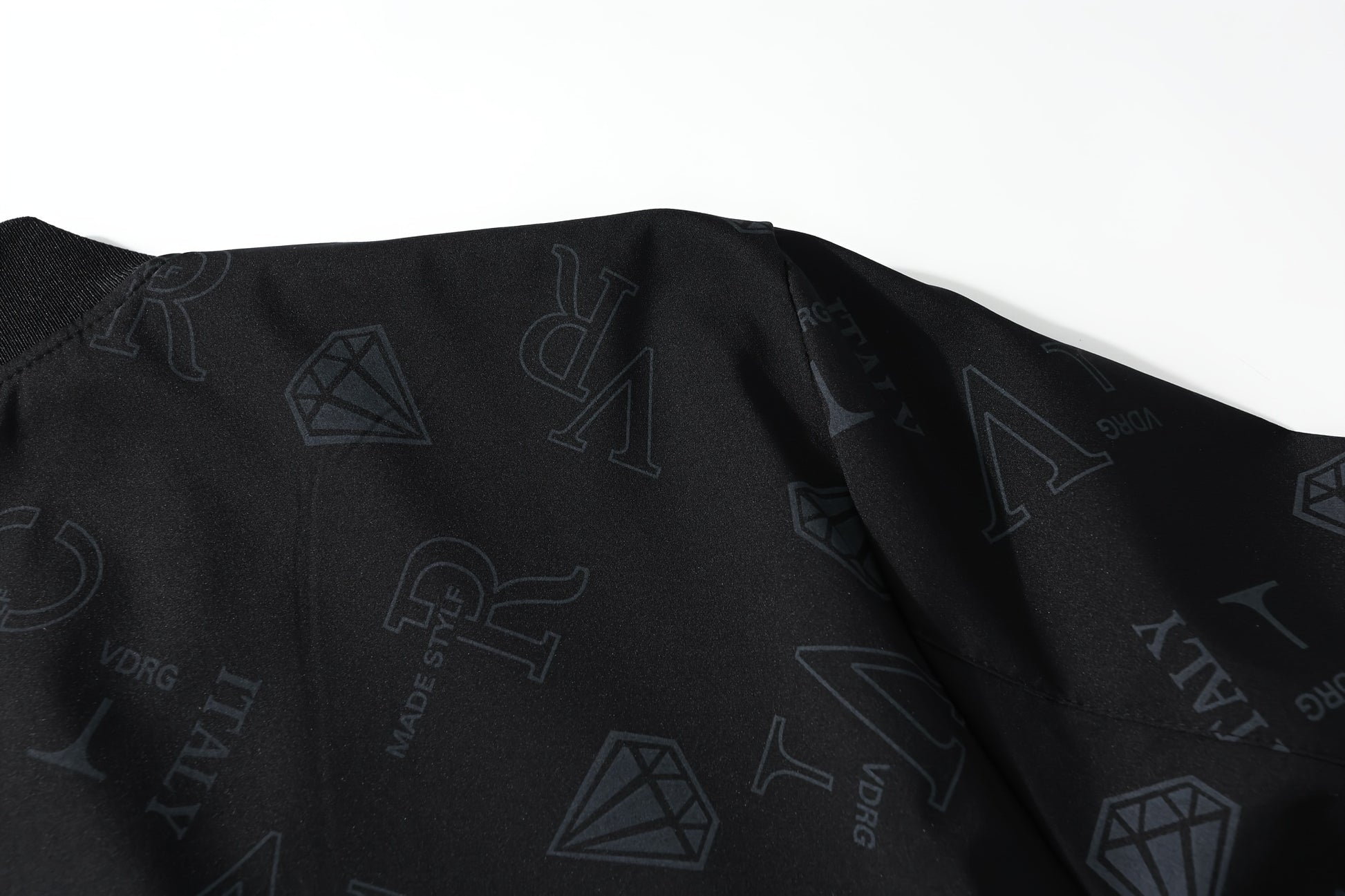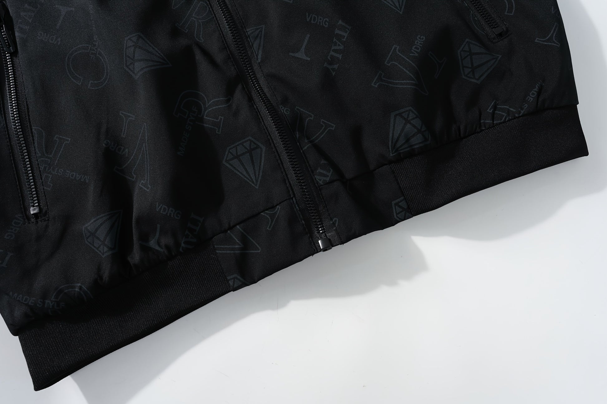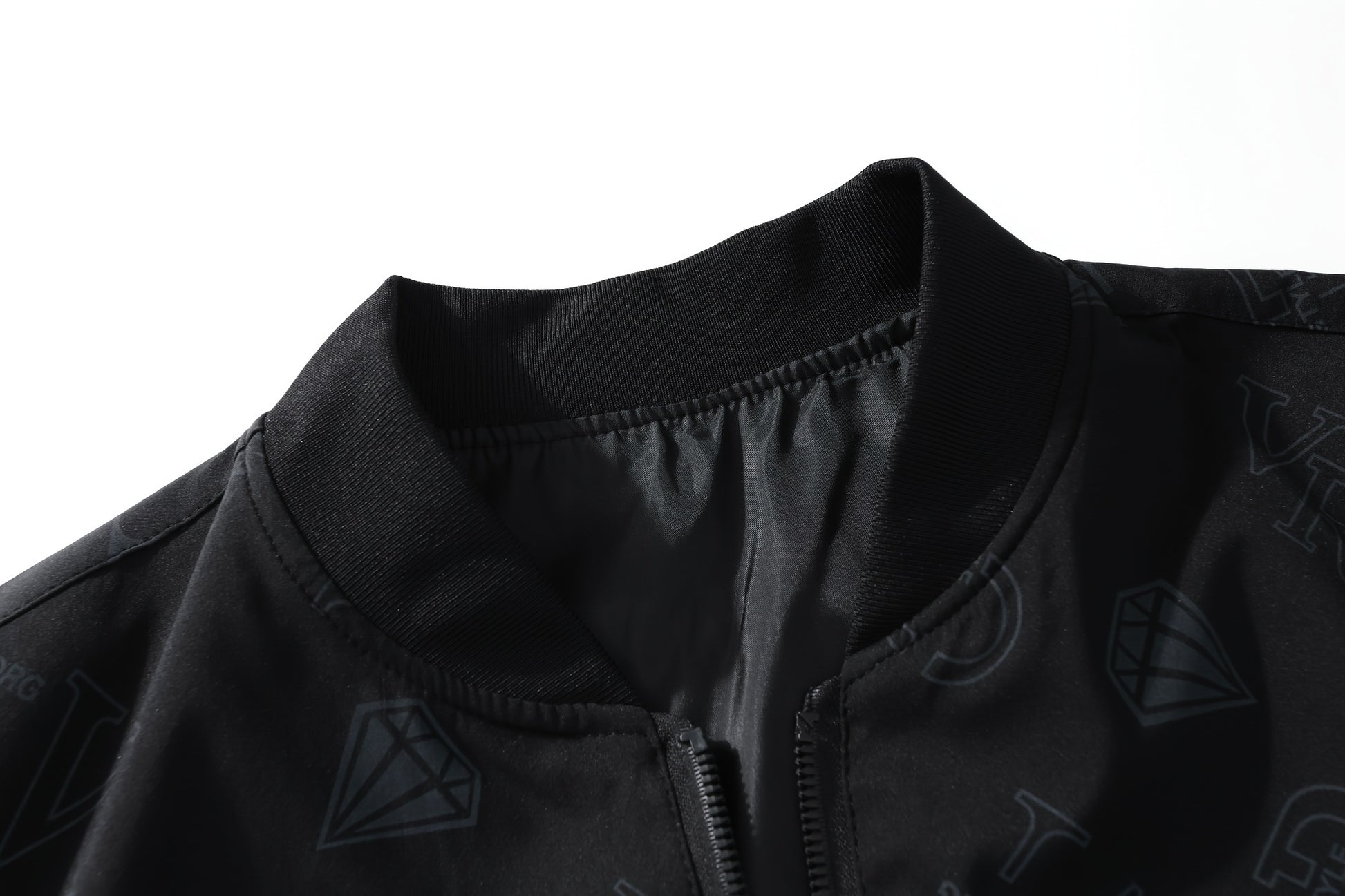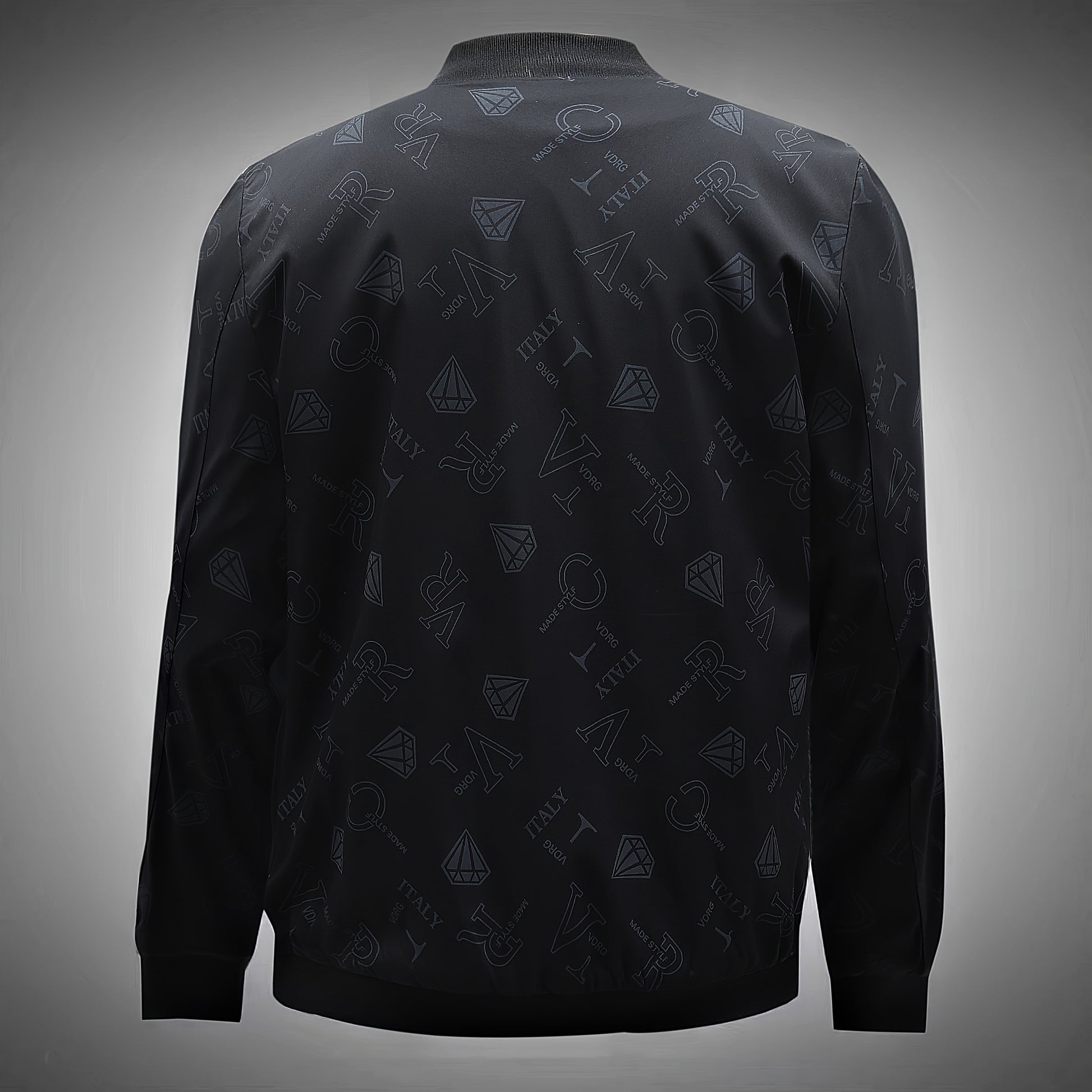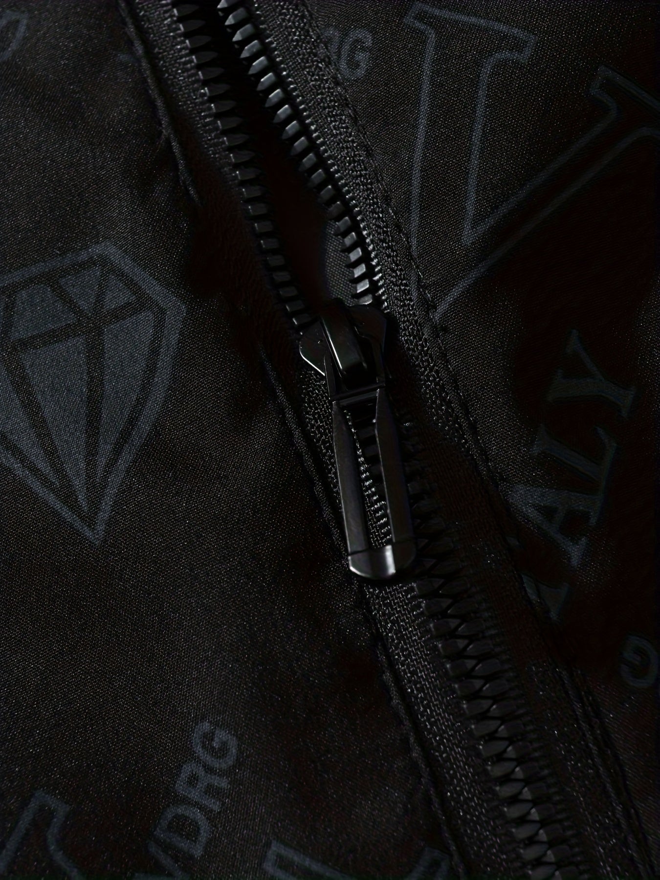 Men's Fashion Bomber Jacket Spring/Fall Collection, Casual Alphabet Print Polyester Jacket with Zipper, Baseball Collar, Long Sleeve, Regular Fit, Non-Stretch Woven Fabric, Casual Outfit with Pocket