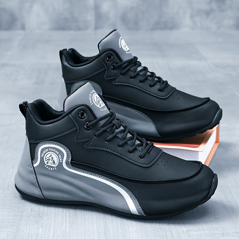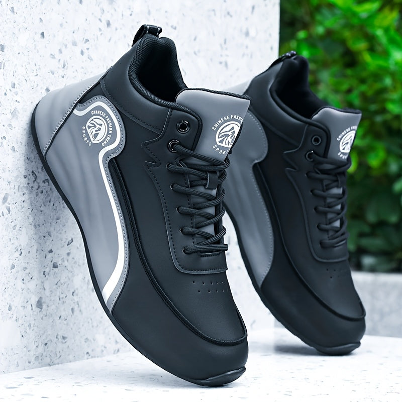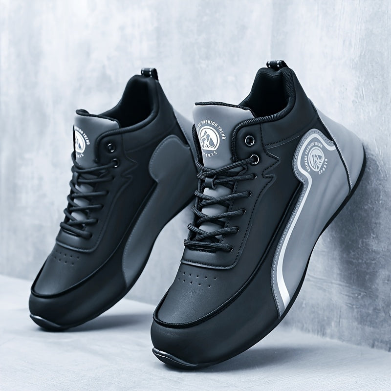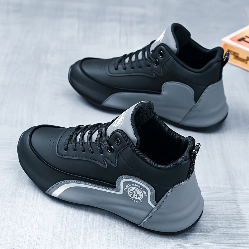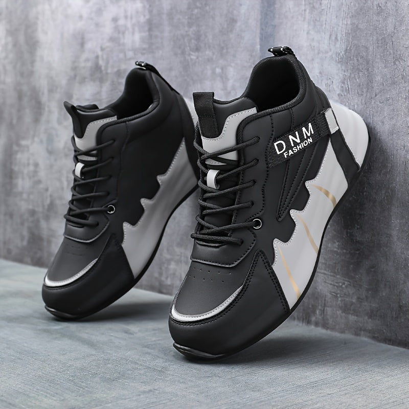 Men'S Fashion Classic Sneakers, Low Top Lace-up Athletic Shoes, Shock Absorbing Breathable Running Shoes, Durable Thick Sole Skateboard Shoes, Solid Color Graphic Design, Round Toe, Faux Upper/Sole, Fabric Inner, EVA Insole f