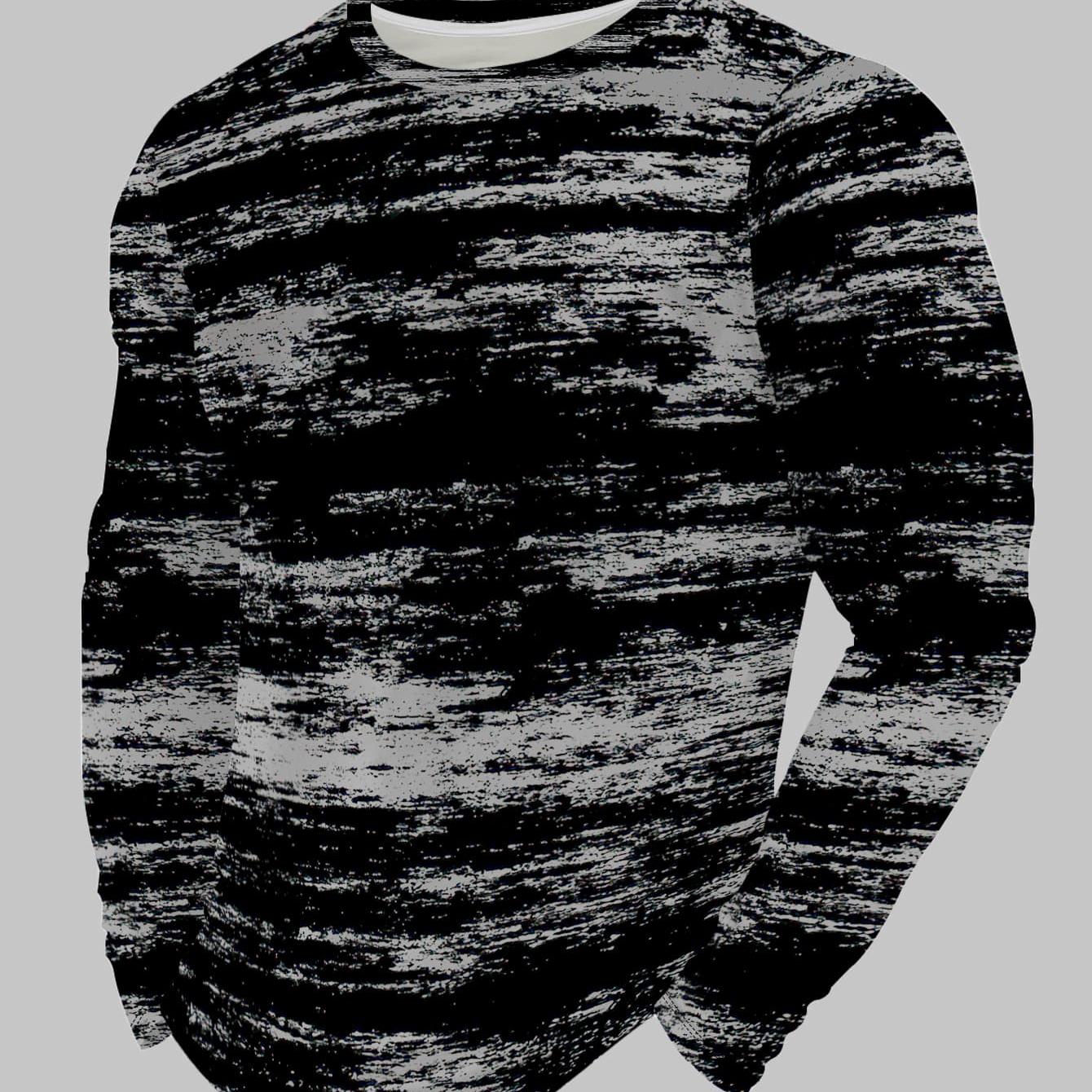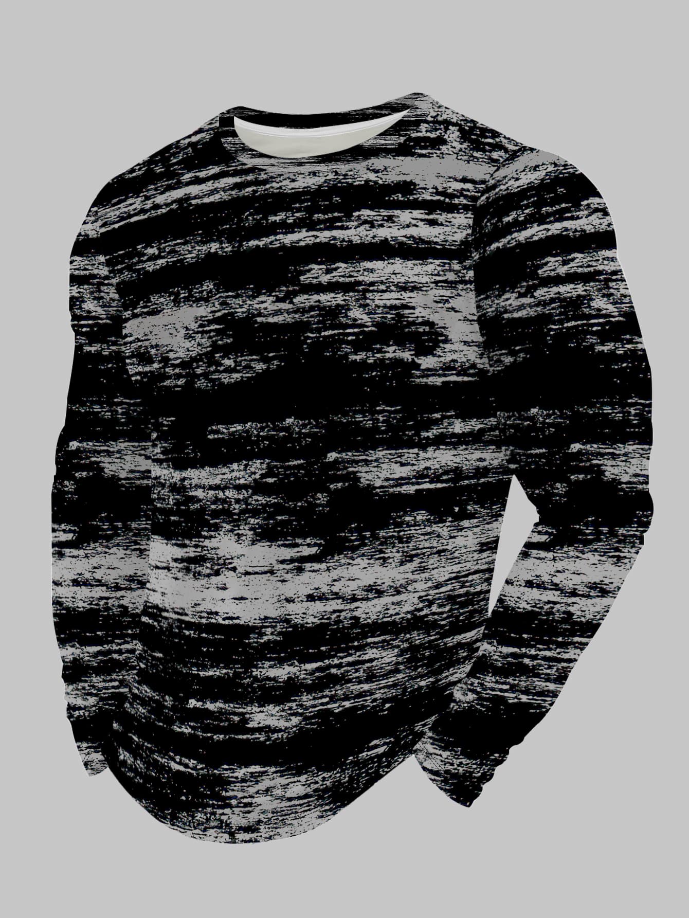 Men's Fashion Crew Neck Long Sleeve Top Personality Abstract Texture Print Casual Versatile Pullover Trendy Street Style Youth Base Layer Shirt