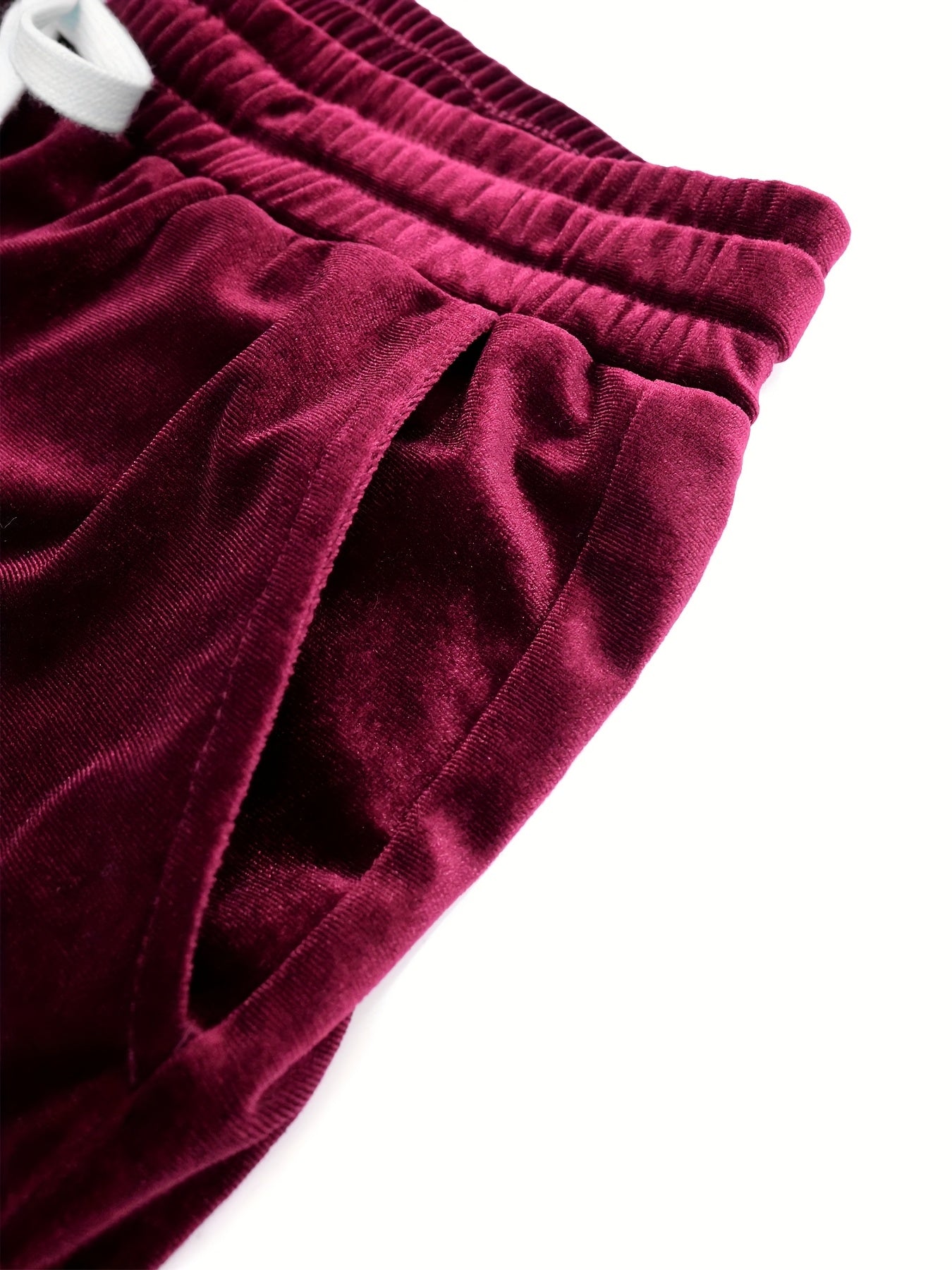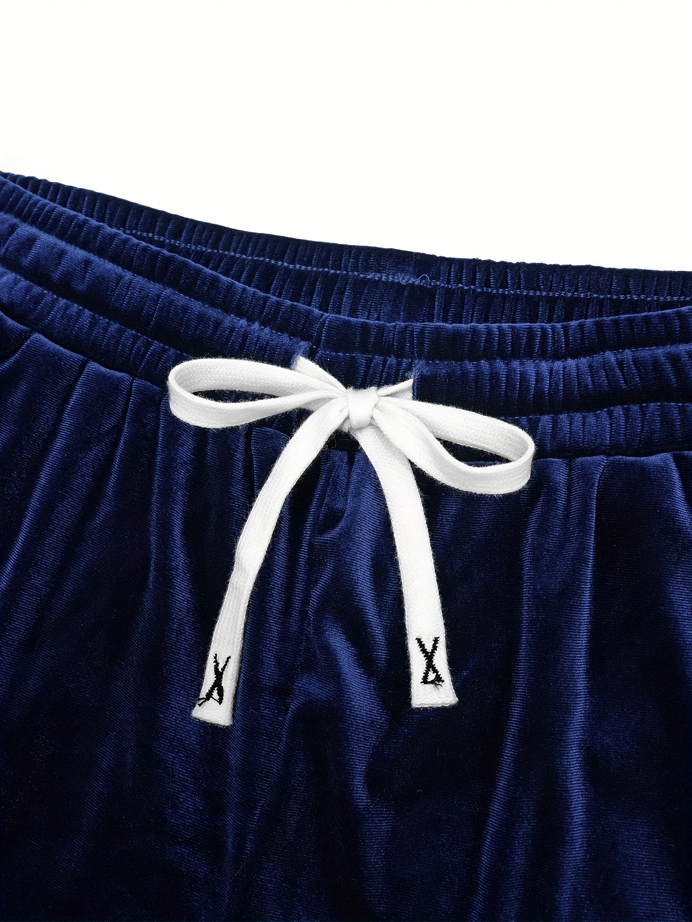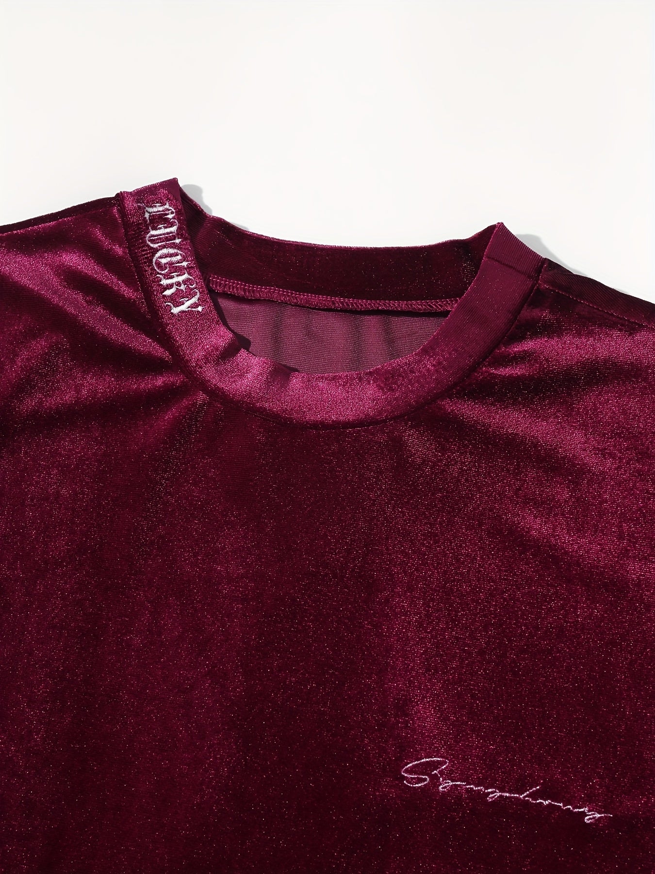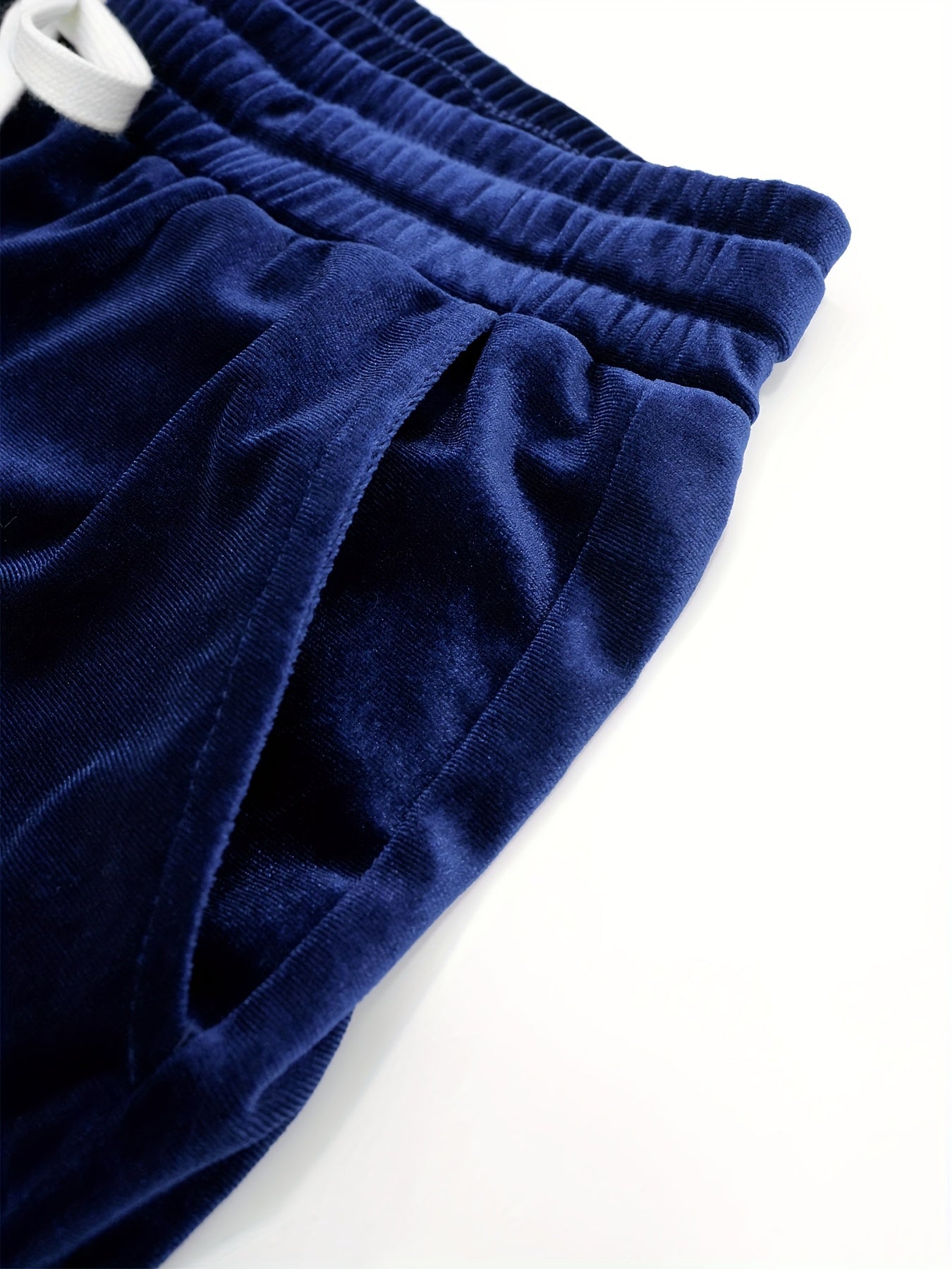 Men'S Fashion Velvet Knit Pullover Set, Contrast Letter Embroidery Top and Solid Color Drawstring Shorts, Simple Casual Outing Commuting Vacation Light Luxury Set, Regular Fit Elastic Knit Two-Piece Set, High-end Sheen Light