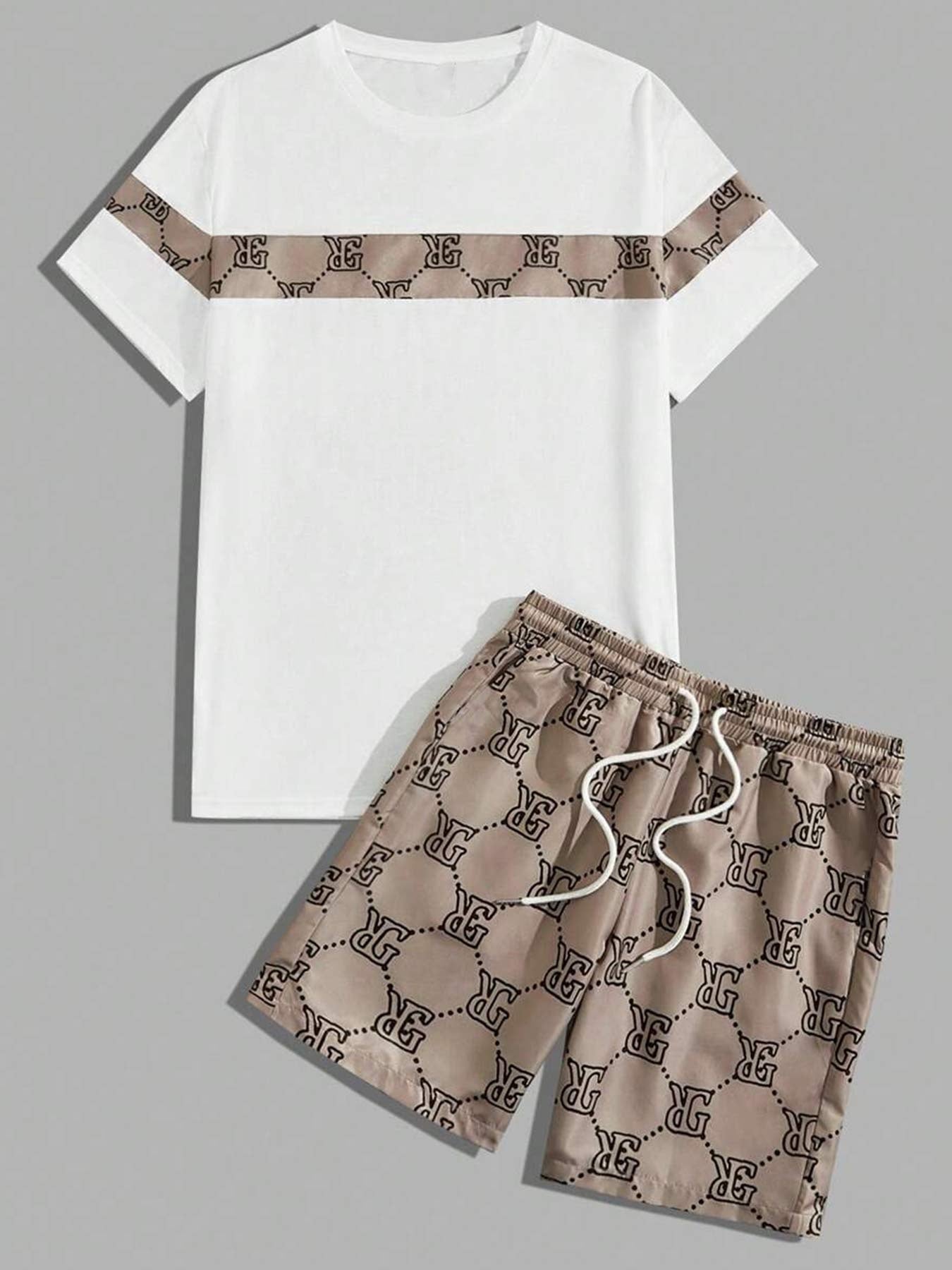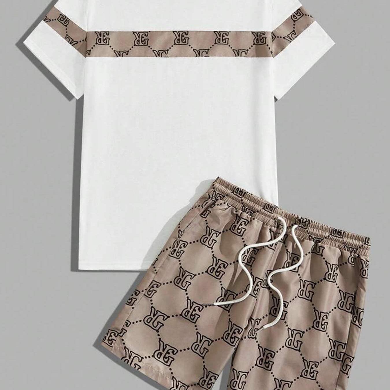 Men's fashionable casual T-shirt set- Checkered print design, round neck, short sleeve and shorts combination, fashionable and casual, two-piece set for summer daily wear