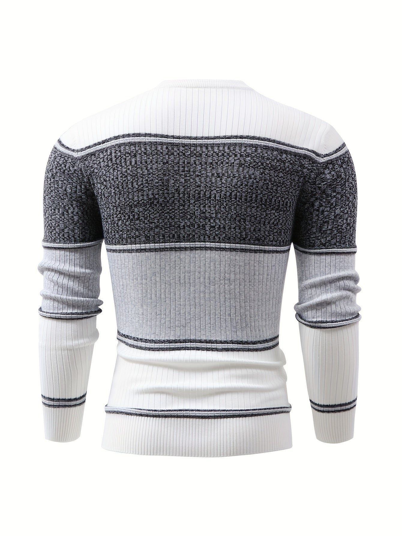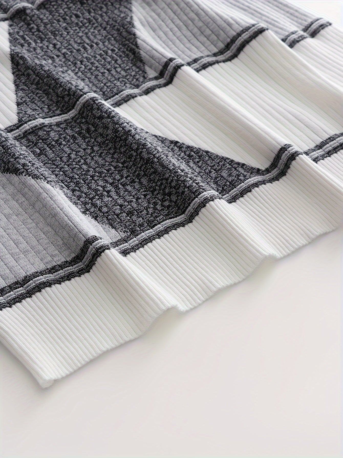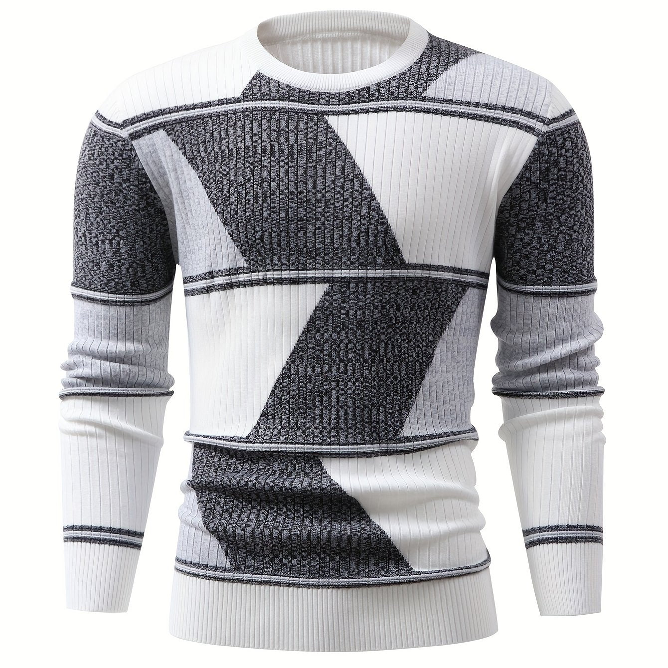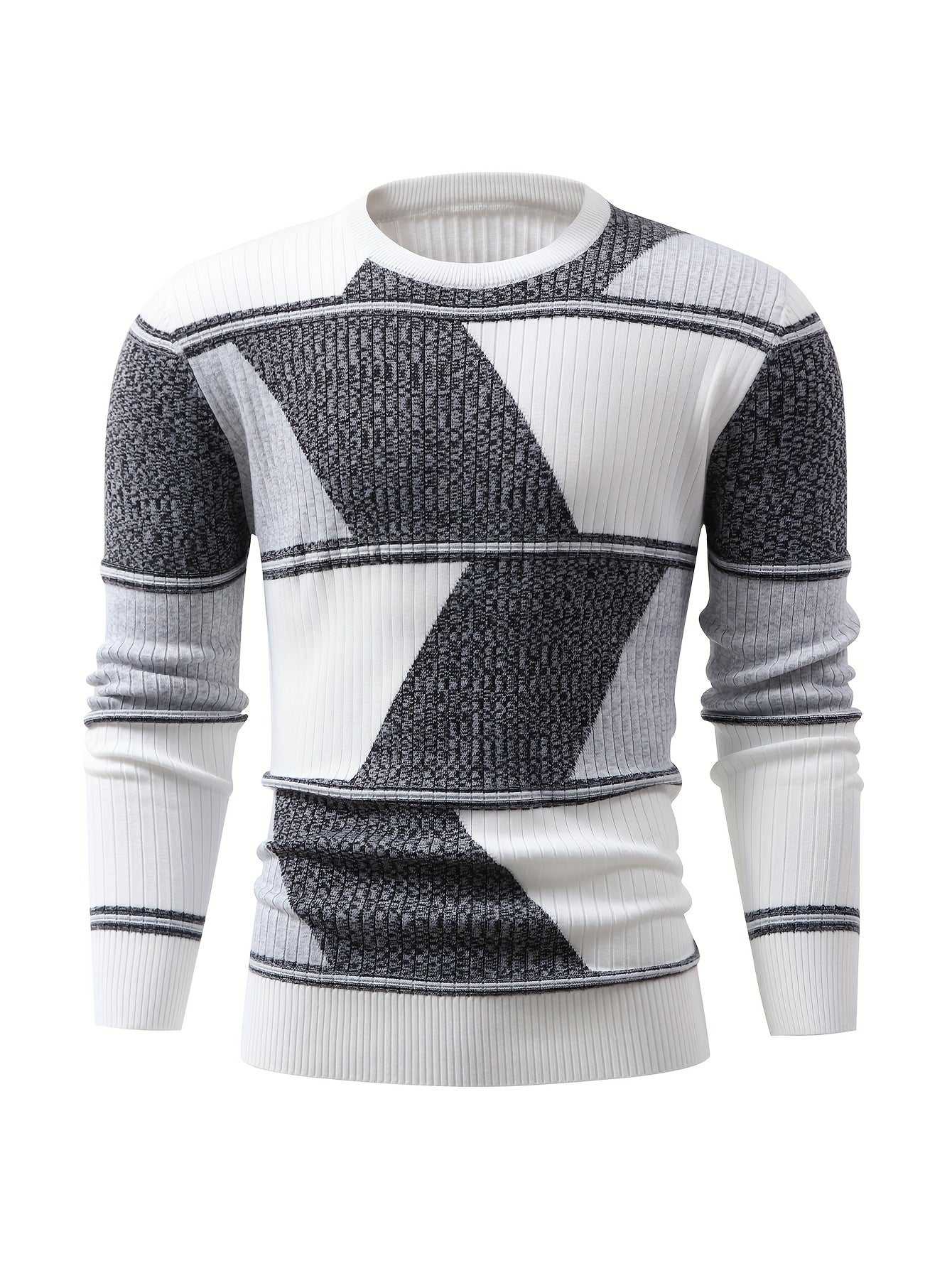 Men'S Fashionable Diamond Contrast Color Knit Long Sleeve Pullover in Faux Pear, First Name OBM, Casual Style, Ribbed Detail, High Stretch Fabric, Geometric Pattern, Regular Fit, Ideal for Fall/Winter