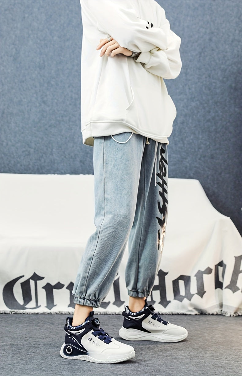 Men's Fashionable High-Top Sneakers with Rotating Buckle - Versatile, Breathable Running Shoes for All Seasons