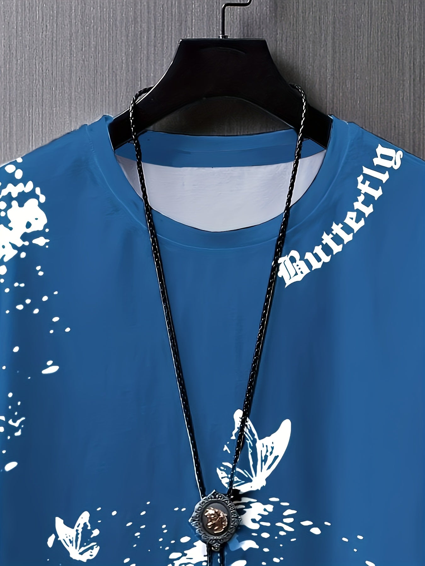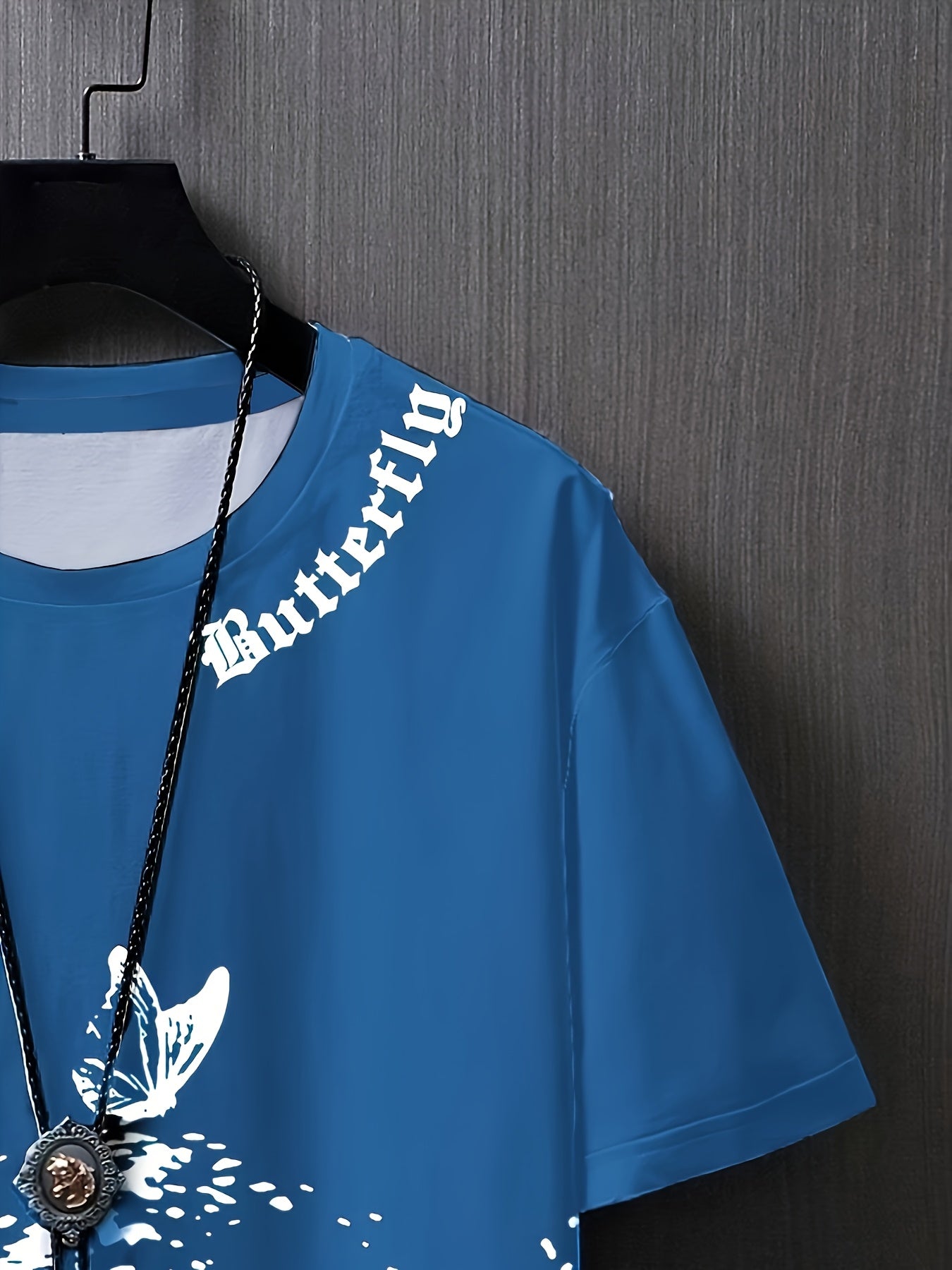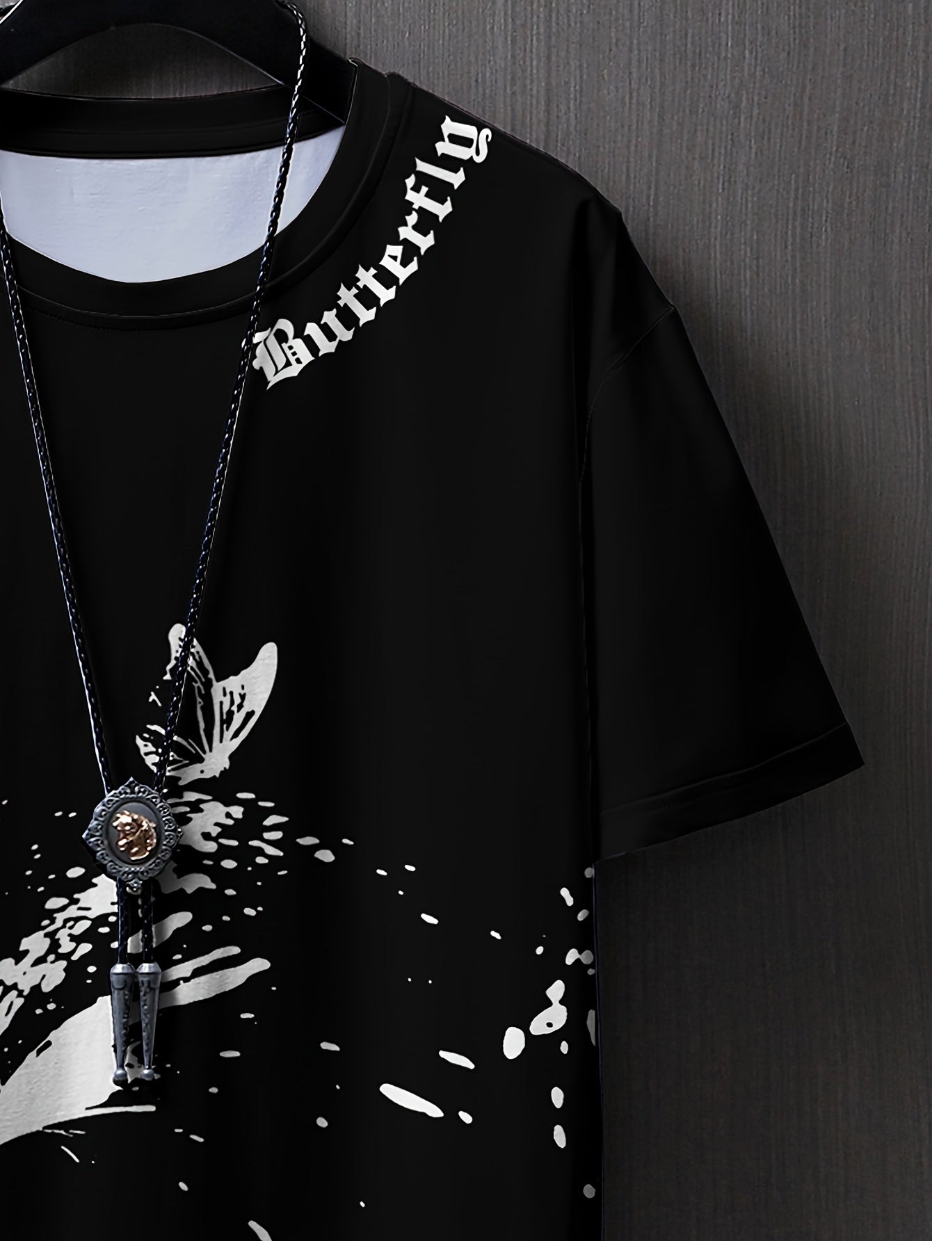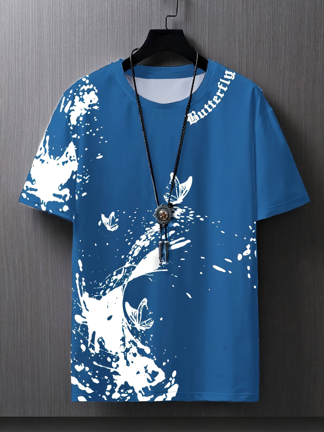 Men's Flat Shoulder Casual Butterfly Print Short Sleeve T-Shirt XT7119