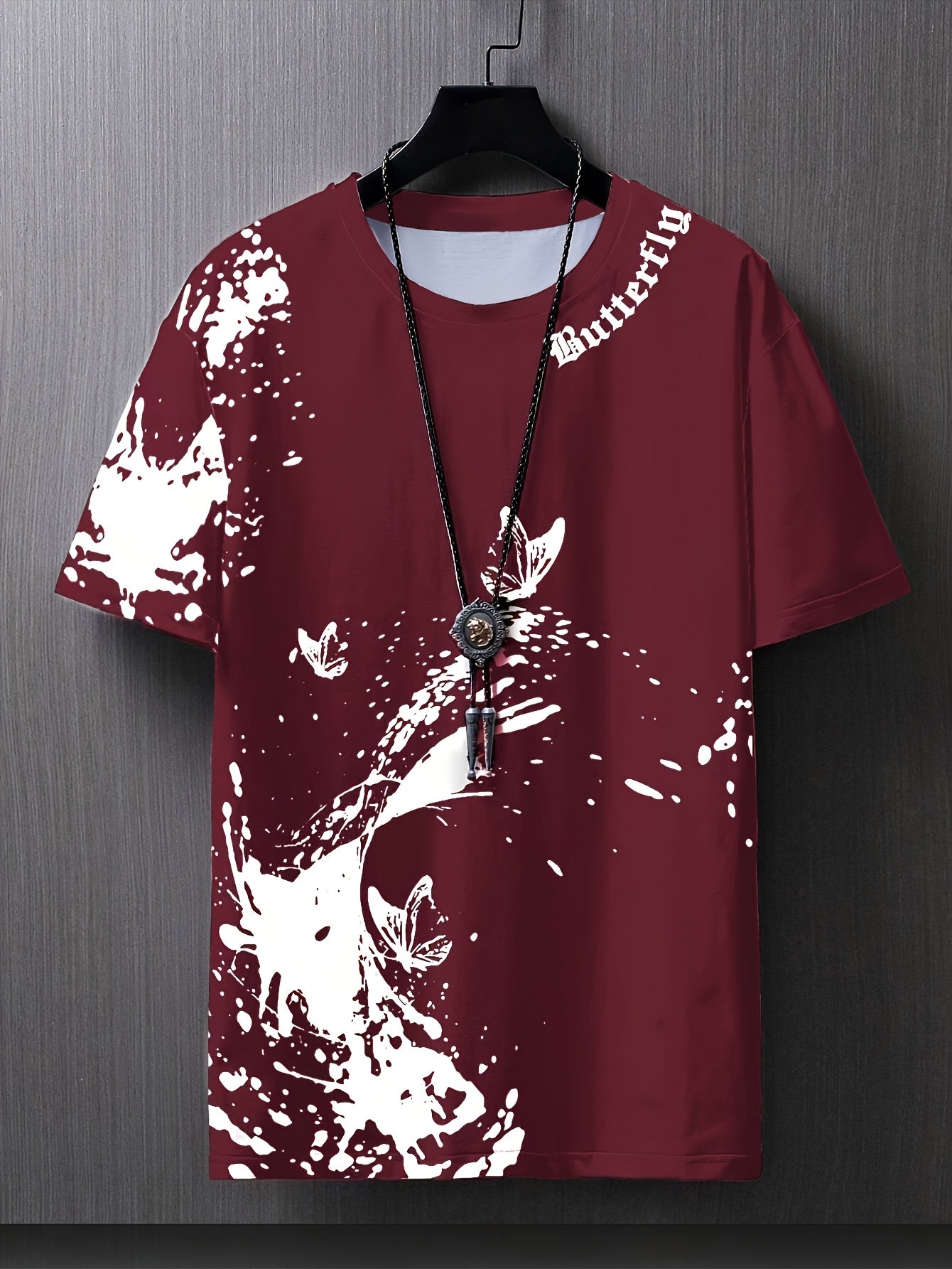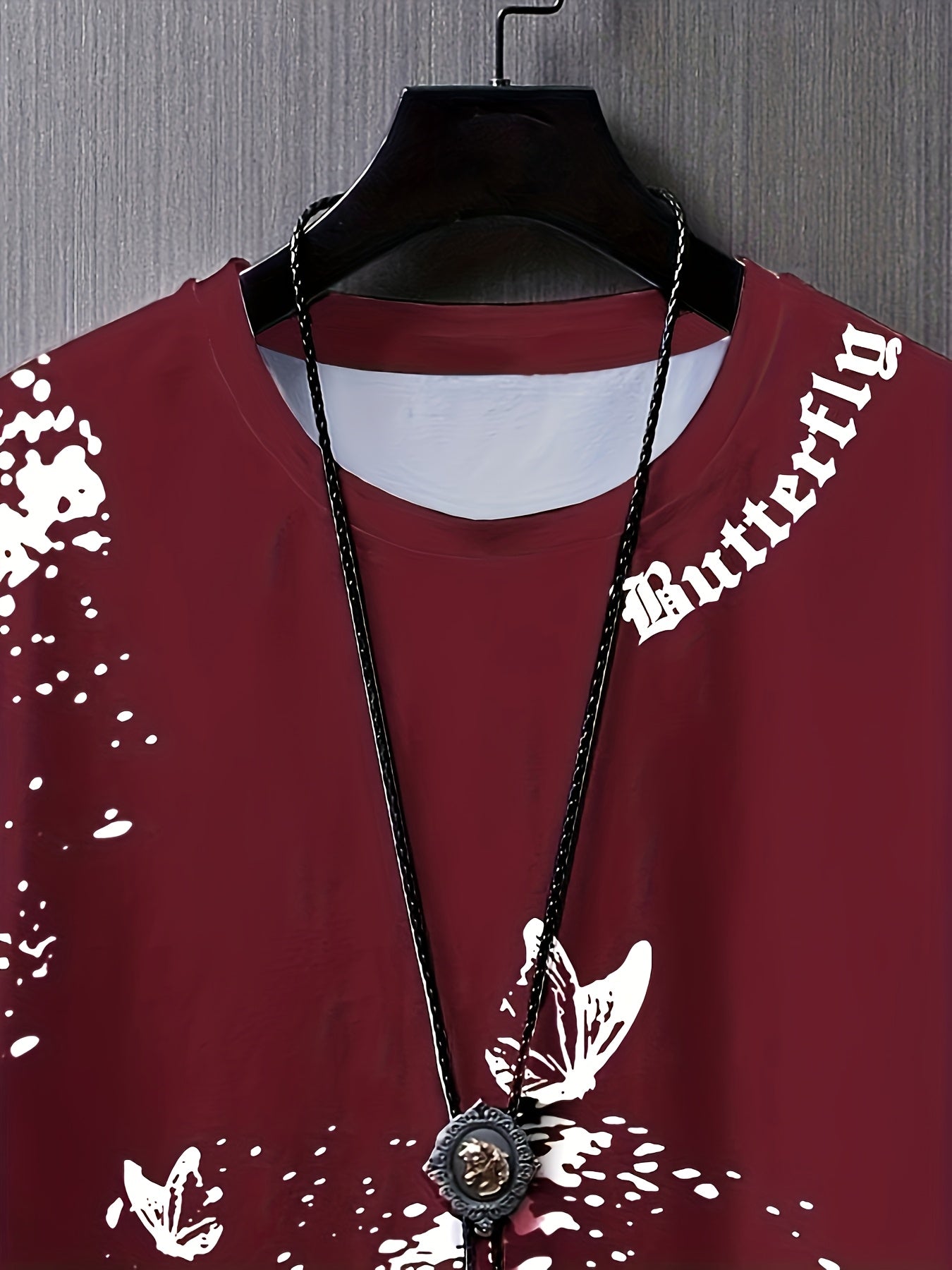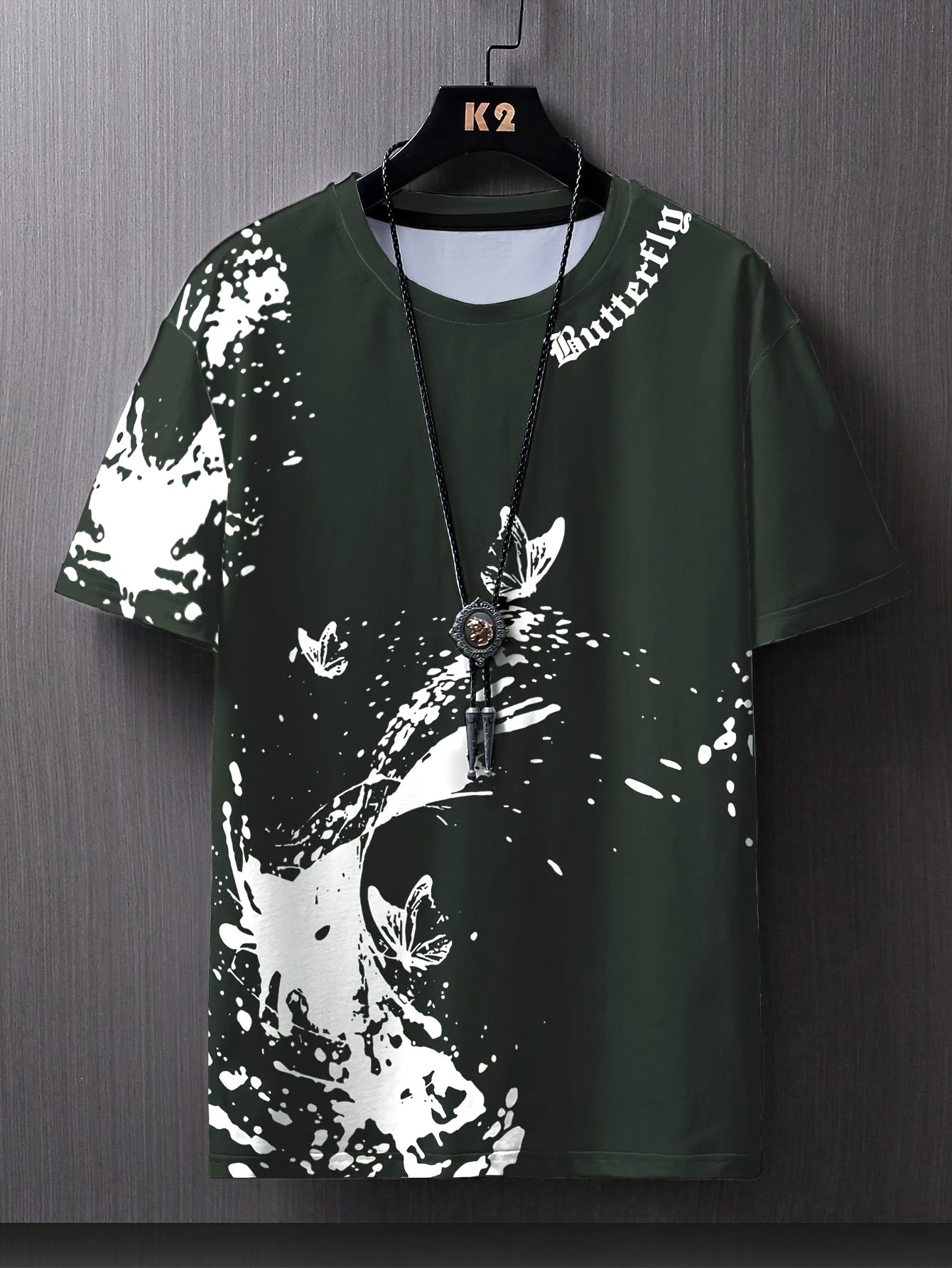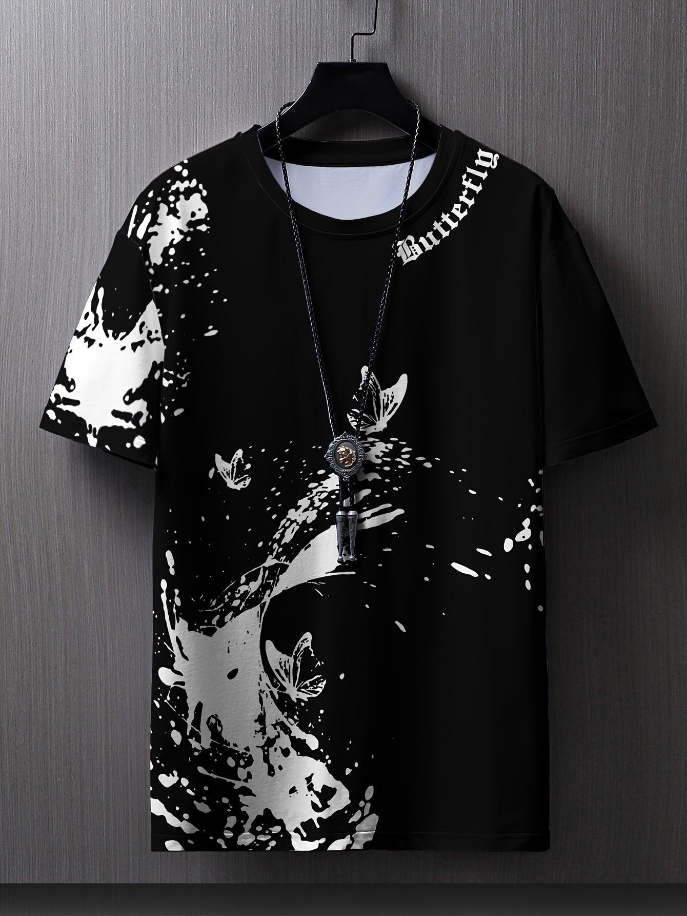 Men's Flat Shoulder Casual Butterfly Print Short Sleeve T-Shirt XT7119