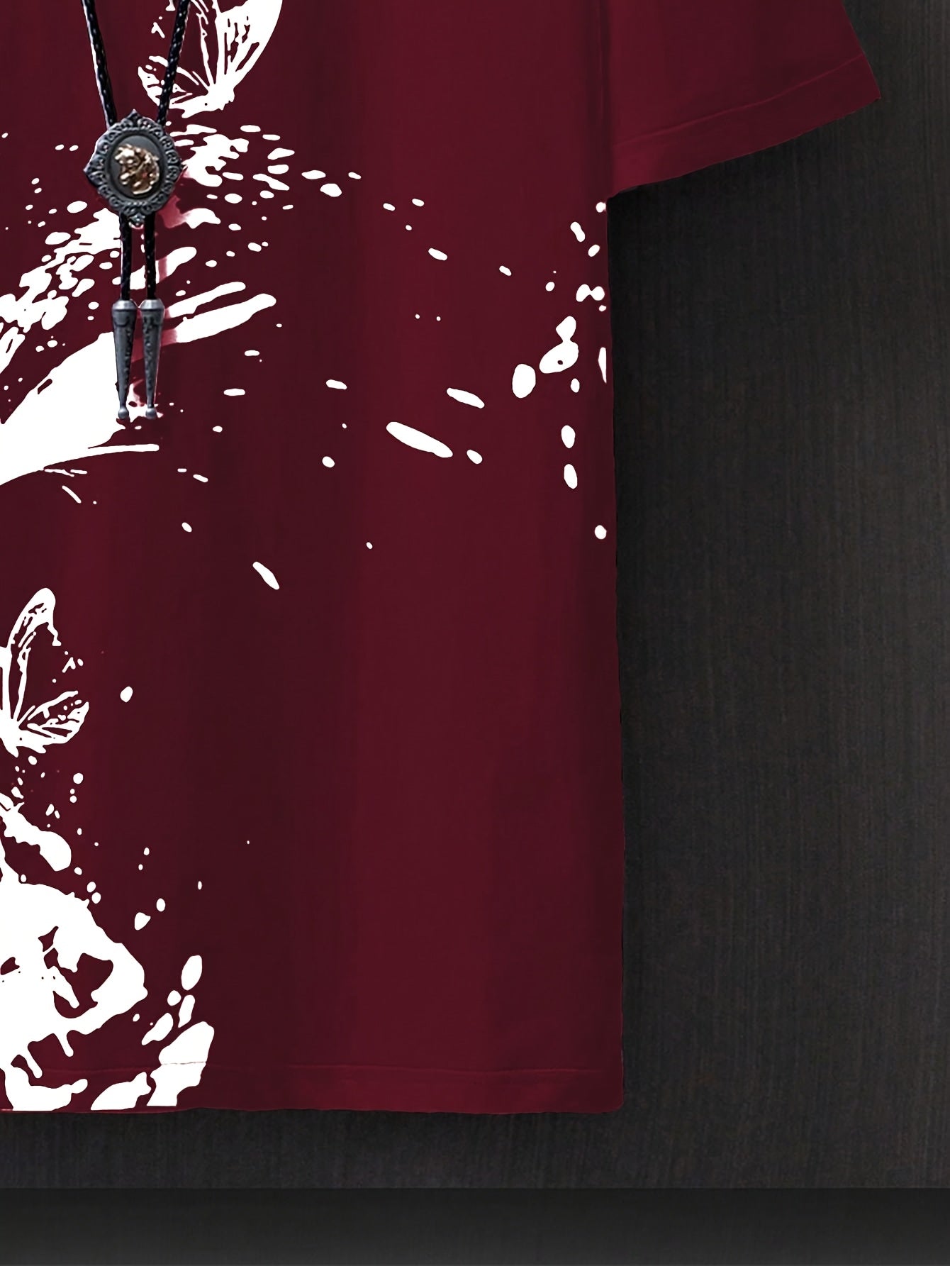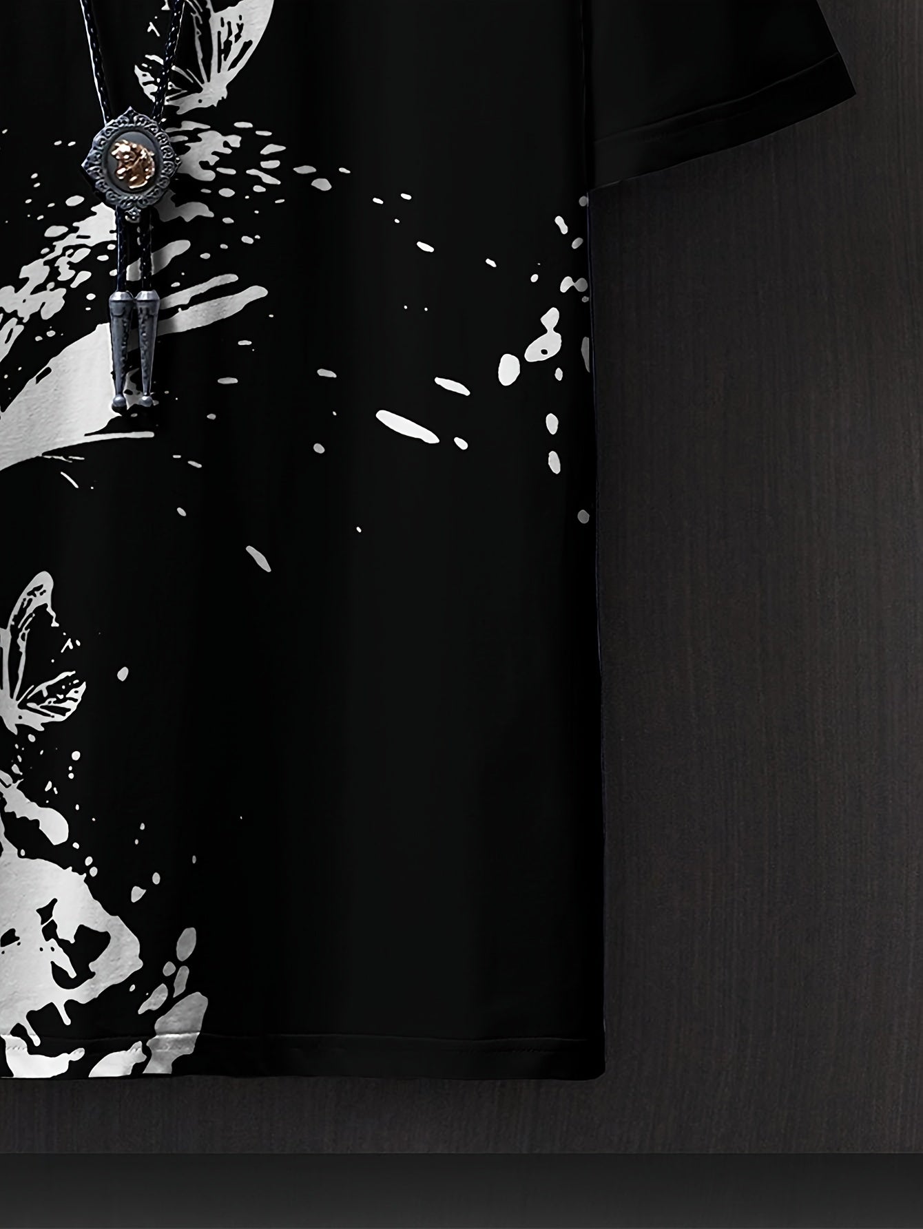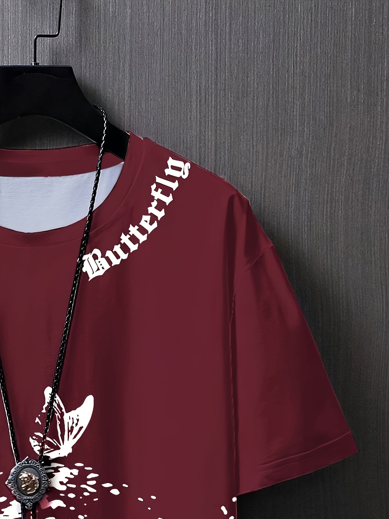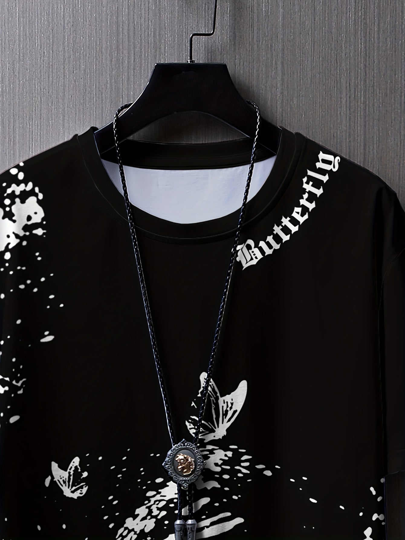 Men's Flat Shoulder Casual Butterfly Print Short Sleeve T-Shirt XT7119