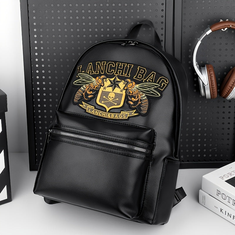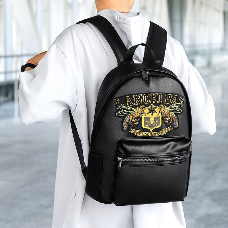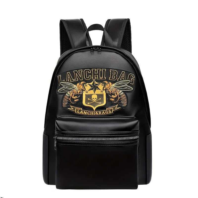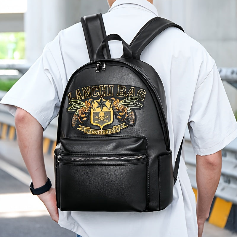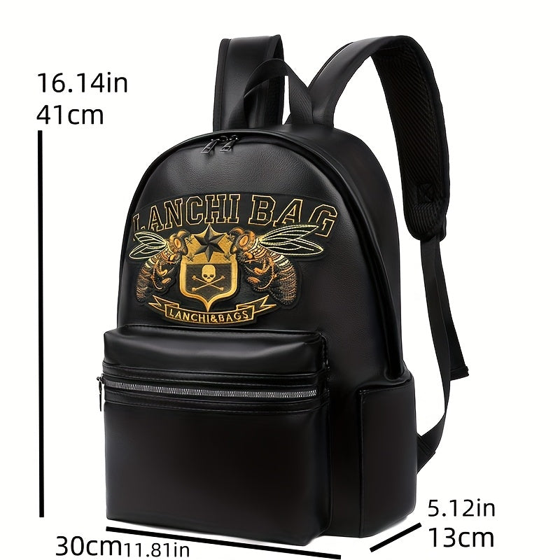 Men'S Genuine Backpack - Large Capacity, Multi-Functional Trolley Bag with Adjustable Straps, Golden Embossed Design, Perfect for School, Work, or Travel, Backpack for Travel, Durable Zipper Closure