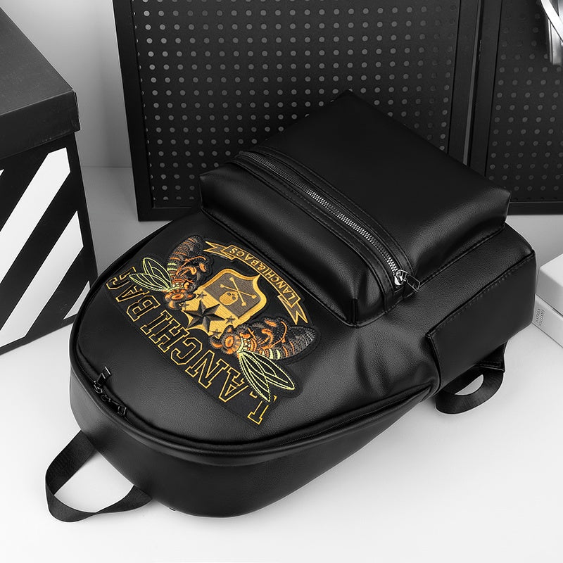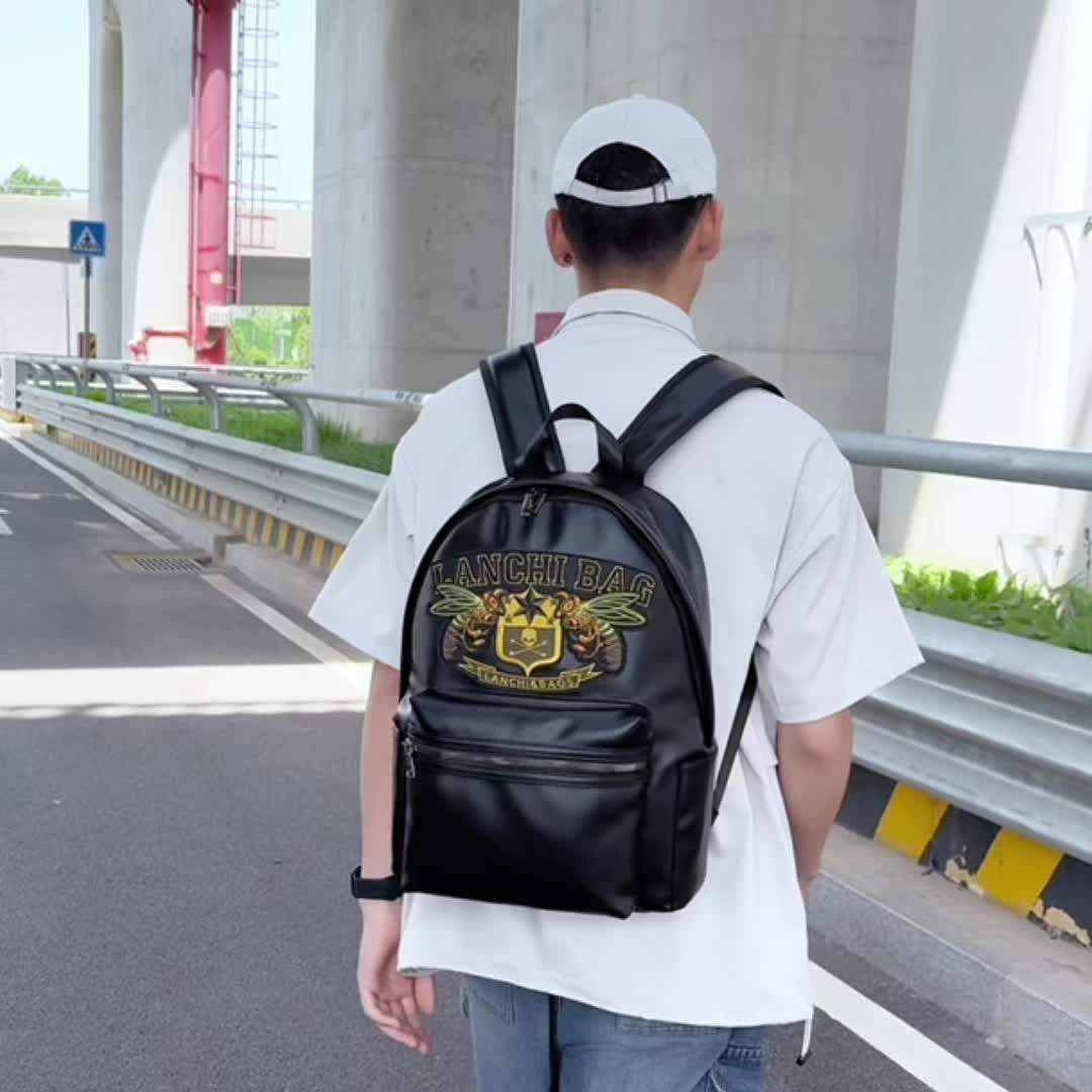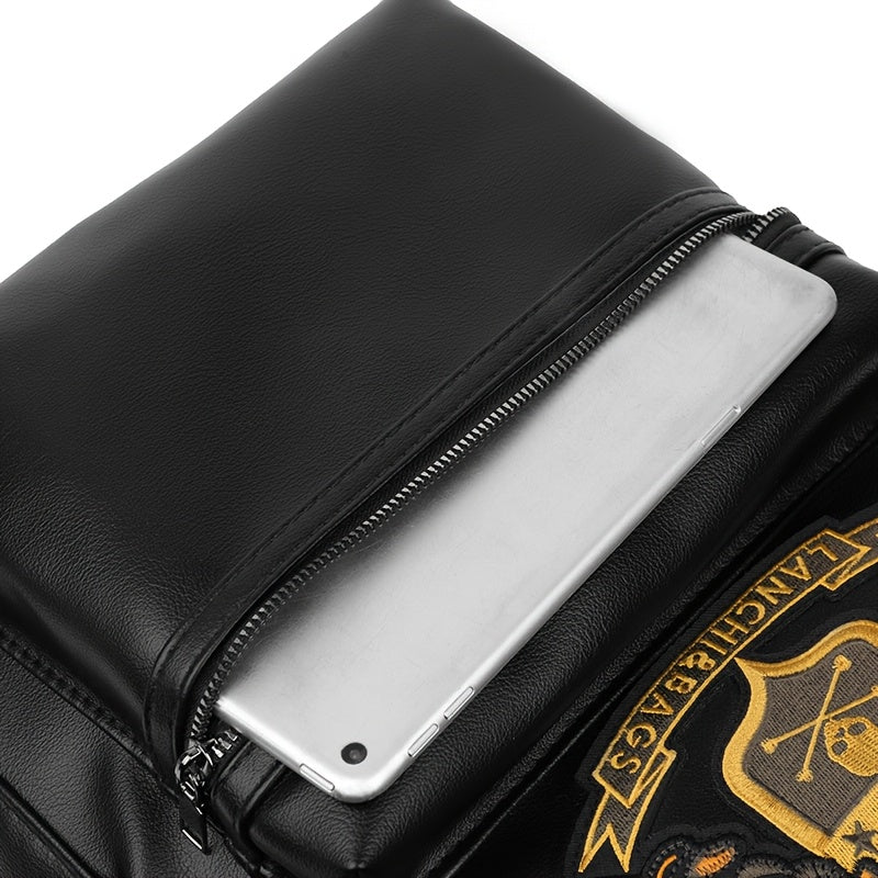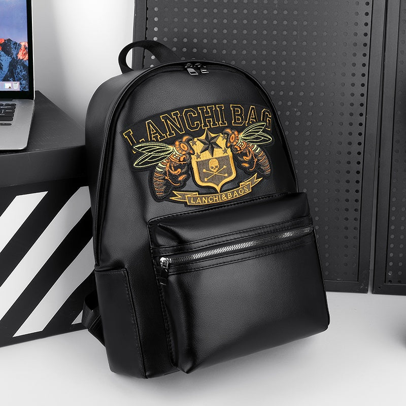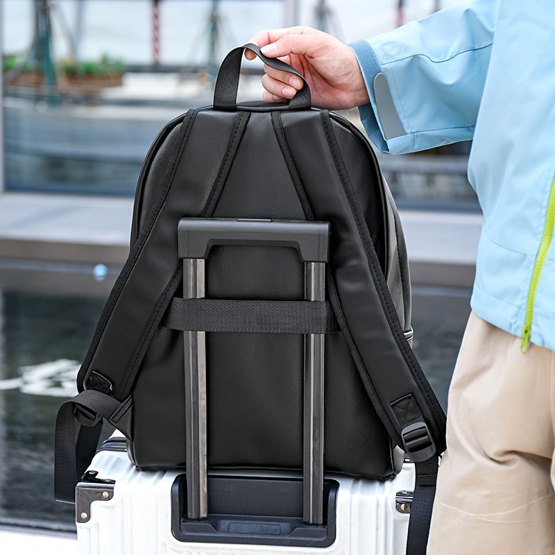 Men'S Genuine Backpack - Large Capacity, Multi-Functional Trolley Bag with Adjustable Straps, Golden Embossed Design, Perfect for School, Work, or Travel, Backpack for Travel, Durable Zipper Closure