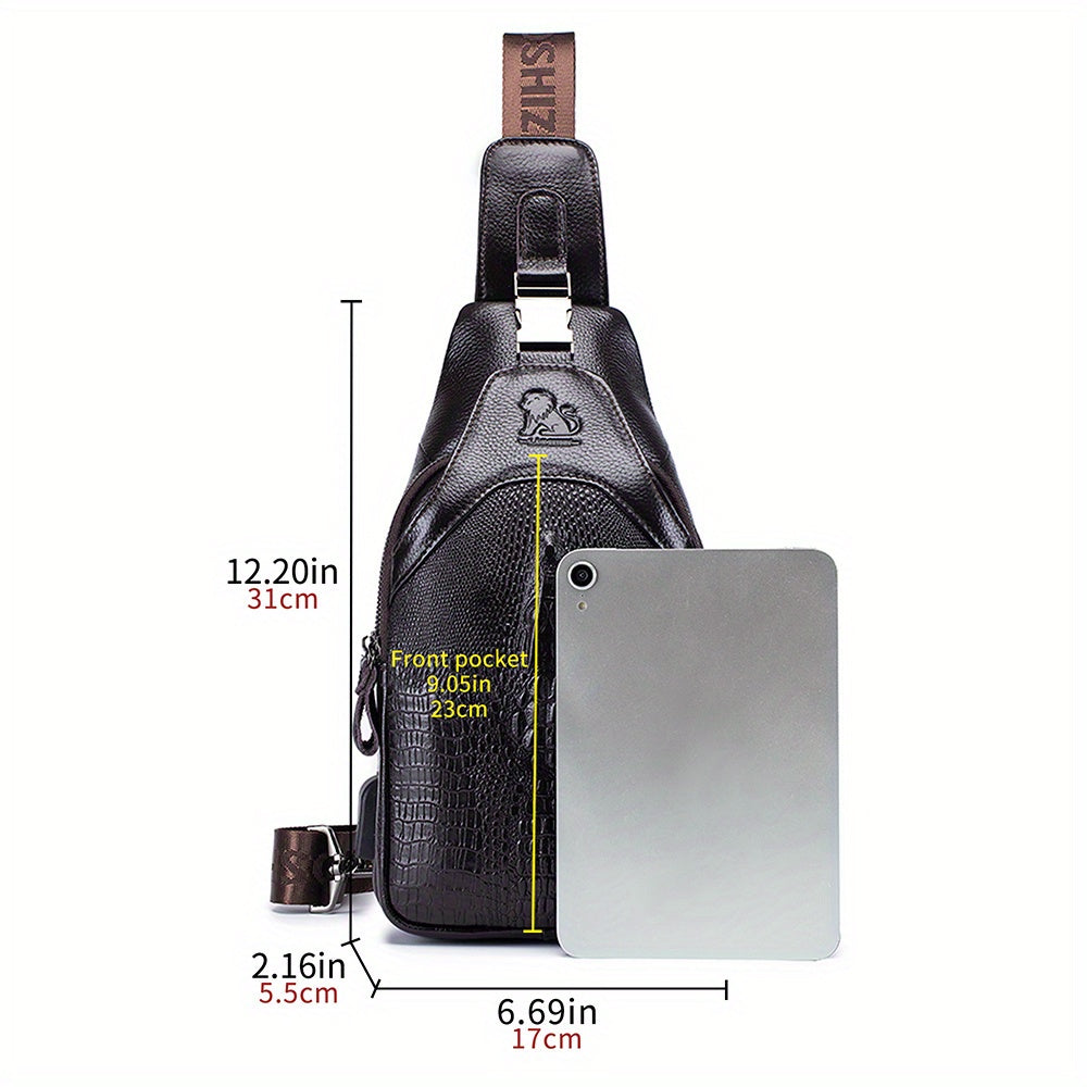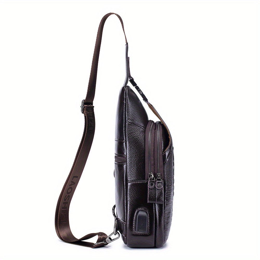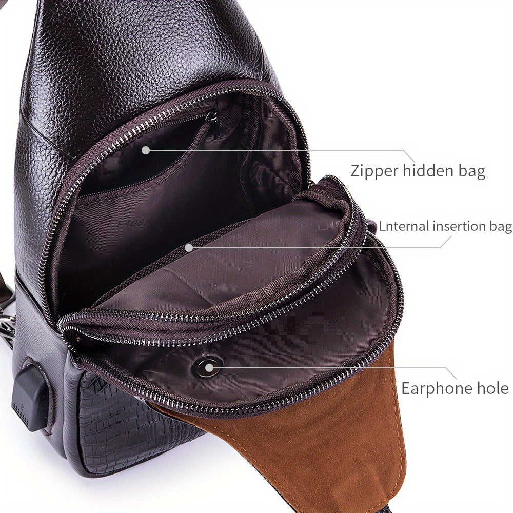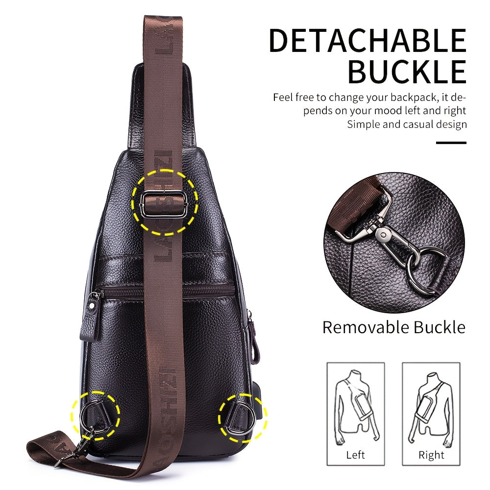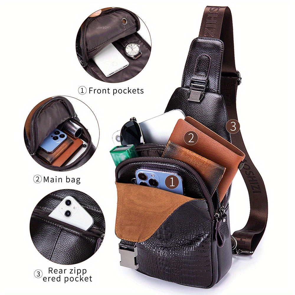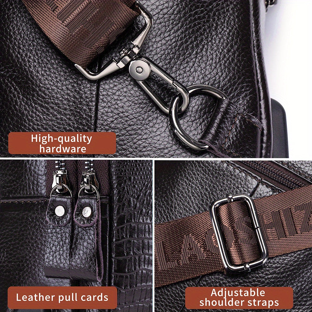 Men's Genuine Leather Crossbody Chest Bag, Top Layer Cowhide Genuine Leather Sling Bag, Large Capacity Double-Layer Chest Bag Shoulder Bag, Perfect for Valentine's Day, Teacher's Day, Back-to-School, Graduation, and Christmas