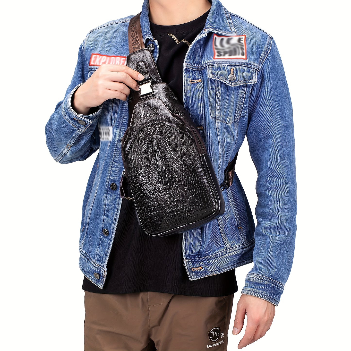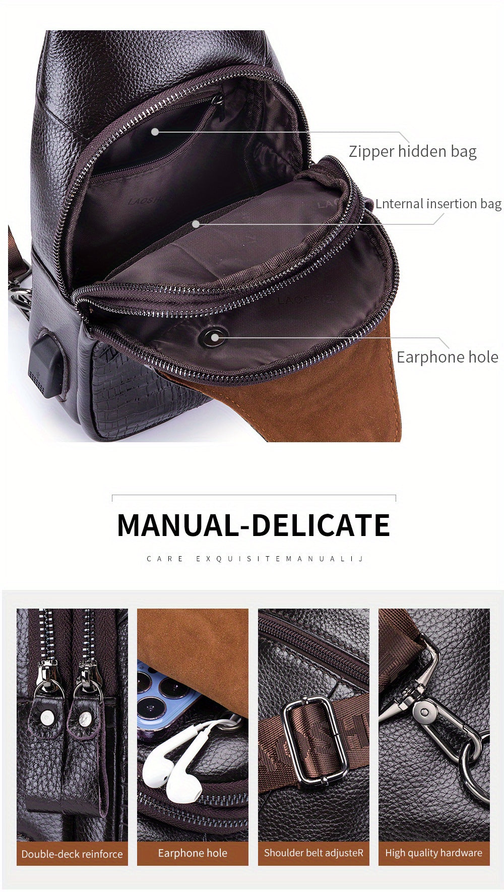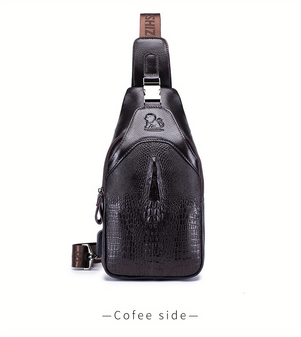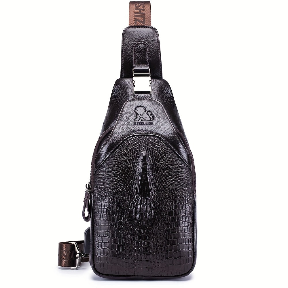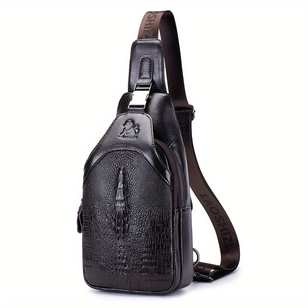 Men's Genuine Leather Crossbody Chest Bag, Top Layer Cowhide Genuine Leather Sling Bag, Large Capacity Double-Layer Chest Bag Shoulder Bag, Perfect for Valentine's Day, Teacher's Day, Back-to-School, Graduation, and Christmas