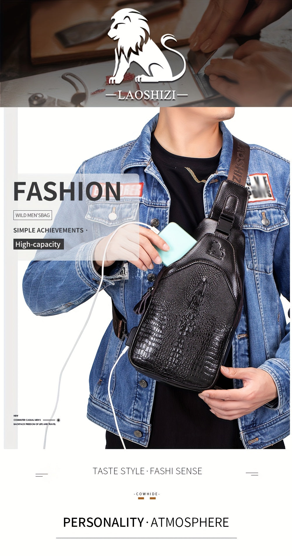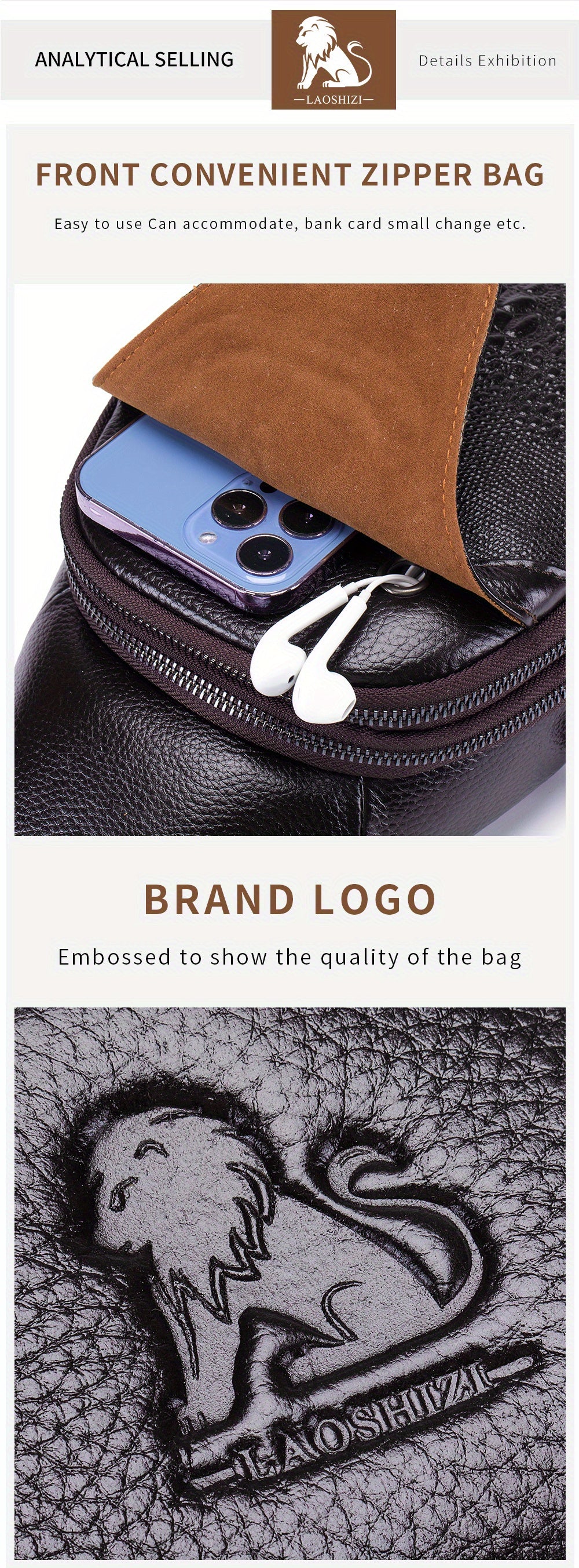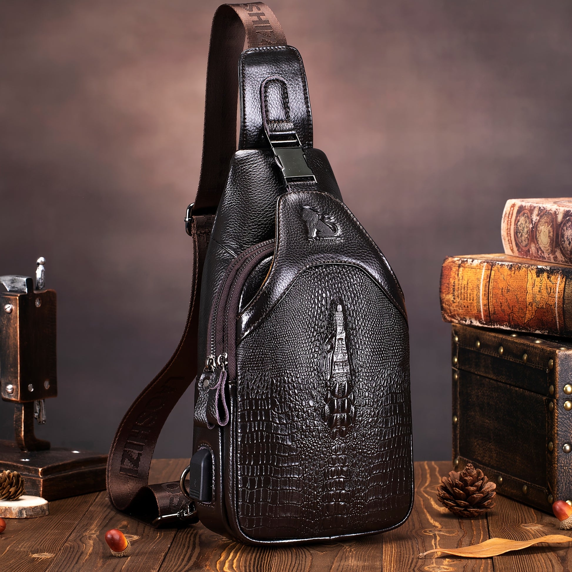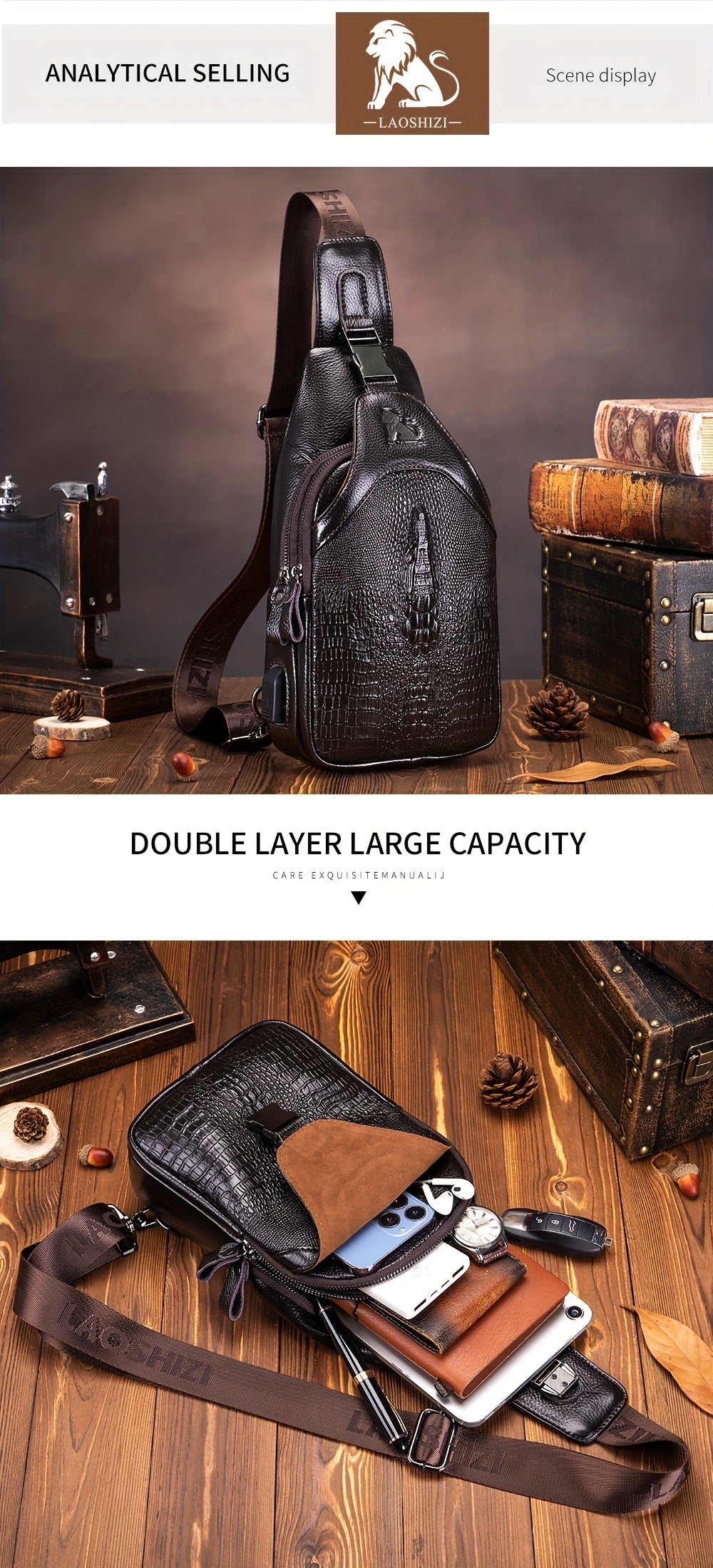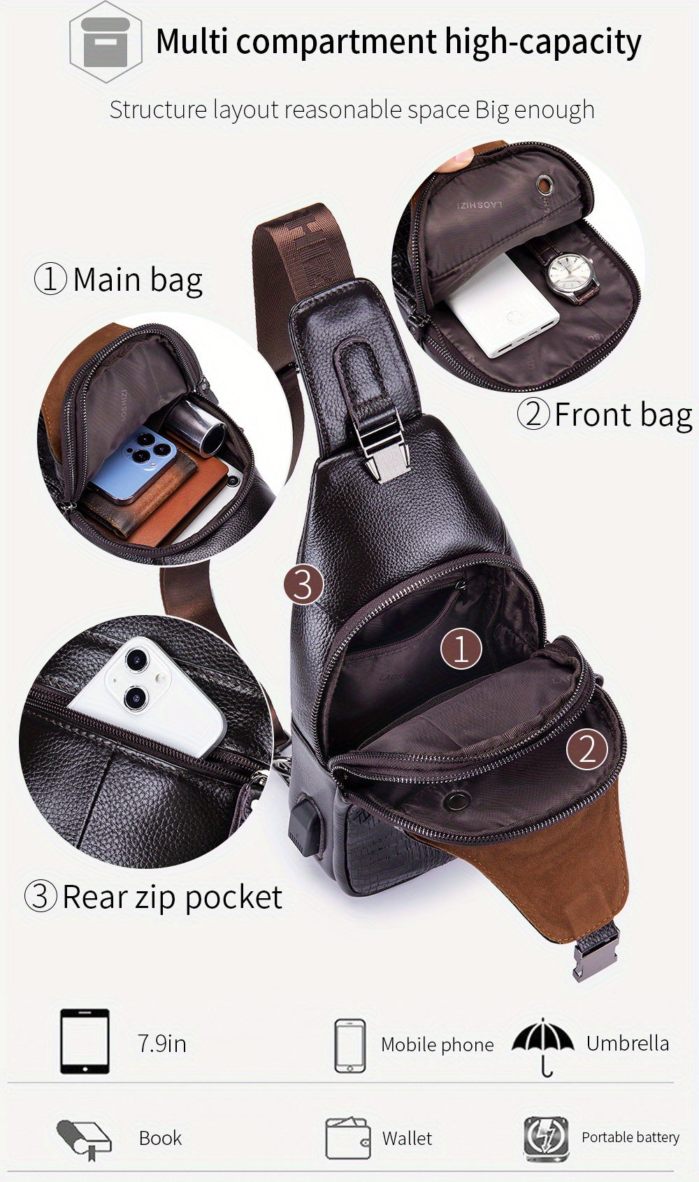 Men's Genuine Leather Crossbody Chest Bag, Top Layer Cowhide Genuine Leather Sling Bag, Large Capacity Double-Layer Chest Bag Shoulder Bag, Perfect for Valentine's Day, Teacher's Day, Back-to-School, Graduation, and Christmas
