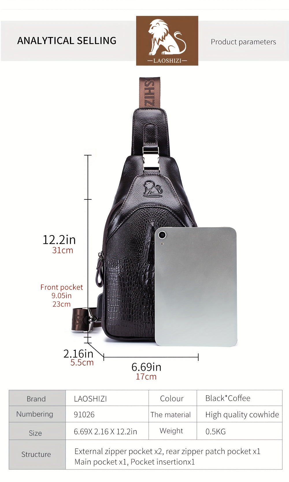 Material: Top-grain leather