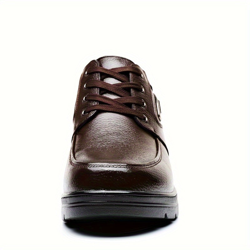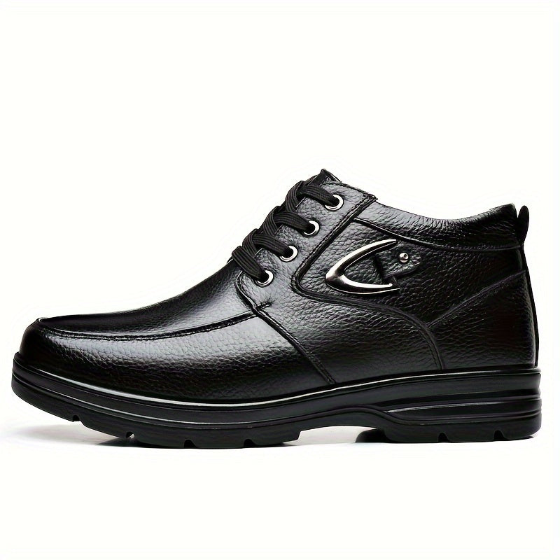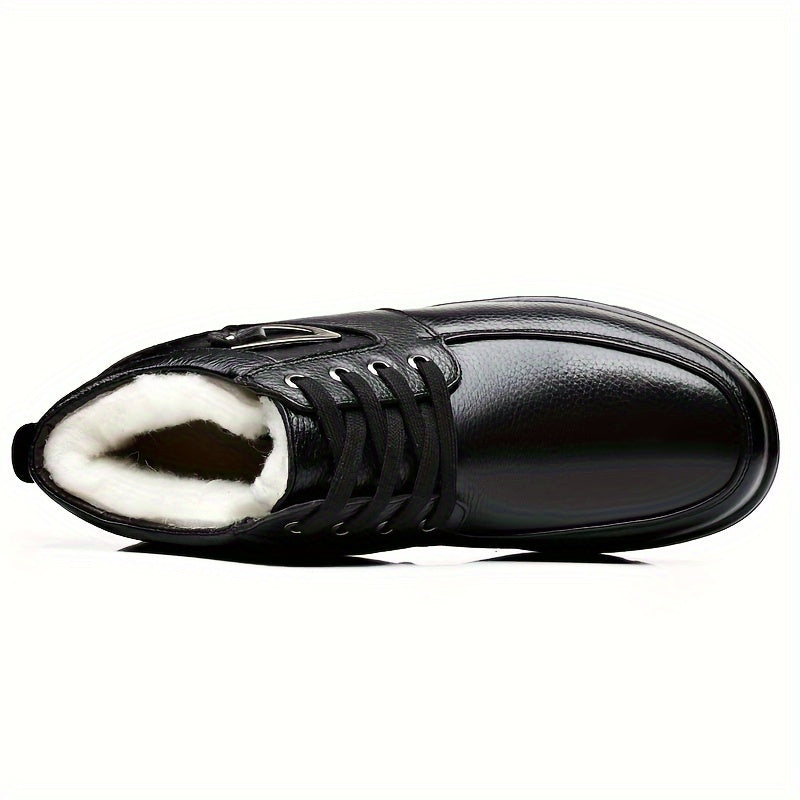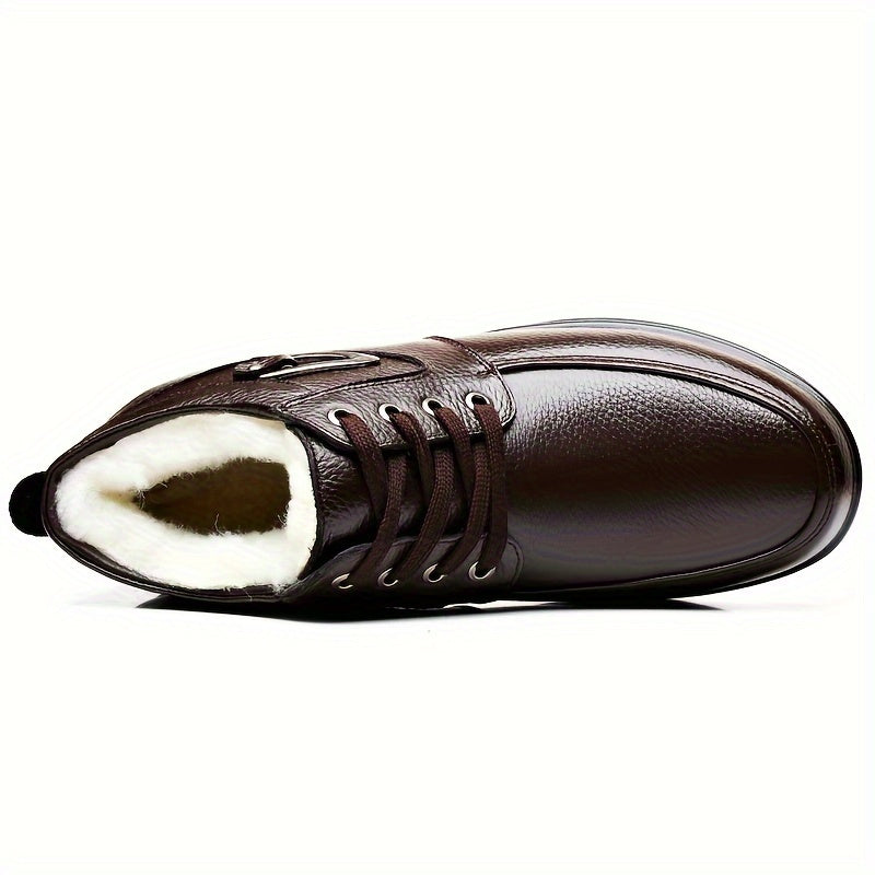 Men's Genuine Leather Winter Snow Boots - Short Ankle Boots with Rubber Sole, Lace-Up Cold-Weather Footwear for Ice & Snow, Heavy-Duty Traction (Wide Fit Available) - Ideal for Skiing, & Outdoor Activities (No