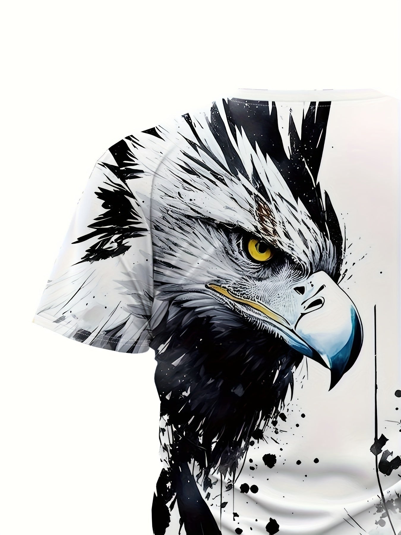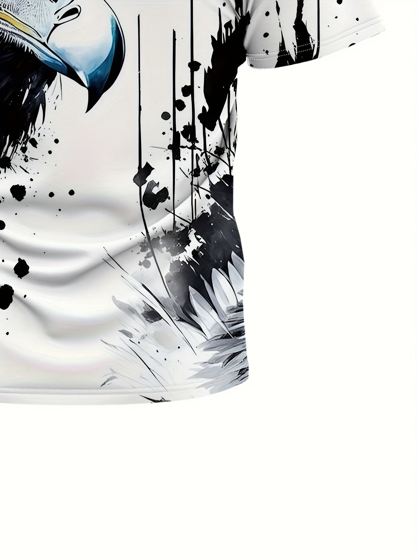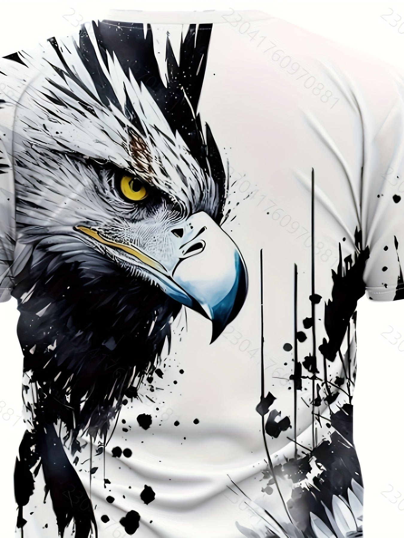 Men'S Graphic Design Round-Neck Sports T-Shirt Featuring an Ink Wash Eagle Print, Suitable for Casual Wear, Gym Workouts, And Running During The Summer.