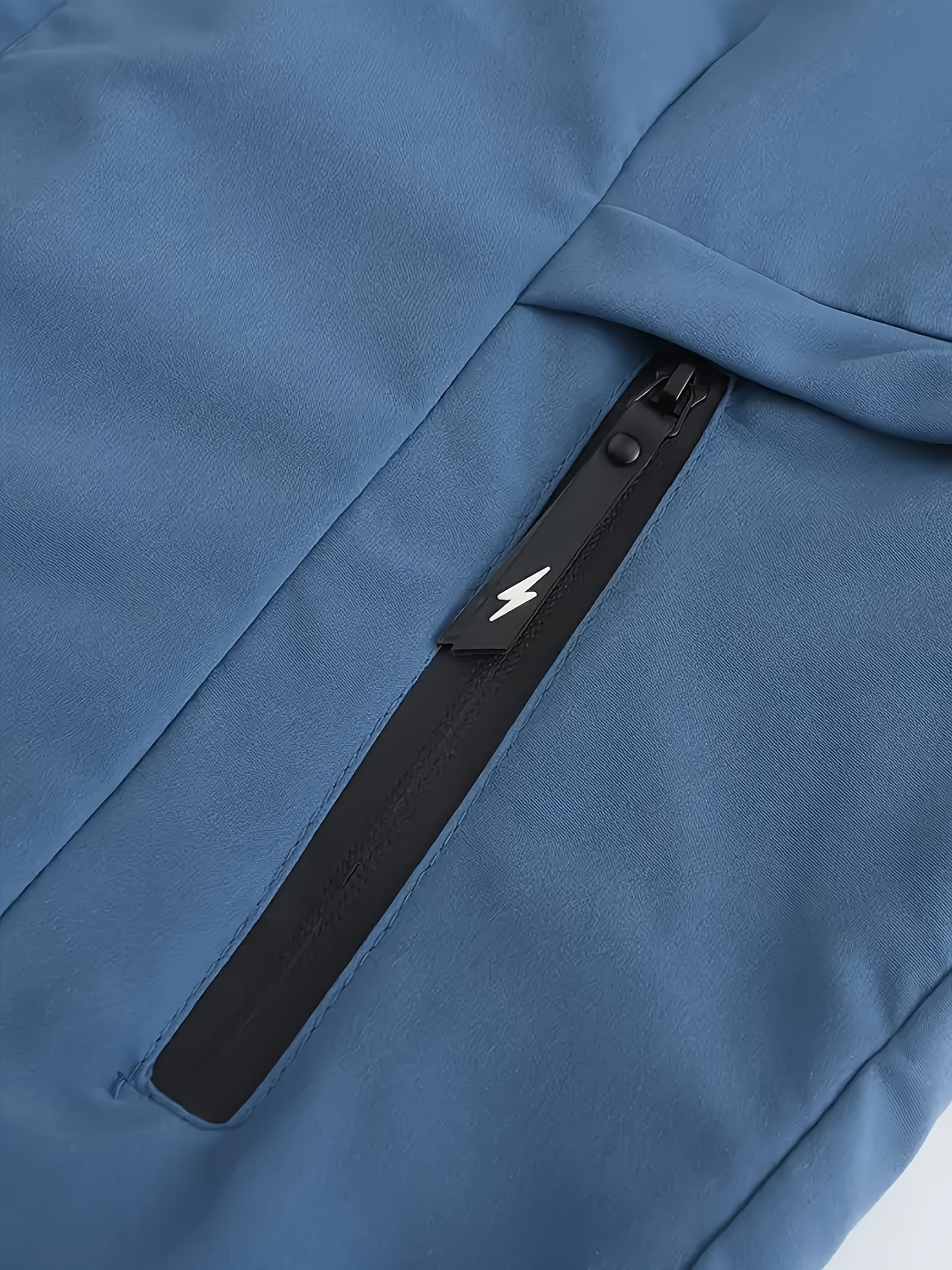 Men's Heavy-Duty Winter Hooded Jacket with Paris Print & French Label-Like Pocket - Full-Zip Full-Length Coat, Slim-Fit Casual Outerwear (Machine Washable) - Blue/Golden for Business & Everyday Use (), Mens Clothes, Workwear