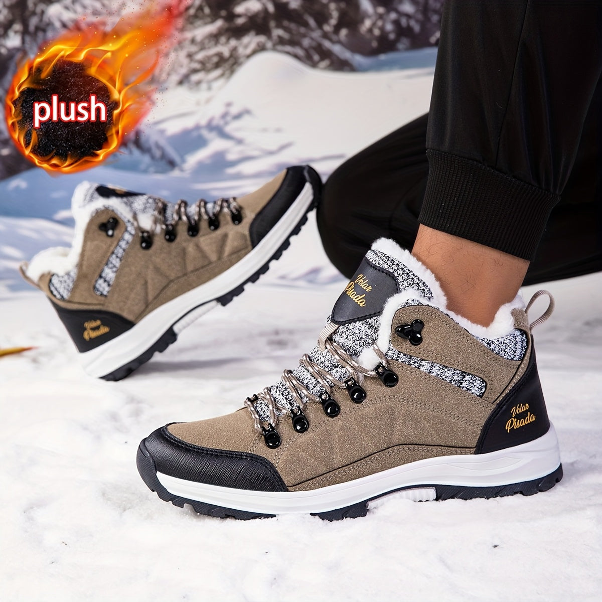 Men'S Heavy-Duty Winter Snow Boots - Thick-Soled Short Boots with Plush Lining & Non-Slip TPR Sole, Mid-Calf Hiking & Climbing Shoes for Ice Climbing, Snowshoeing & Outdoor Adventures, Winter Boots, Hiking Footwear, Sporty De