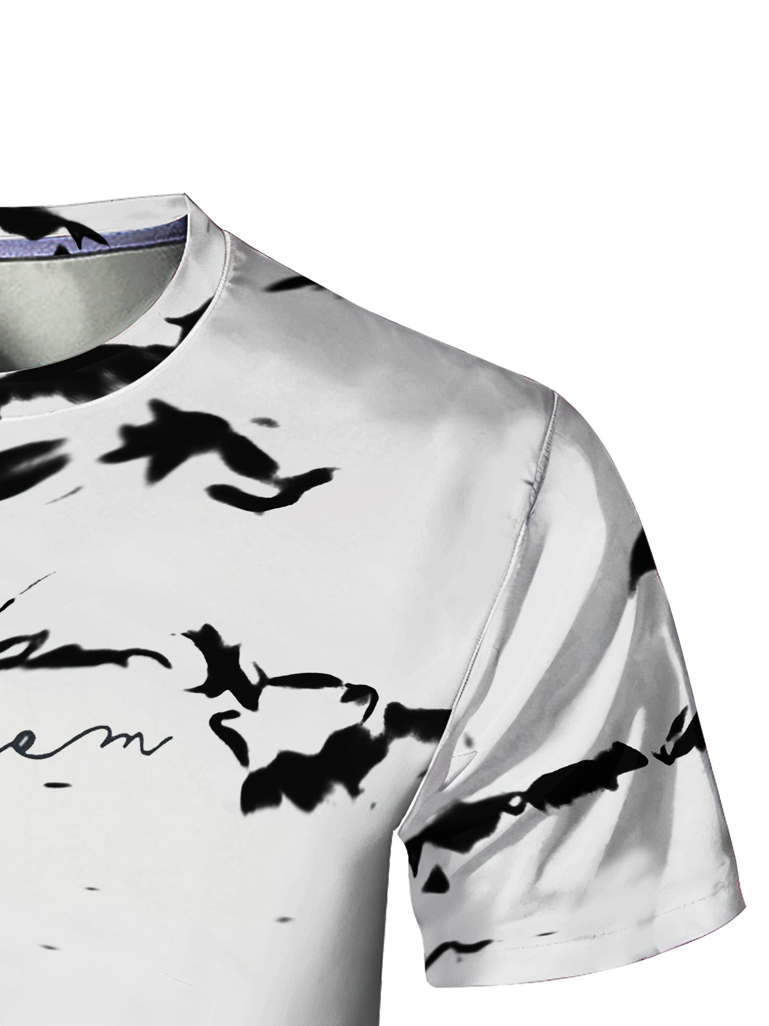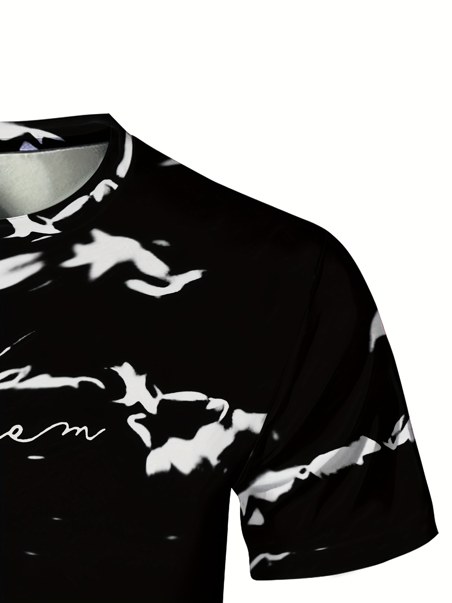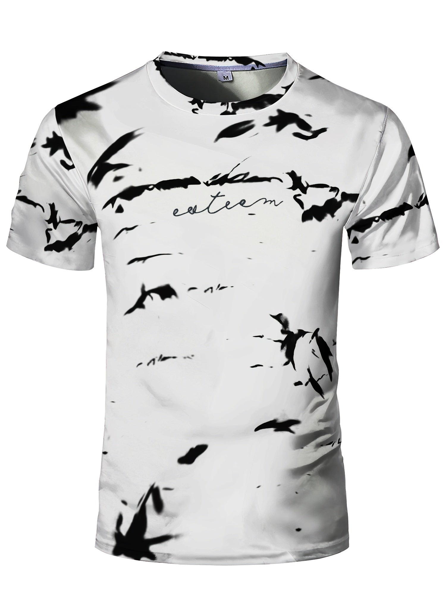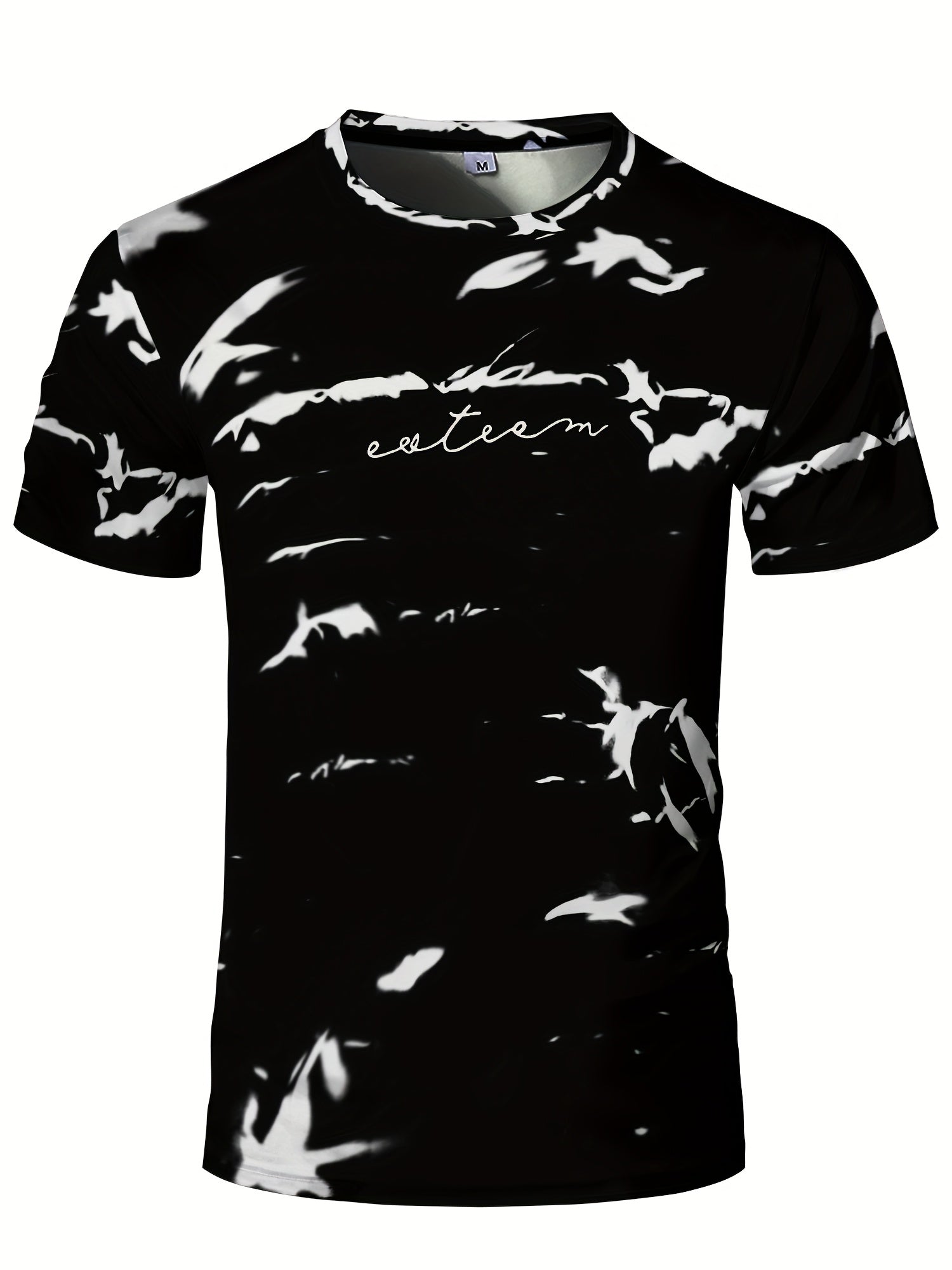 Men's High-Elasticity Anti-Tear Graffiti T-Shirt - Black White Geometric Print, Tight-Fit Athletic Top for Gym, Running, Yoga Casual Summer Wear, Gym Clothes, Highelastic Polyester, Short Sleeve Design