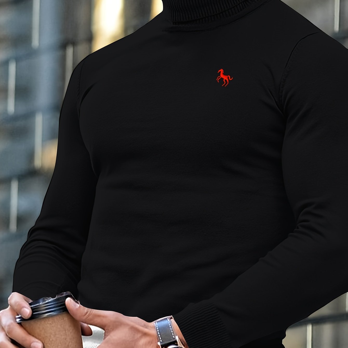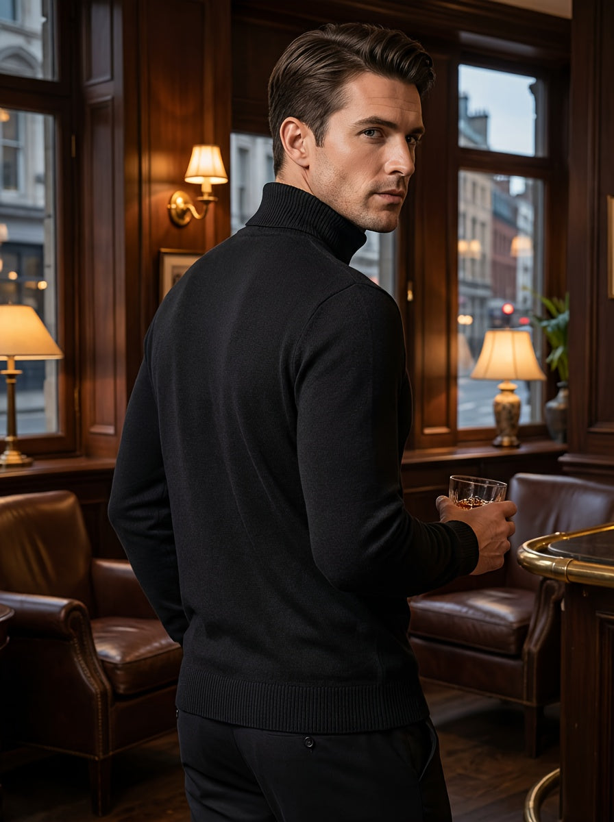 Men'S High-Neck Knitted Sweater | Slim Fit Pullover with Embroidered Spurs Design, Soft and Comfortable, Rayon Fabric, Fall/Winter Collection