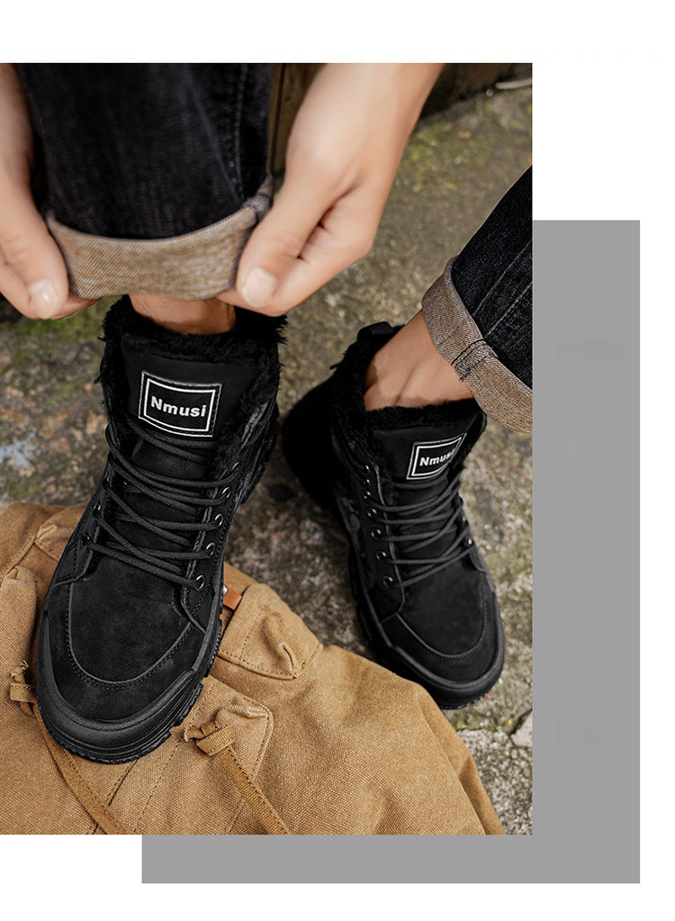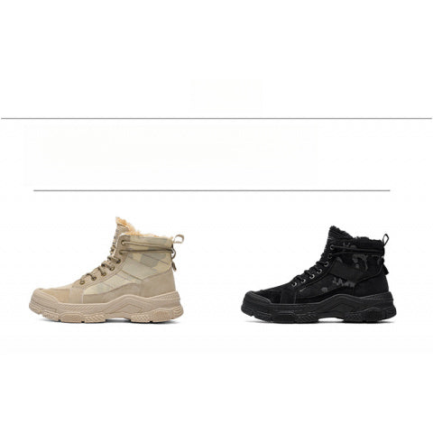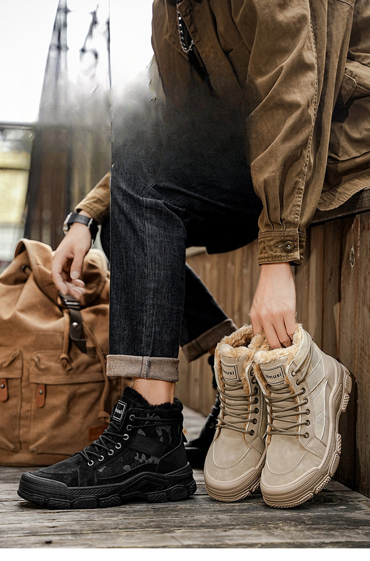 Men's High-Top Winter Boots with -Like Collar & - Heavy-Duty PU Upper, PVC Sole, Beige/Tan Lace-Up Snow Boots for Ice, Slush,, Outdoor (Warm Cold Weather Footwear)