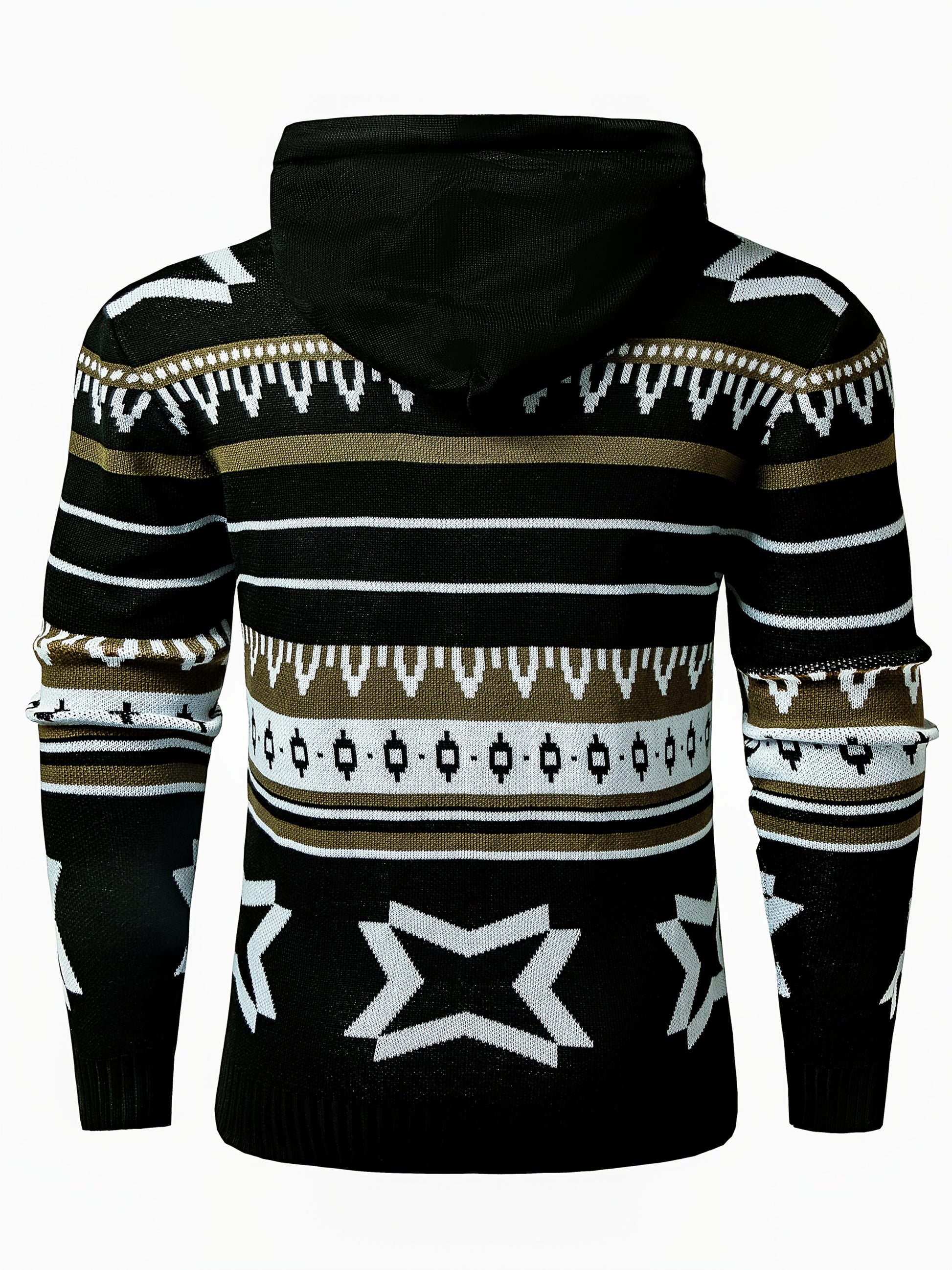 Men'S Hooded Pullover for Autumn And Winter, Featuring a Geometric Knit Pattern, Street Style, And a Cozy Knitted Sweater