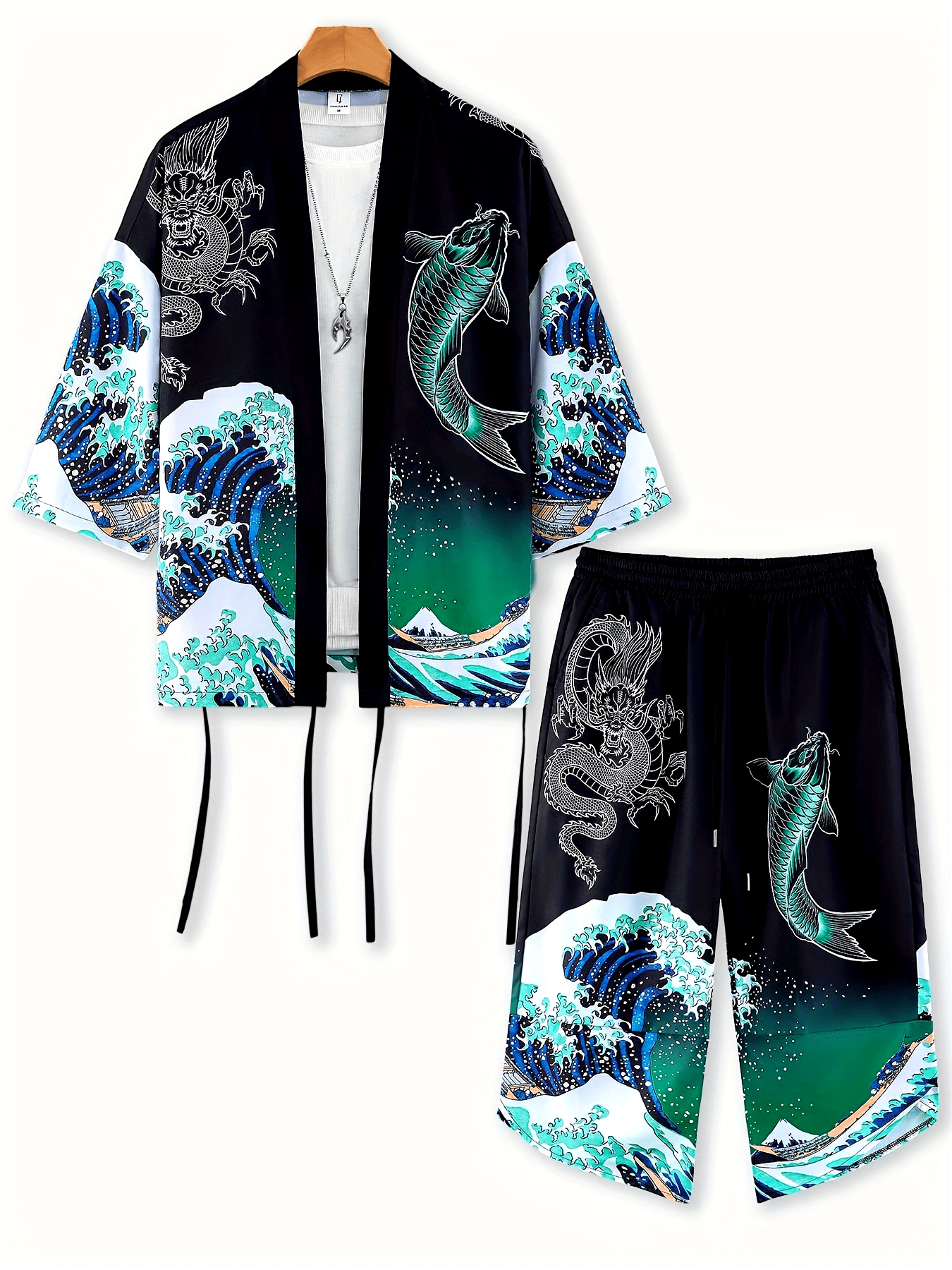 Men's Kimono Set with Carp Leaping Over the Dragon Gate Pattern