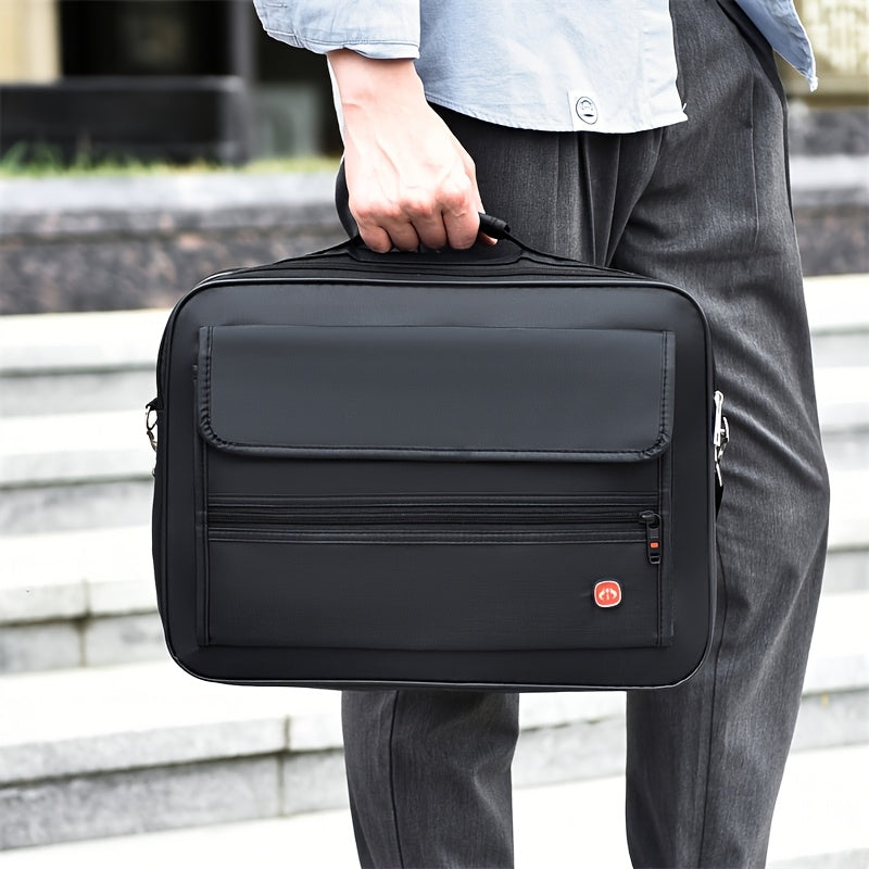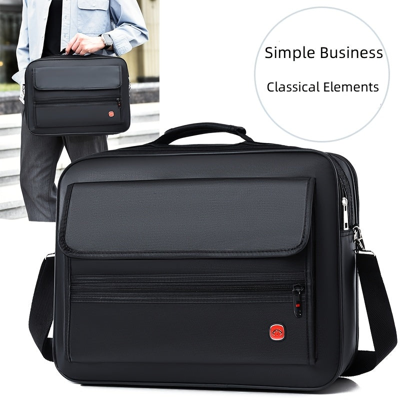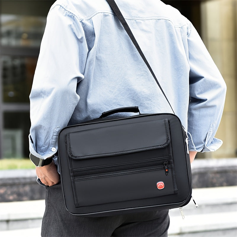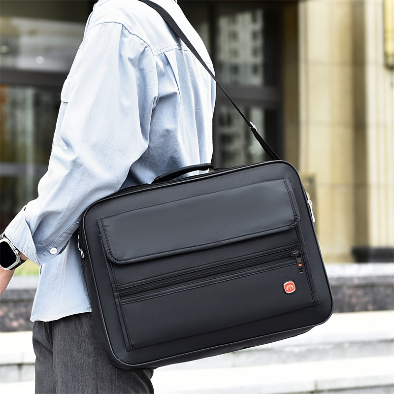 Men's Large Capacity Business Messenger Bag - Black Nylon Fabric, Adjustable Shoulder Strap, Multiple Compartments for Phone, Laptop, Tablet, Keys & Umbrella, Perfect for Work, Travel & Casual Use, Laptop Messenger Bag, Daily