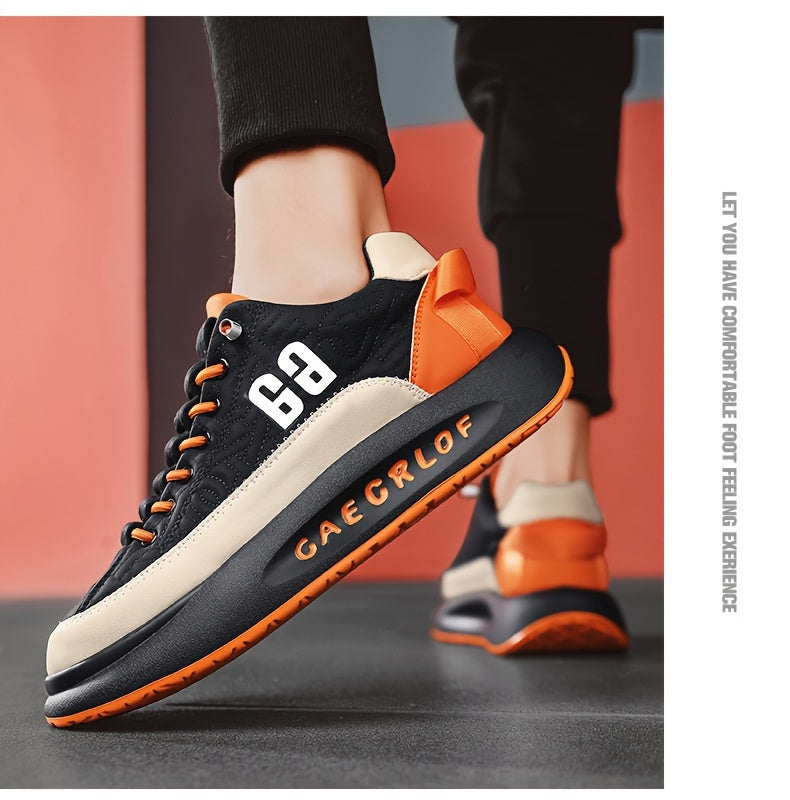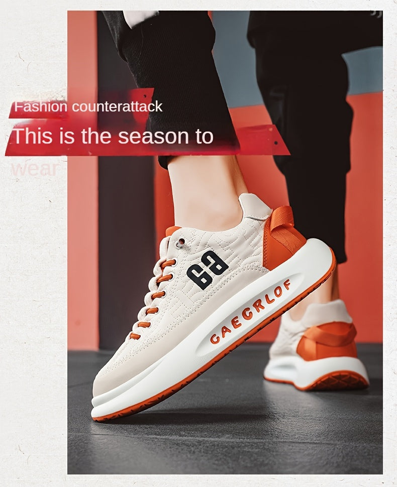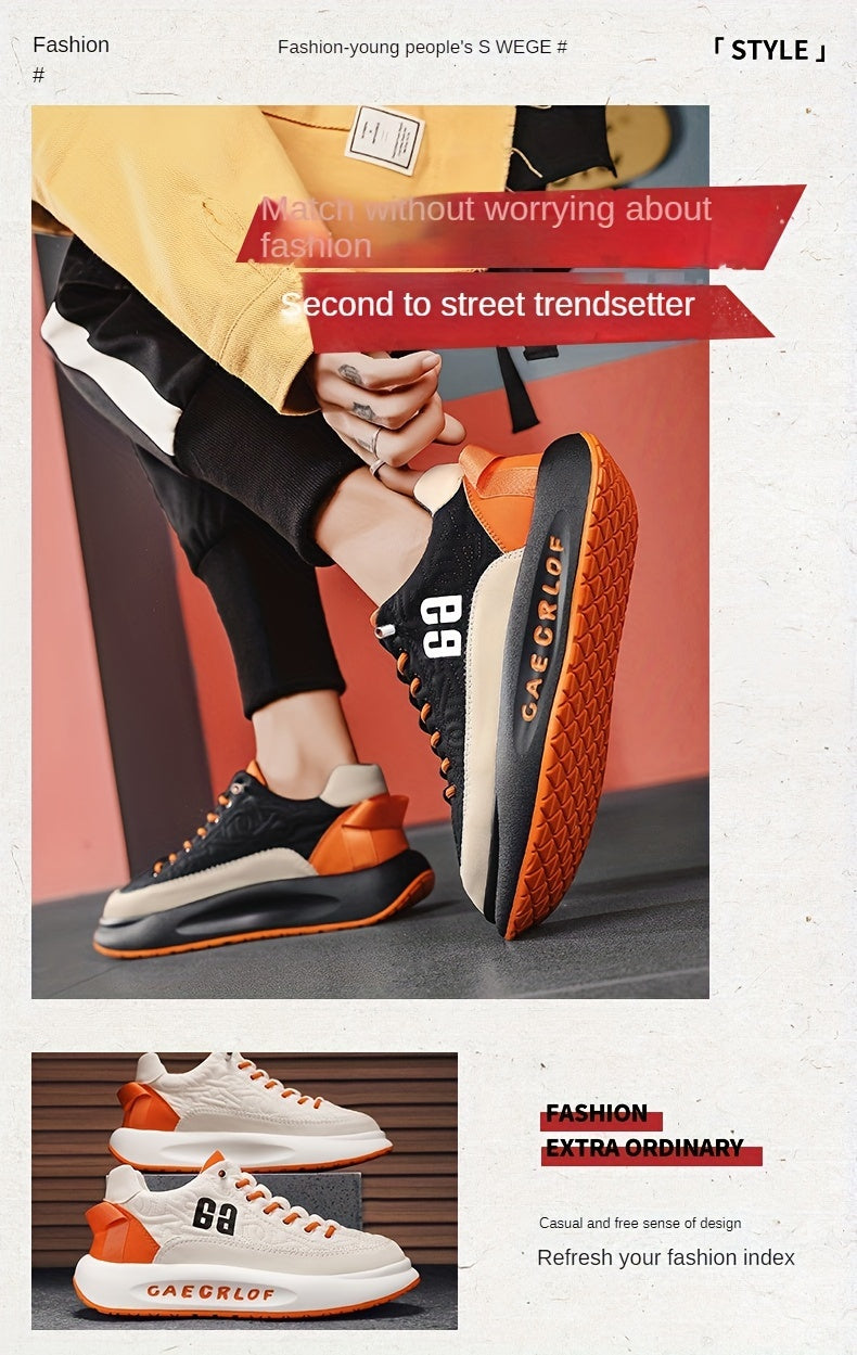 Men'S Large Size Versatile Chinese Style Sneakers - Casual Sports Thick Sole Dad Shoes, Low Top, Elastic Band Closure, Faux Upper, Fabric Lining, Rubber Sole, EVA Insole, Fashion Sneakers