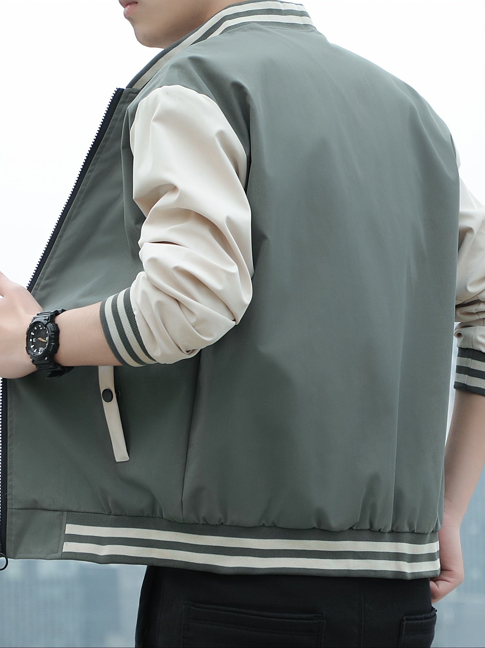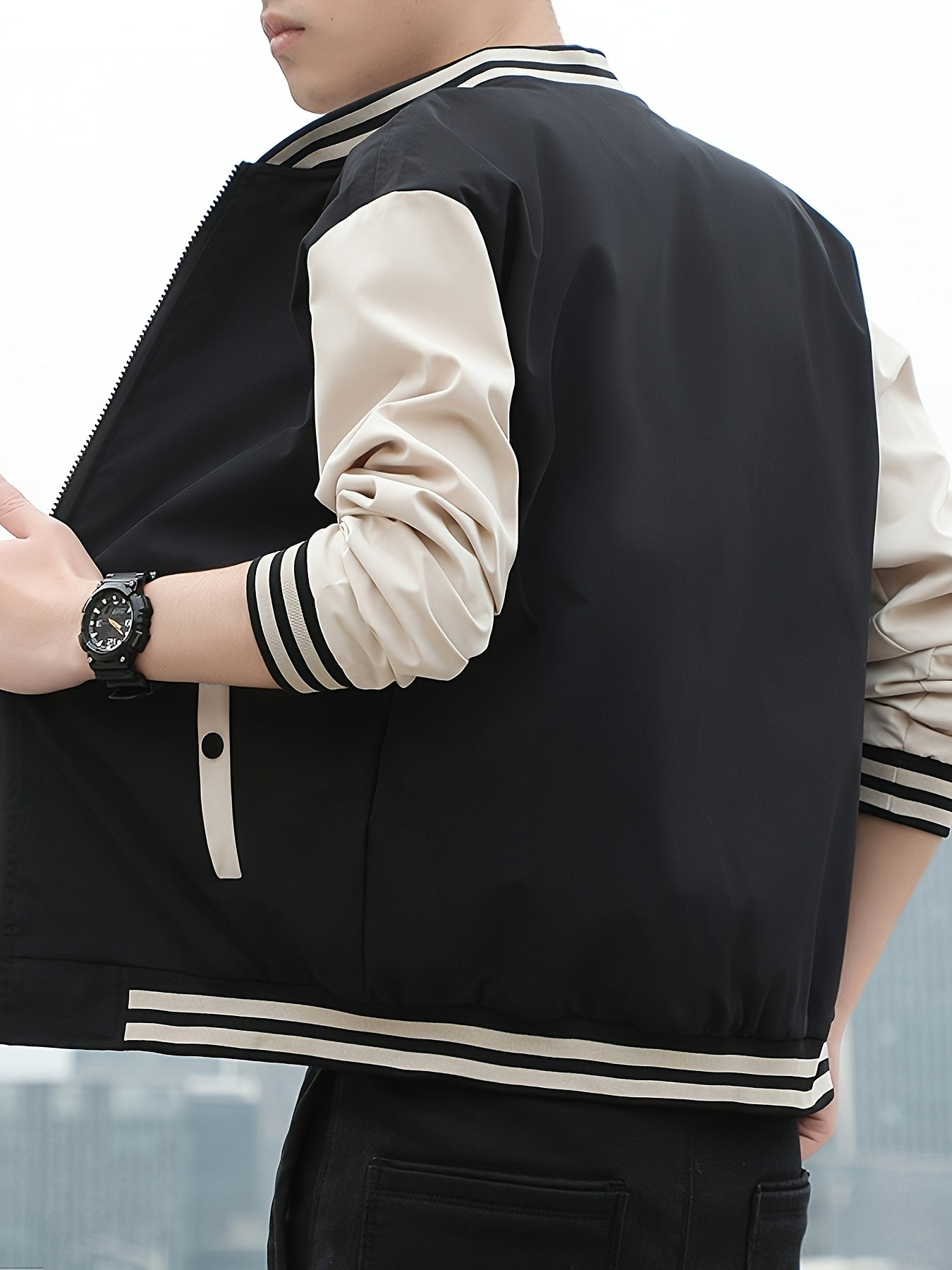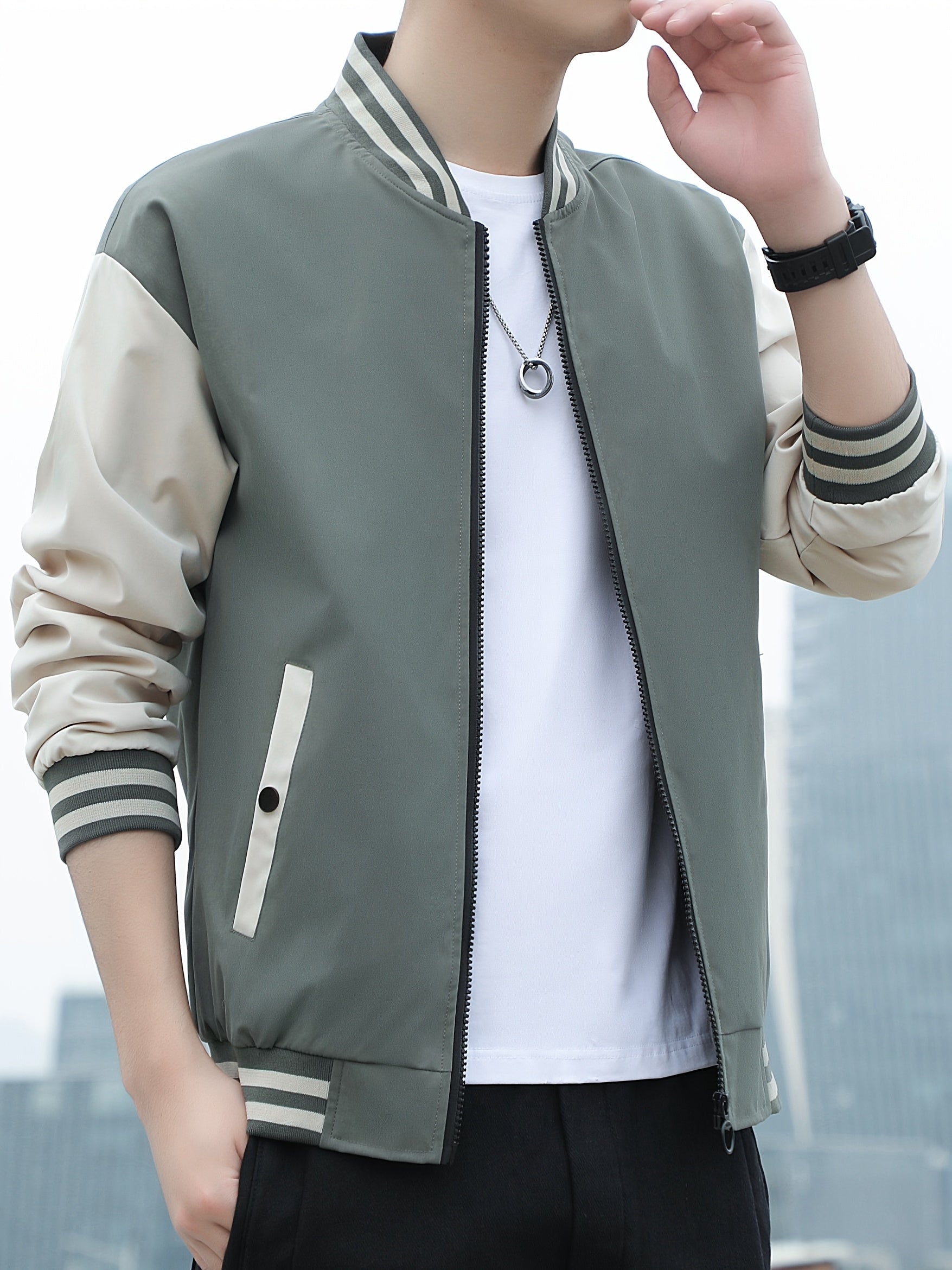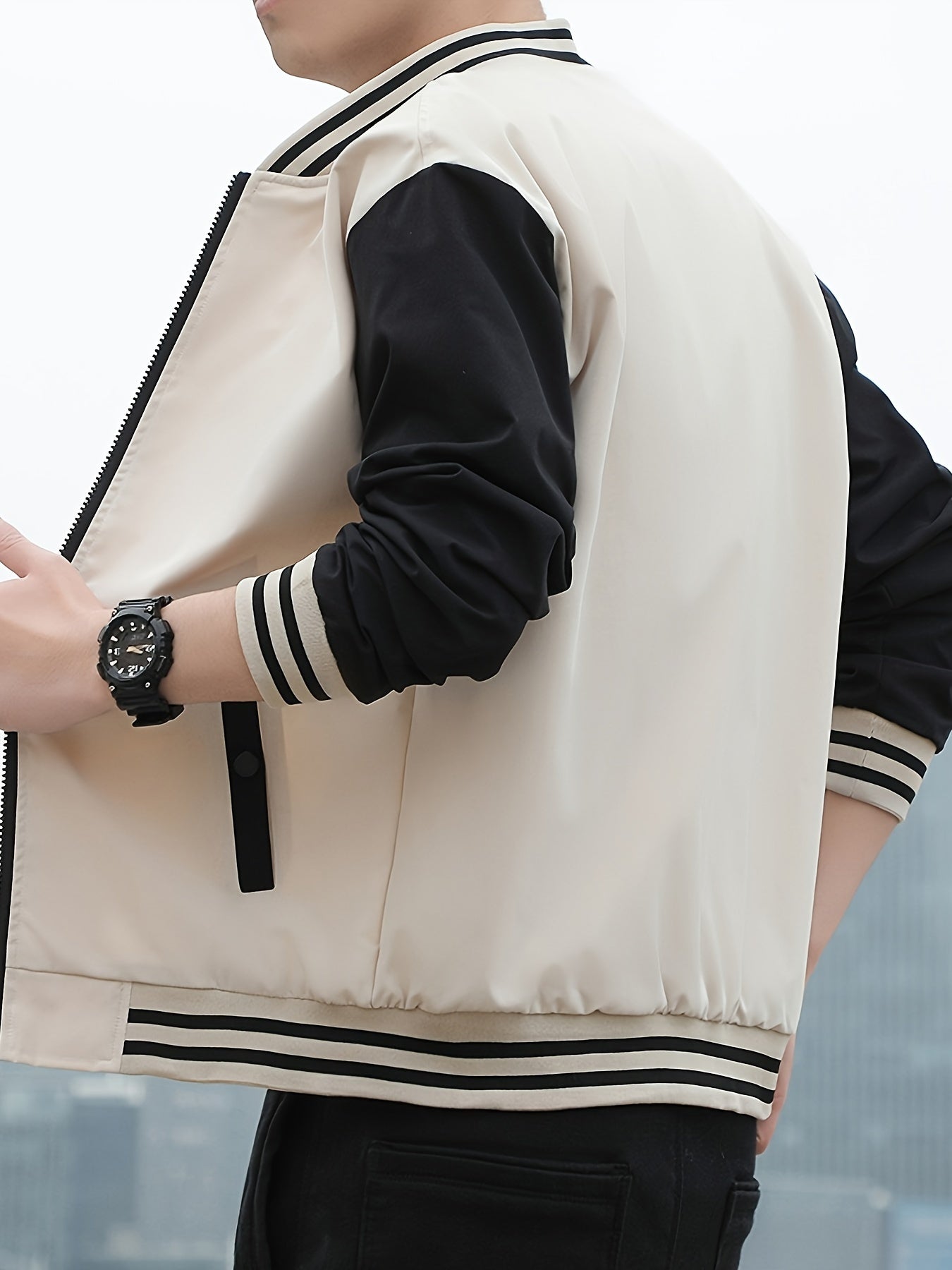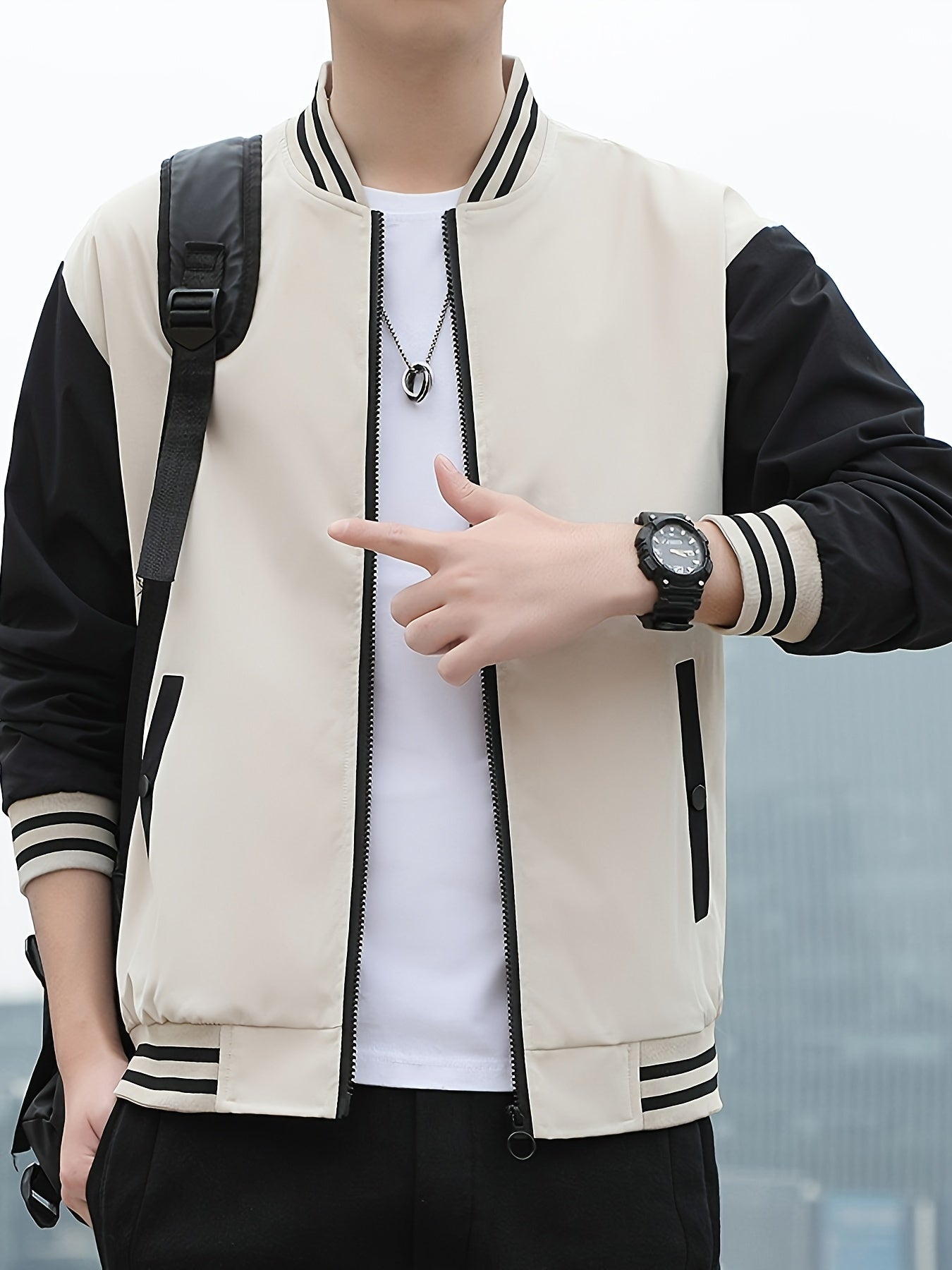 Men'S Lightweight Geometric Pattern Bomber Jacket - Casual Long Sleeve Zip-Up with Pockets, White & Gray, Polyester Lining, Perfect for Fall, Autumn Jacket