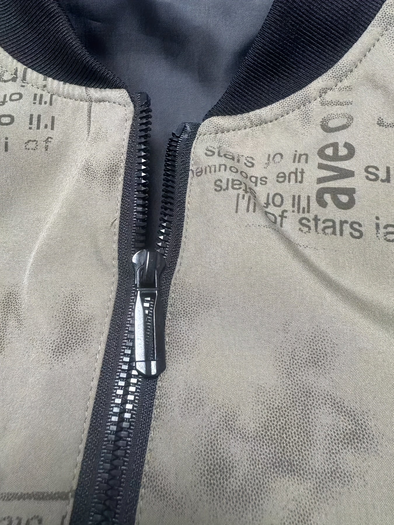 Men'S Lightweight Preppy Bomber Jacket with Feather & Star Print, Stand Collar, Zip-Up, Loose Fit, Polyester Lining, Casual Streetwear Style, Casual Outerwear | Star Pattern Jacket | Zippered Jacket