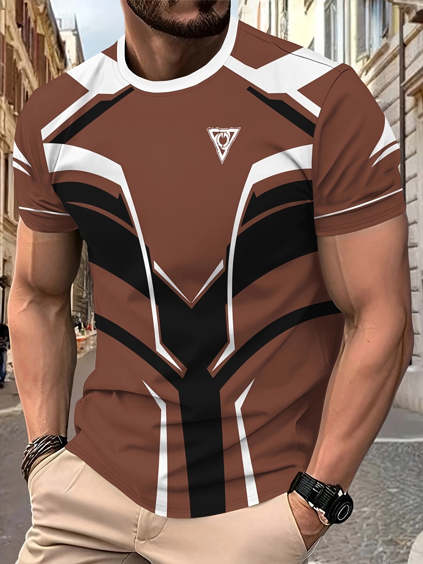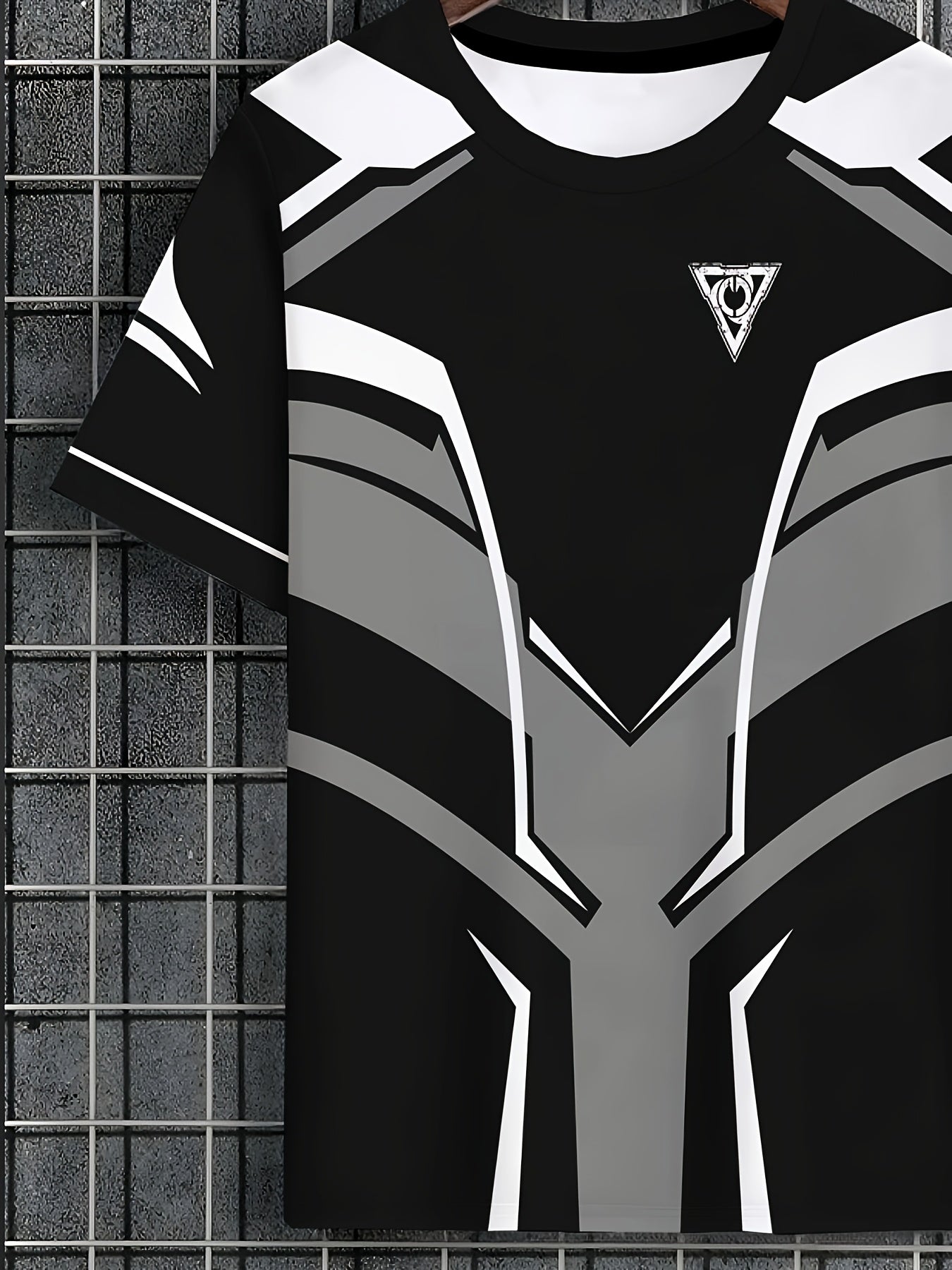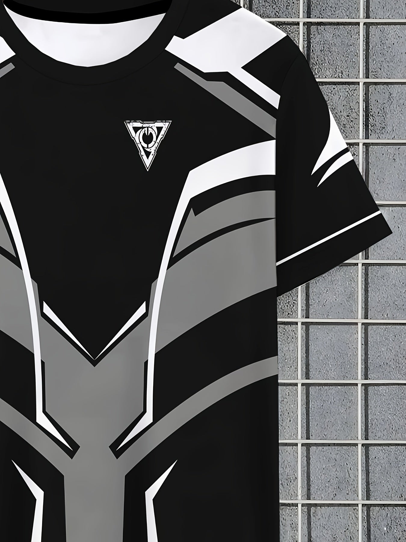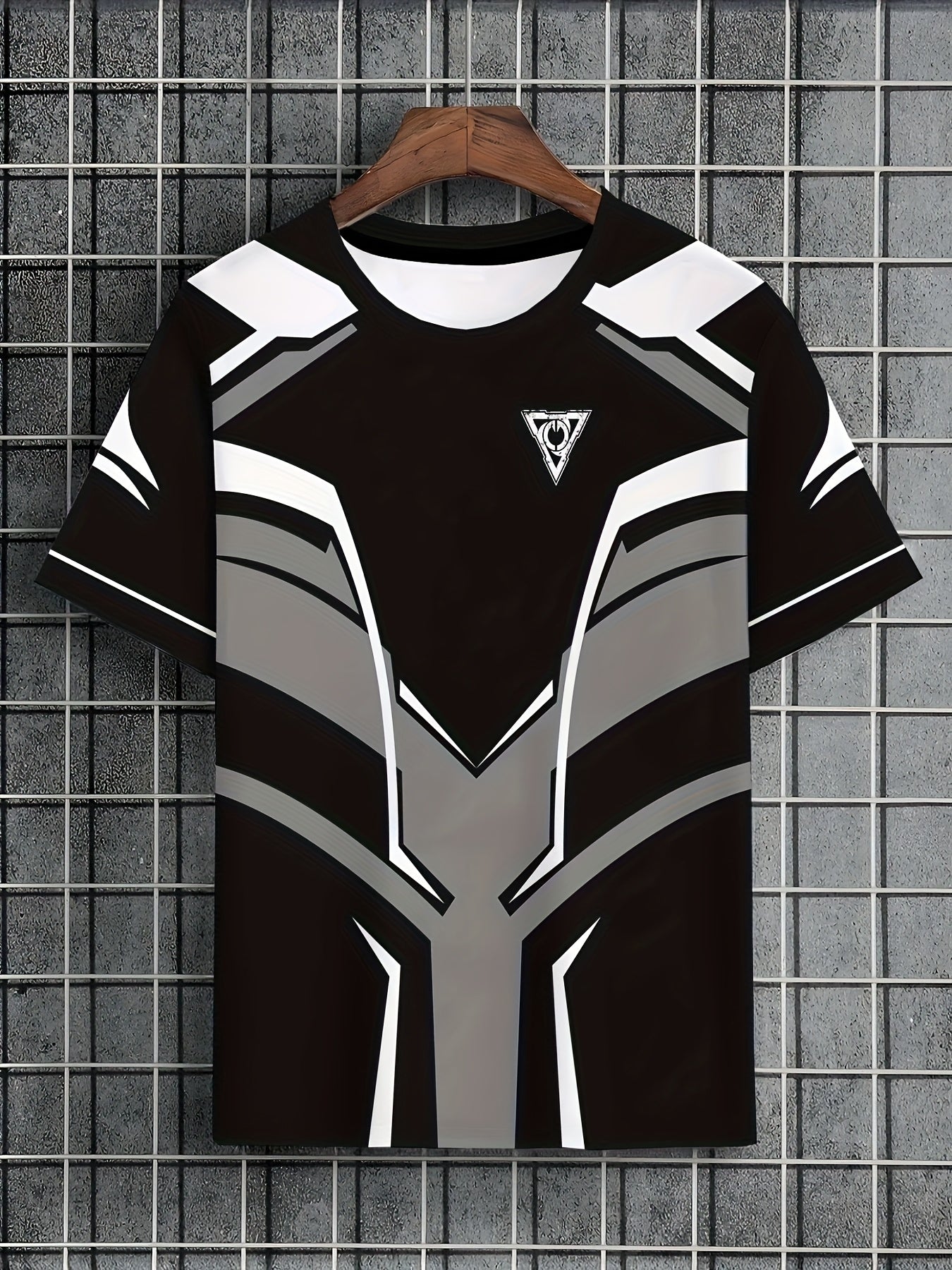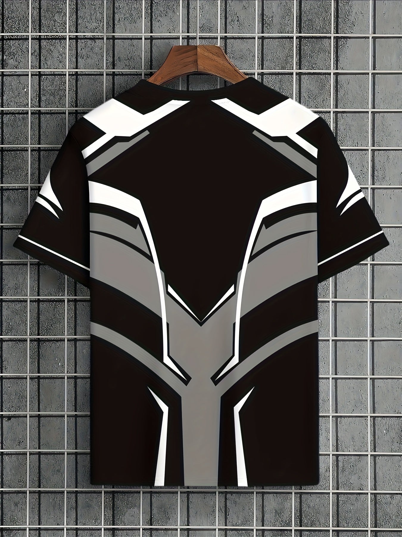 Men's Lightweight Summer T-Shirt - Black/White Print Tee with Modern Angular Lines - Breathable Fabric for Everyday Formal Outfits - Casual Crewneck Shirt for Hot Weather, Summer T Shirts, Stylish Streetwear, Nontransparent