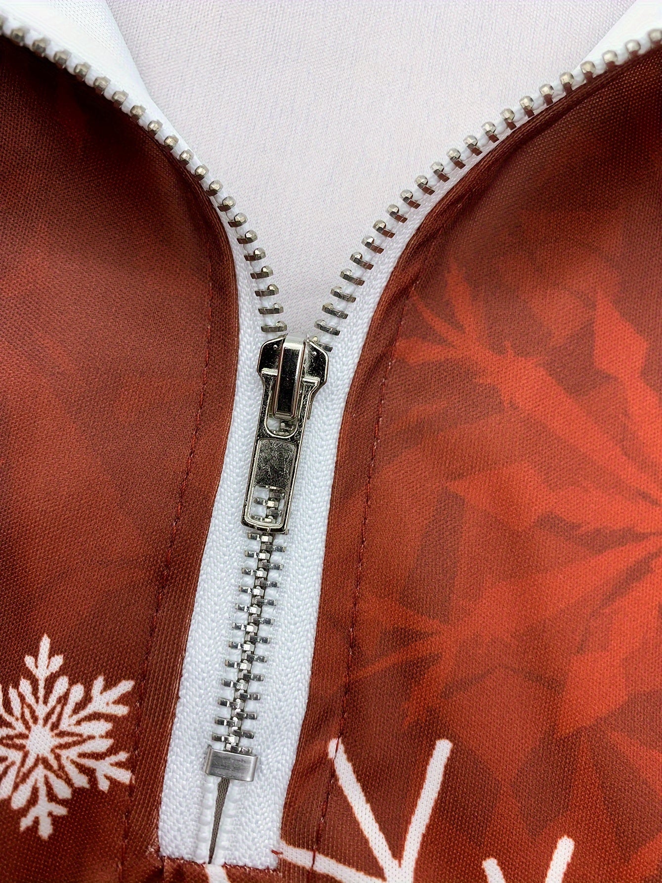 Men's Long Sleeve Christmas Themed Shirt with Zipper, 100% Polyester Knit Fabric, Regular Fit Party Style Collar Top for Spring/Fall