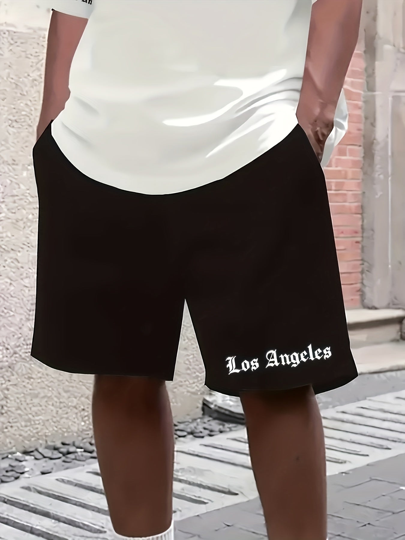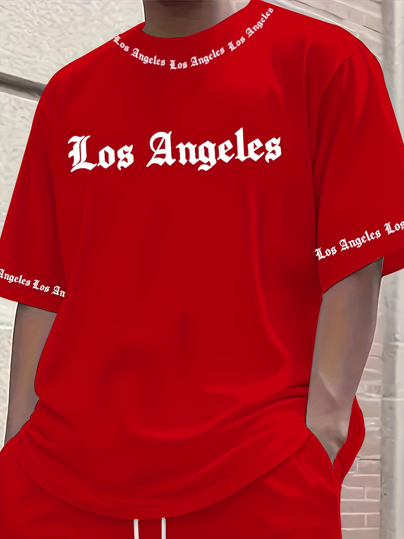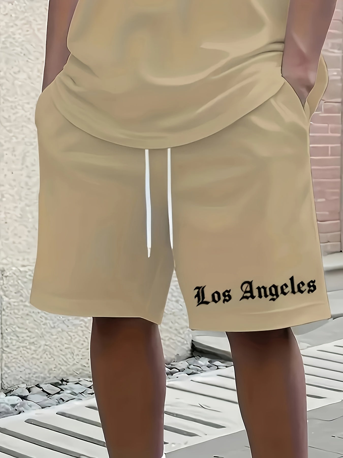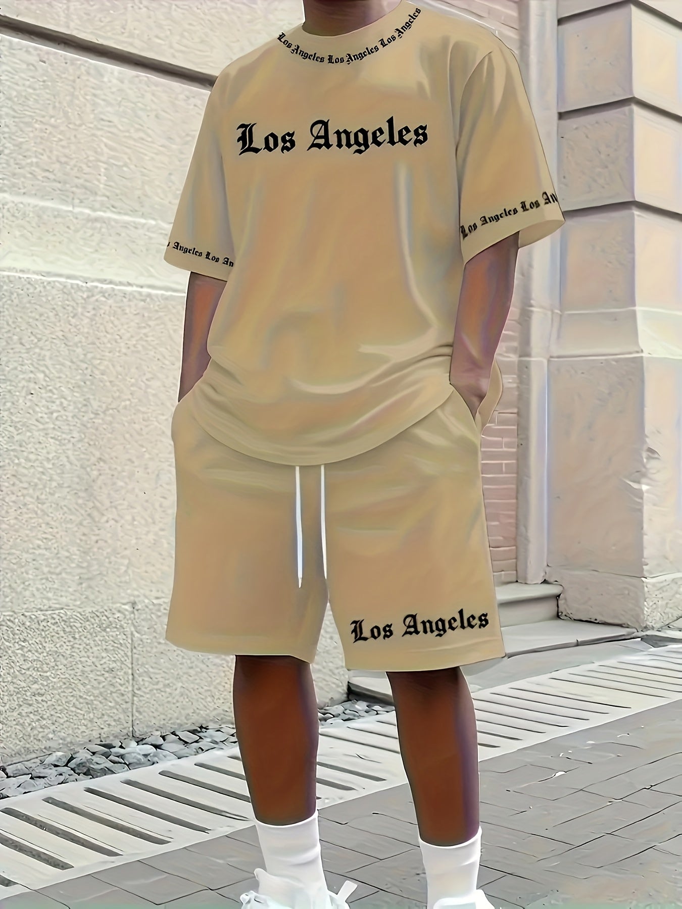 Men'S Los Angeles Graphic Print Casual Sportswear Set - Breathable Summer Short Sleeve T-Shirt & Drawstring Shorts with Pockets, Regular Fit, Crew Neck, Comfortable & Stylish for Casual Attire, Leisure Clothing | Trendy Sport