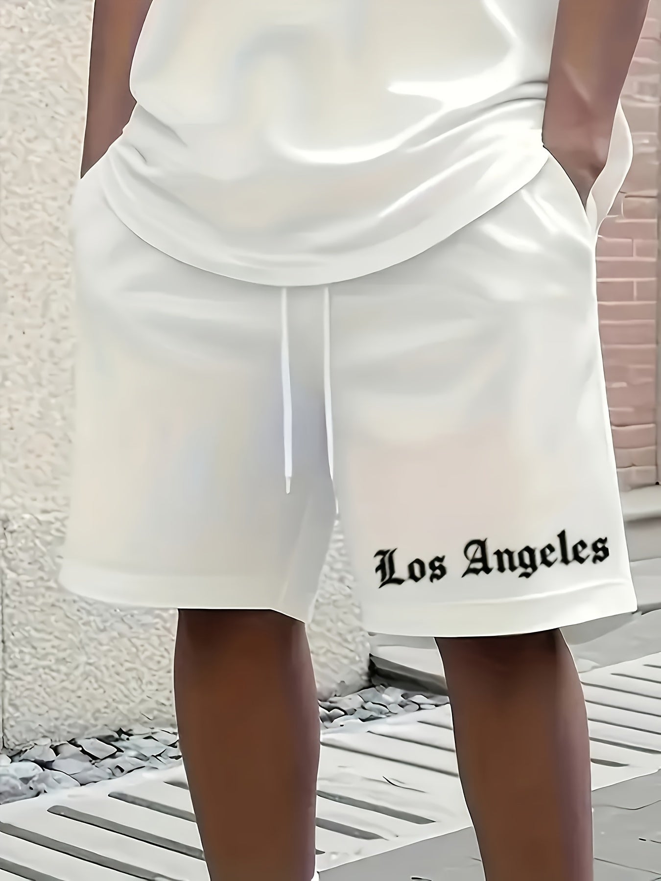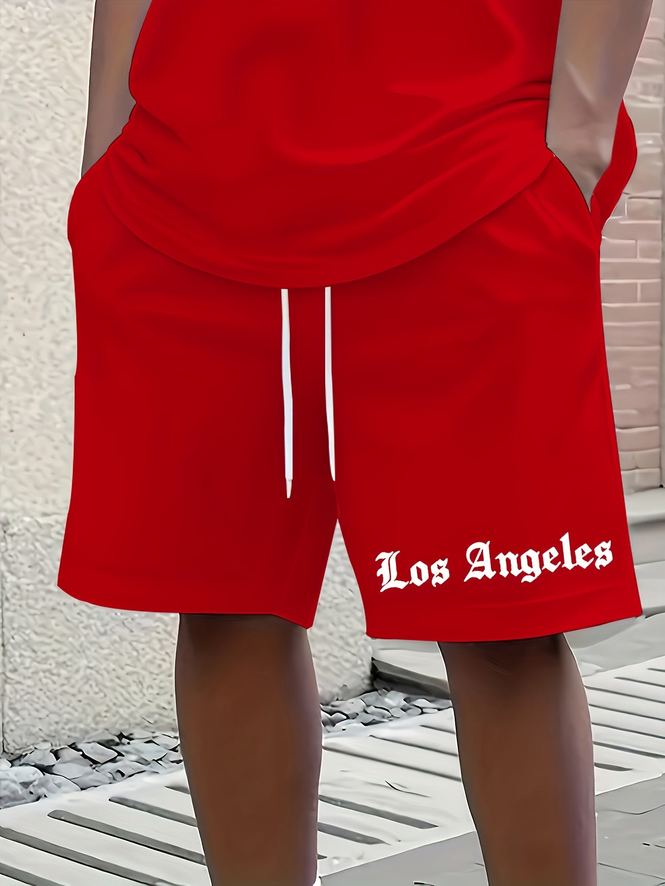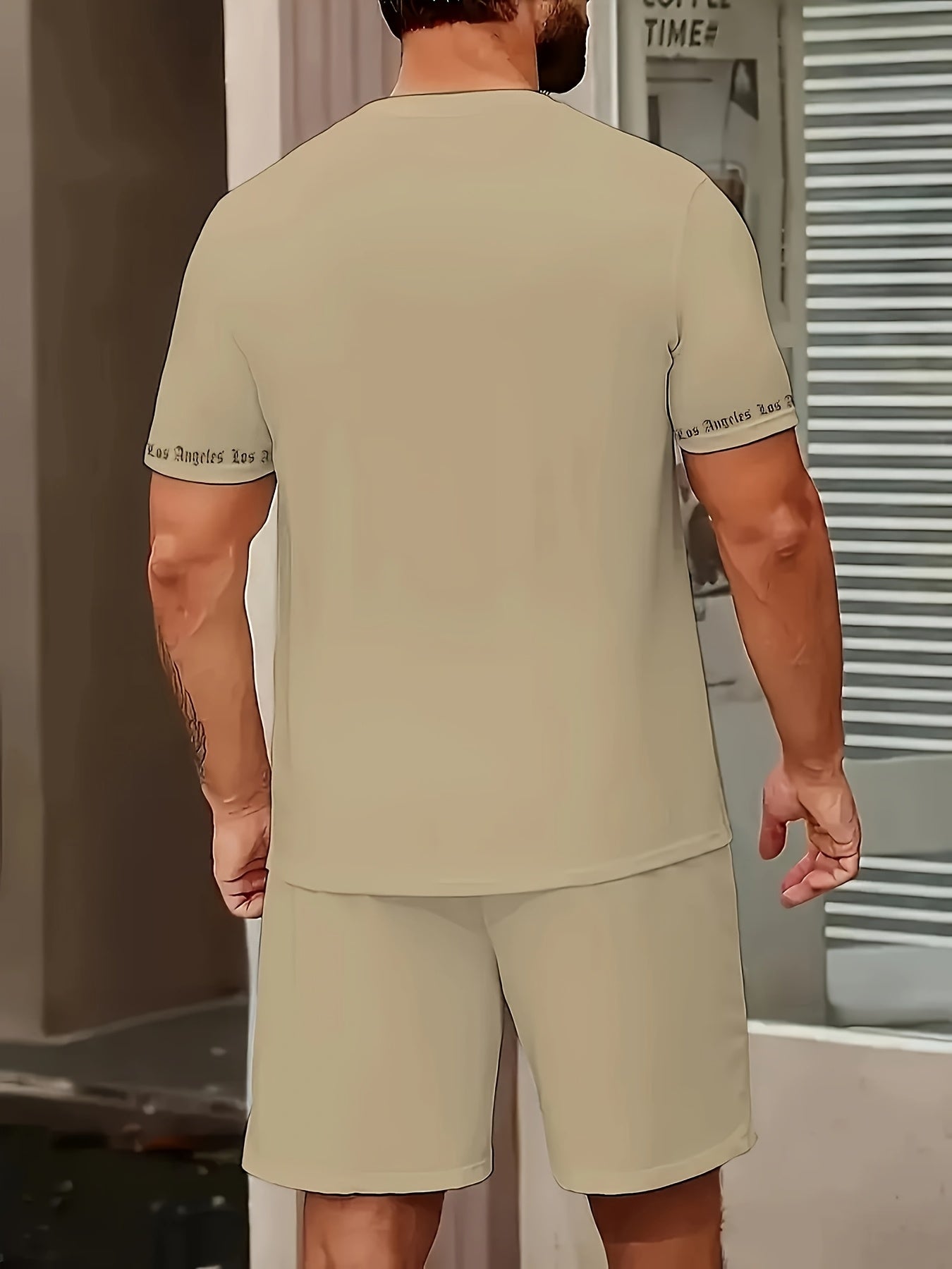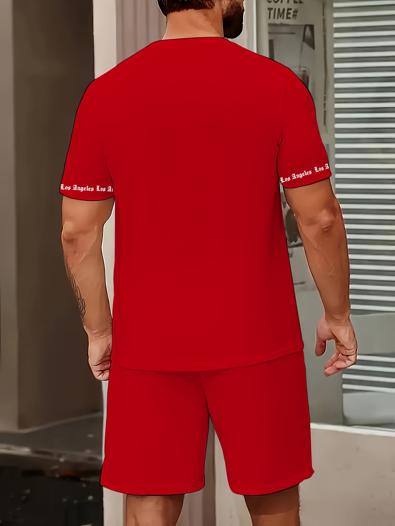 Men'S Los Angeles Graphic Print Casual Sportswear Set - Breathable Summer Short Sleeve T-Shirt & Drawstring Shorts with Pockets, Regular Fit, Crew Neck, Comfortable & Stylish for Casual Attire, Leisure Clothing | Trendy Sport