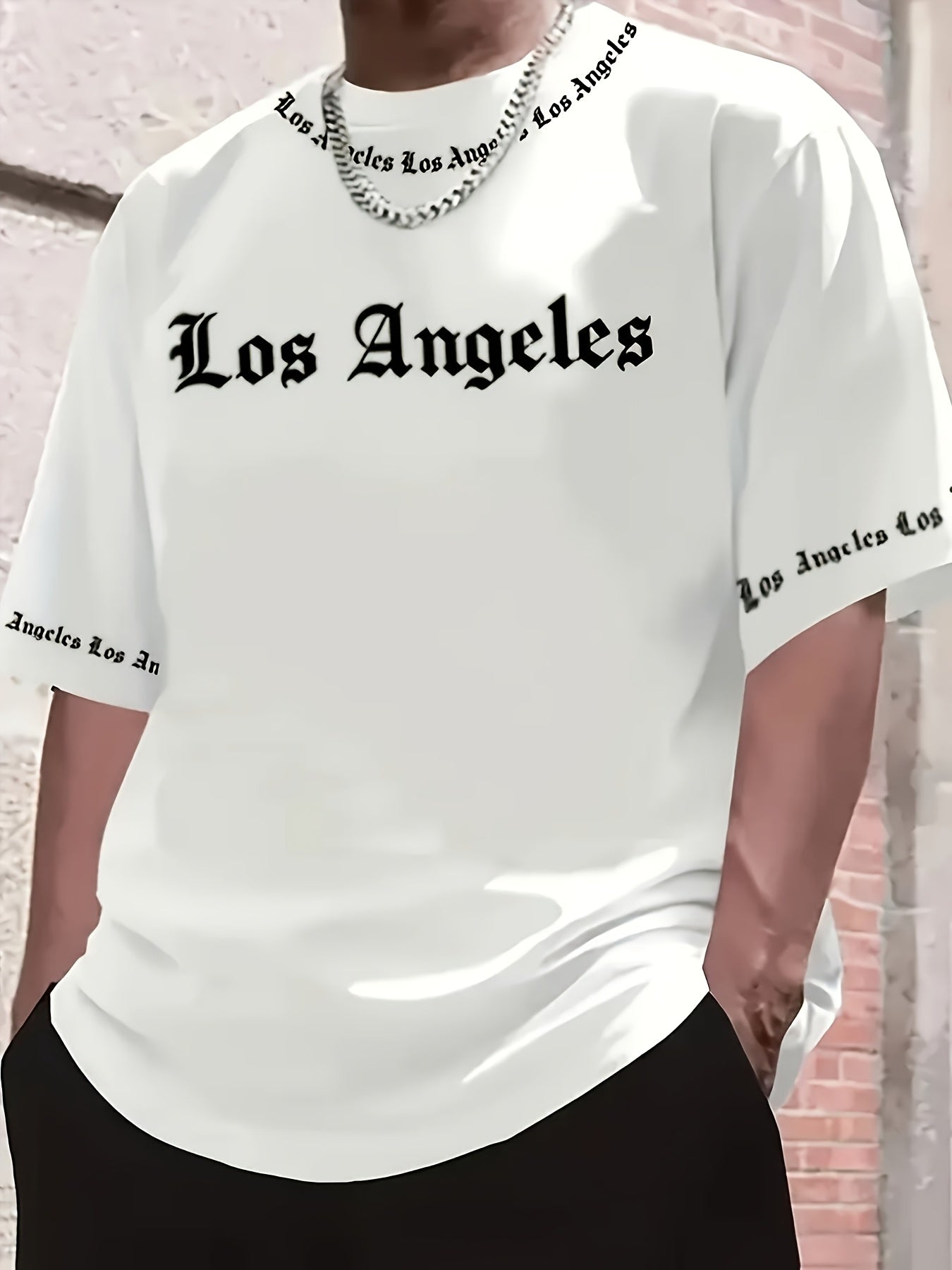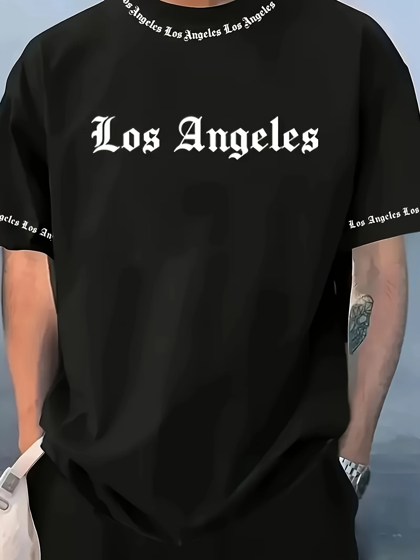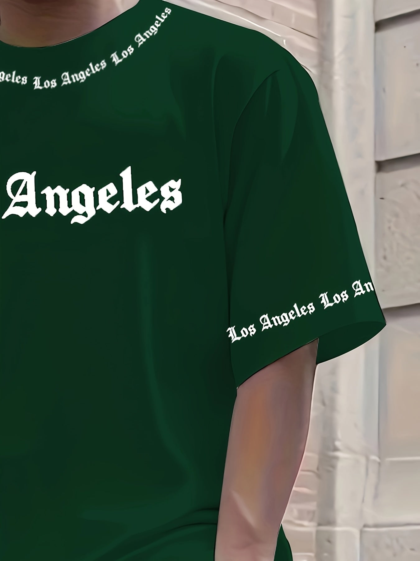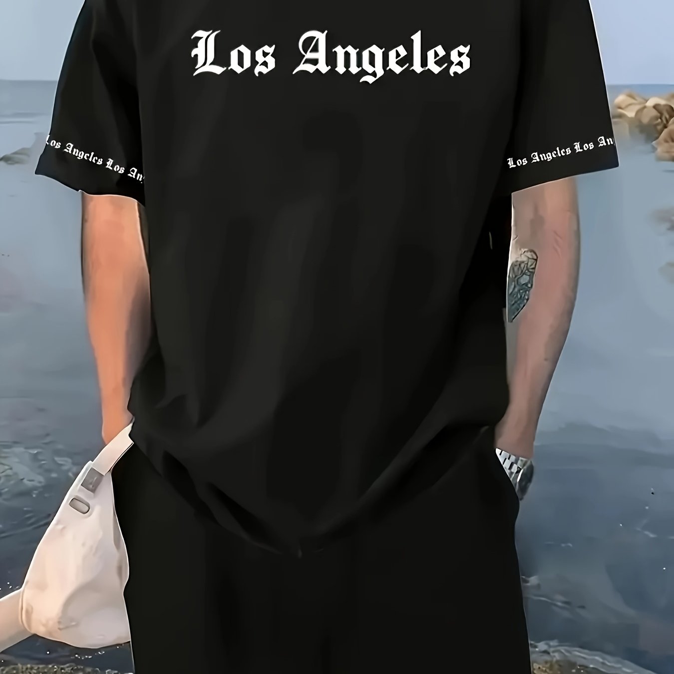 Men'S Los Angeles Graphic Print Casual Sportswear Set - Breathable Summer Short Sleeve T-Shirt & Drawstring Shorts with Pockets, Regular Fit, Crew Neck, Comfortable & Stylish for Casual Attire, Leisure Clothing | Trendy Sport