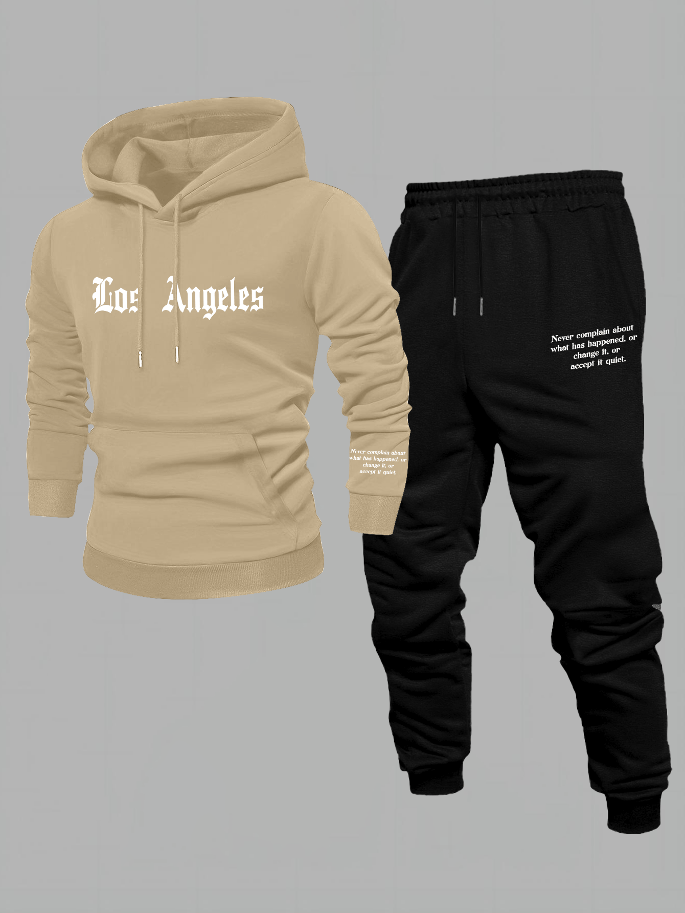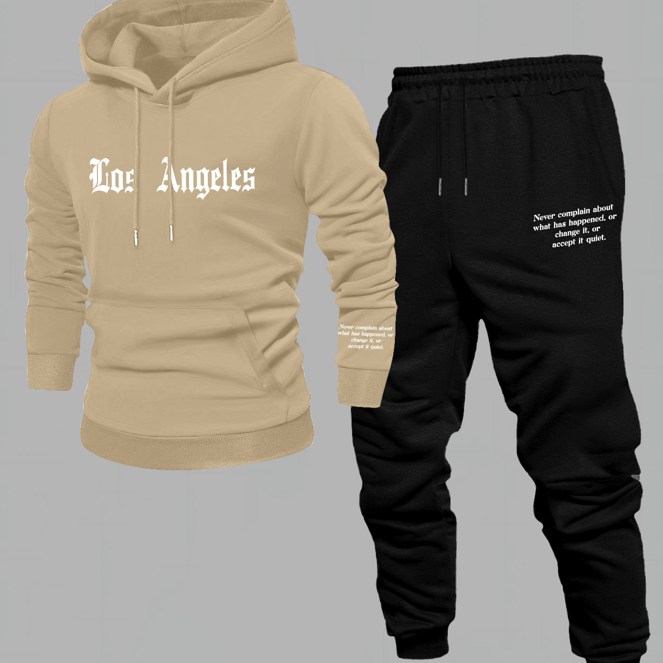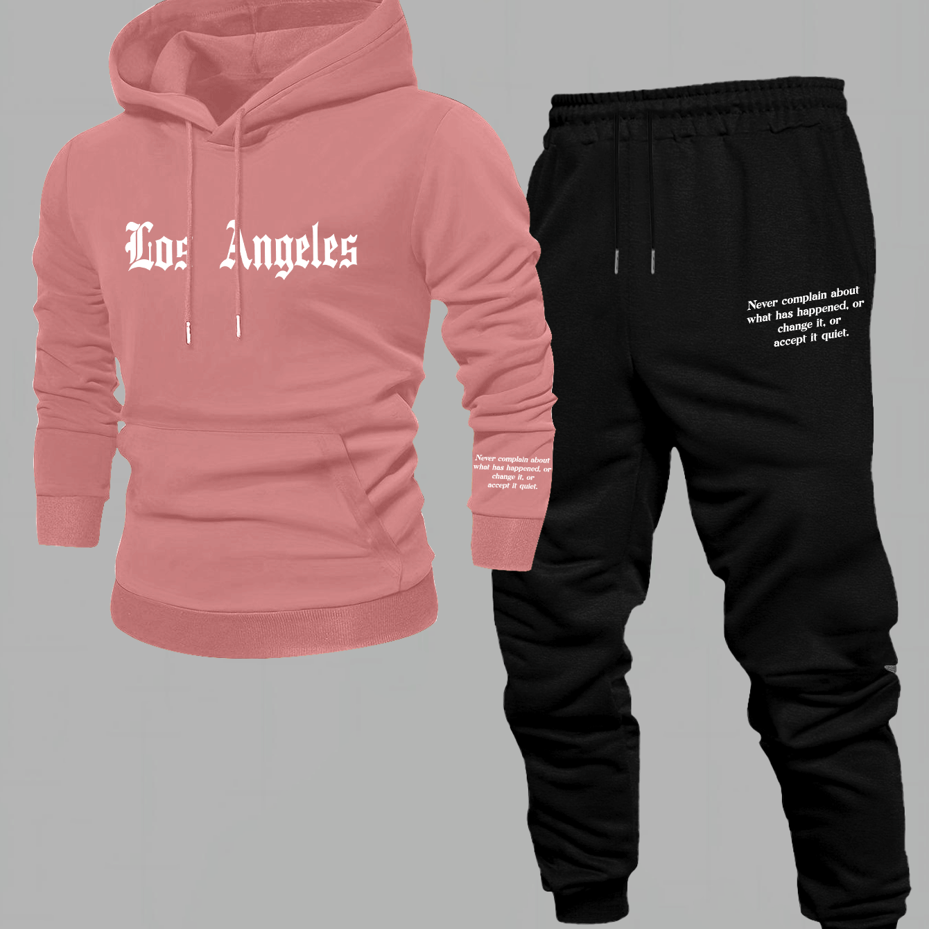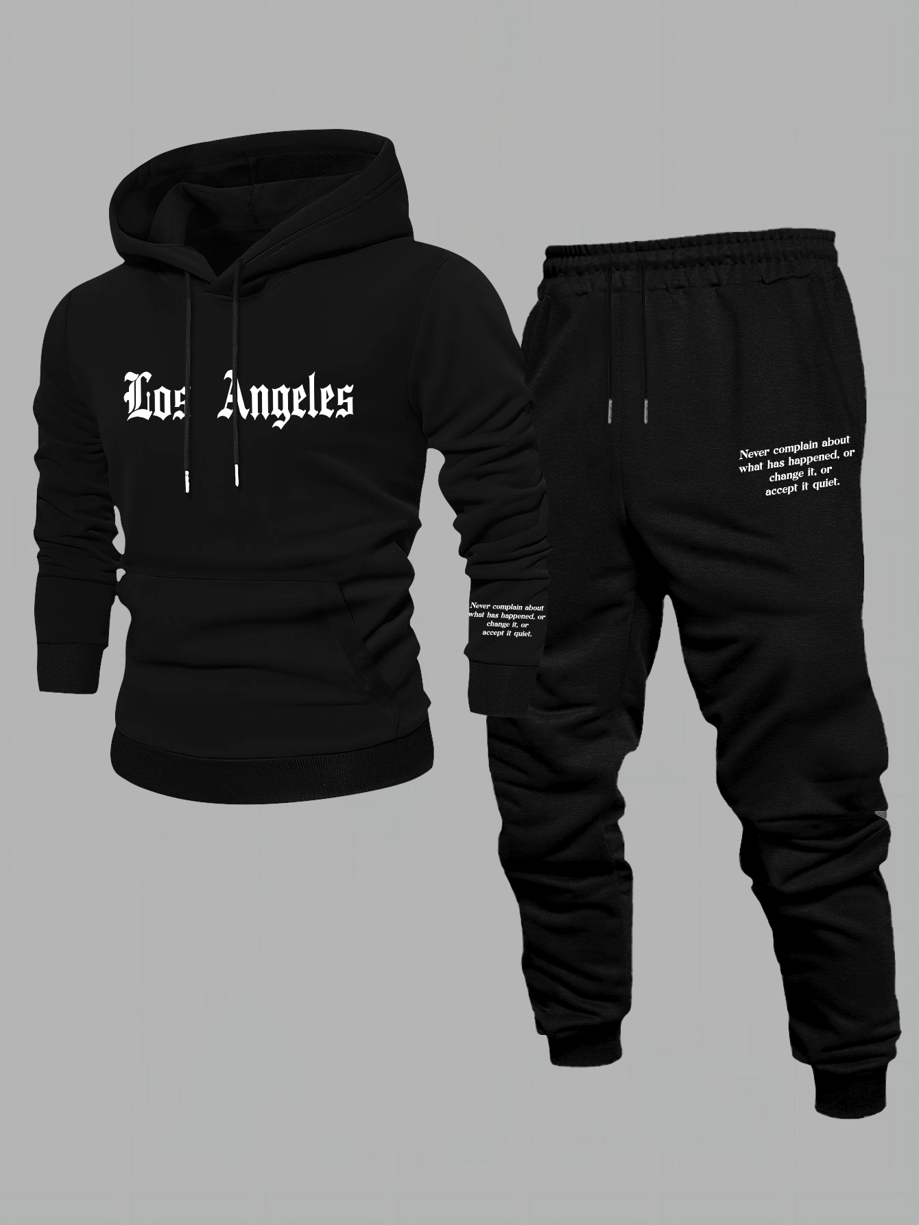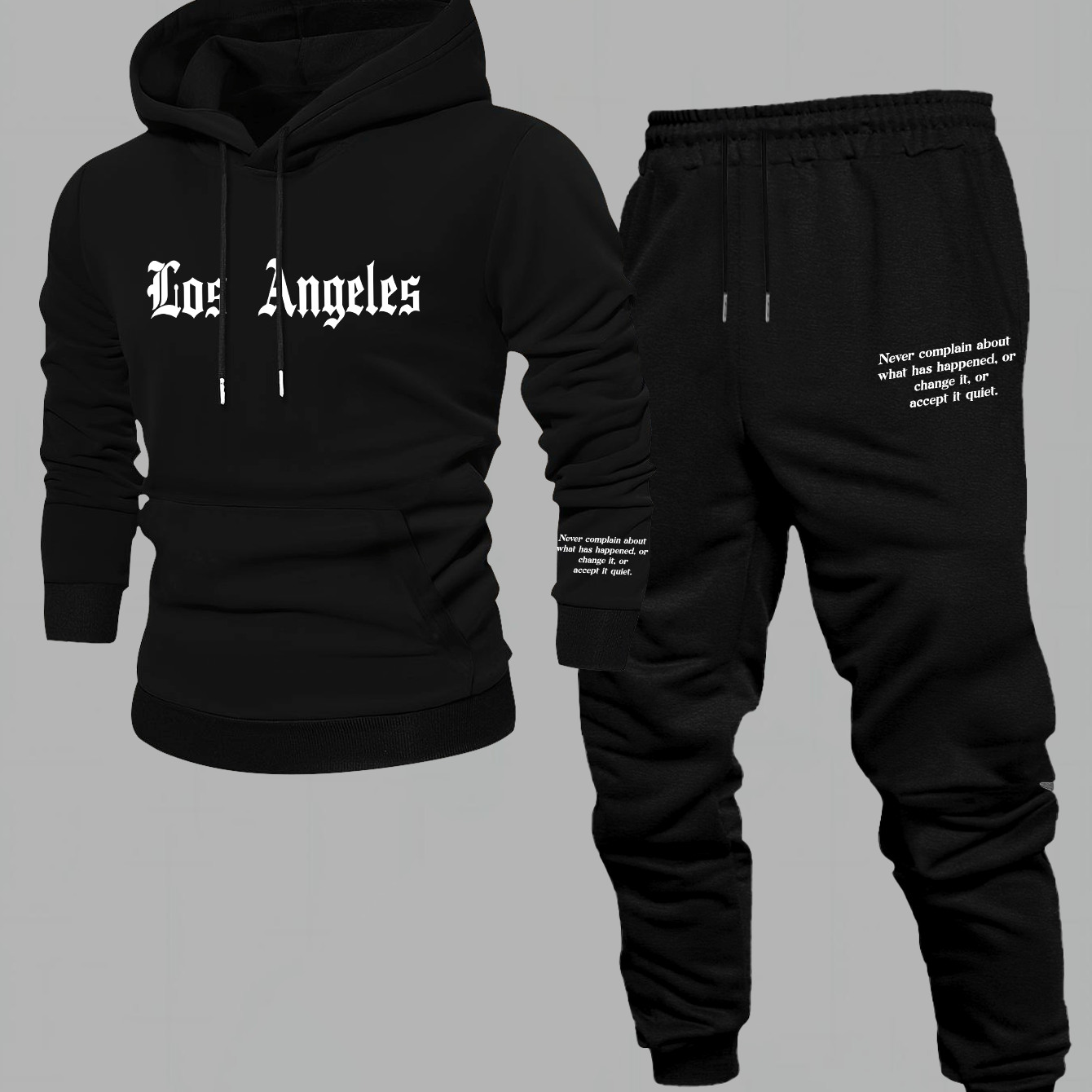 Men'S Los Angeles Print Hoodie And Sweatpants Set - Casual American Streetwear Style, Cozy Fall/Winter Activewear with Geometric Pattern, Slight Stretch Fabric, Hooded Top & Joggers, Casual Wear|Geometric Pattern Hoodiee Jogg