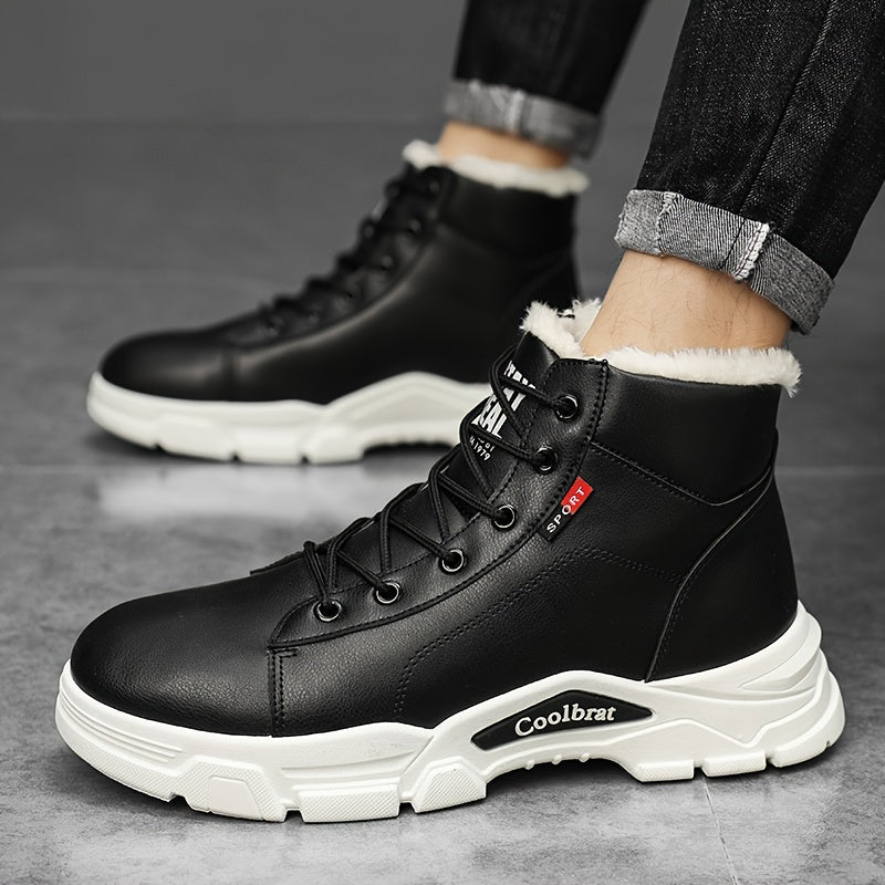 Men'S Mid-Calf Fleece-Lined Thick Sole Hiking Boots - Brown Synthetic Synthetic Faux, Lace-Up Outdoor Trekking Shoes with Cushioned PVC Sole for Winter & Fall, Casual Streetwear Style, Winter Hiking Boots, Durable Traction Fo