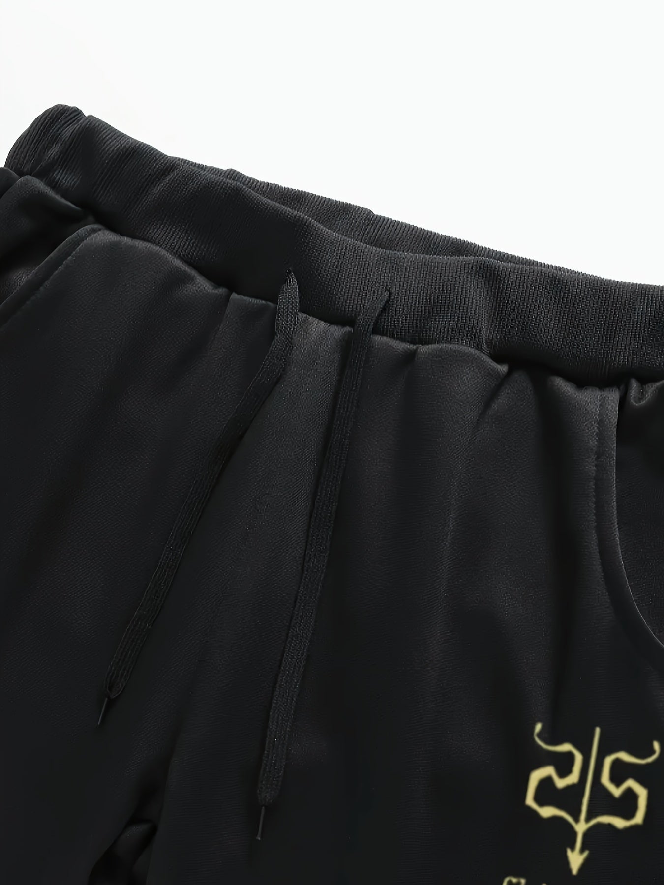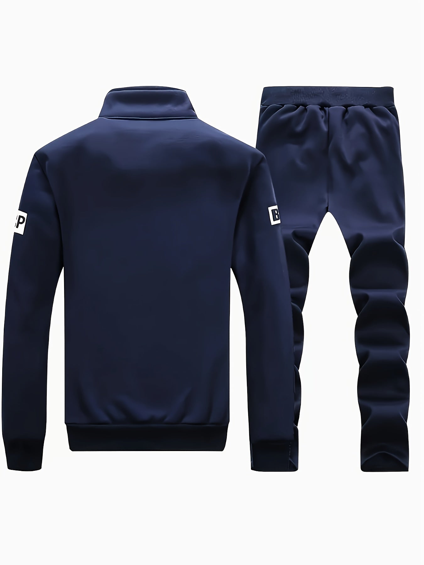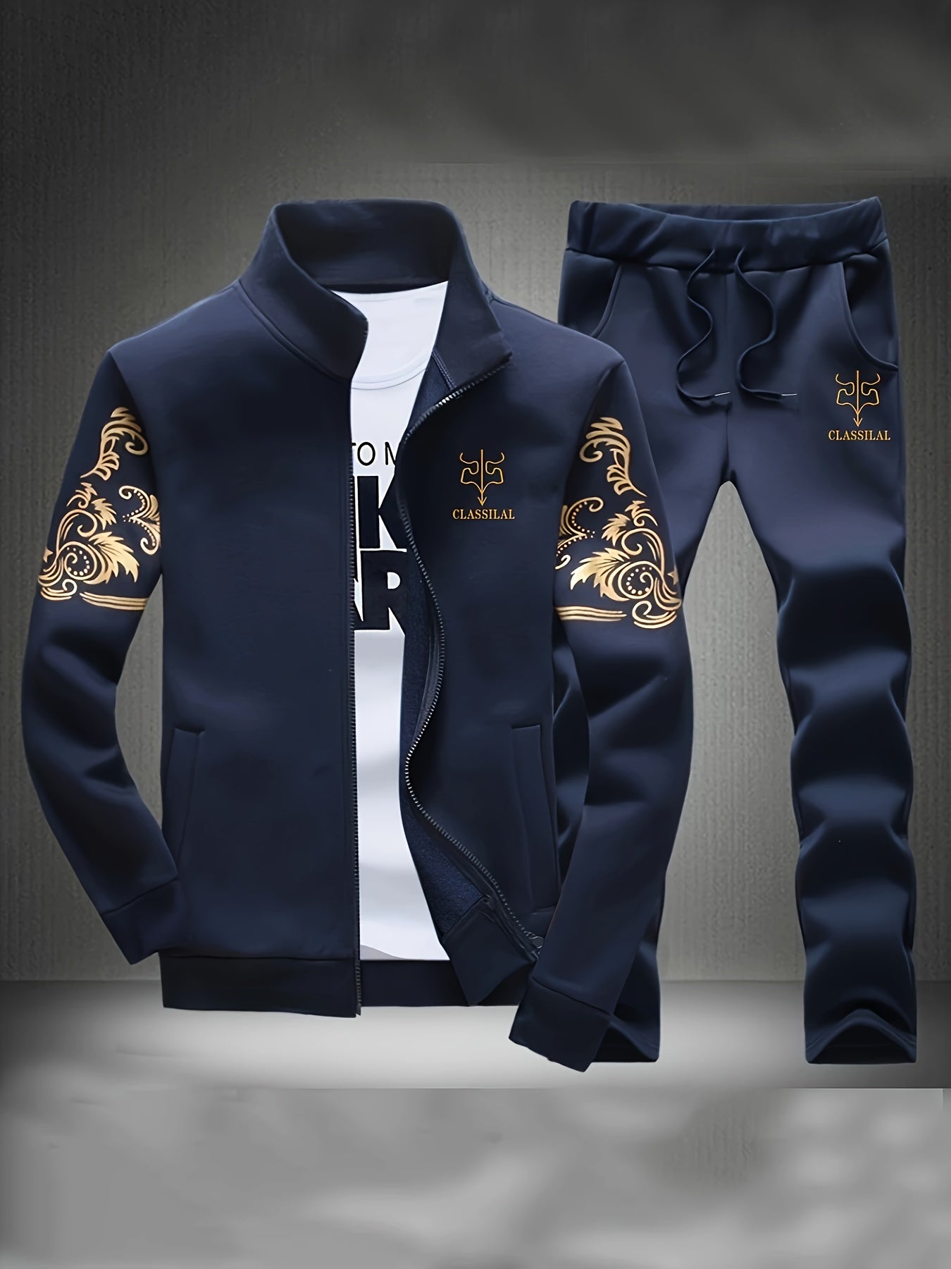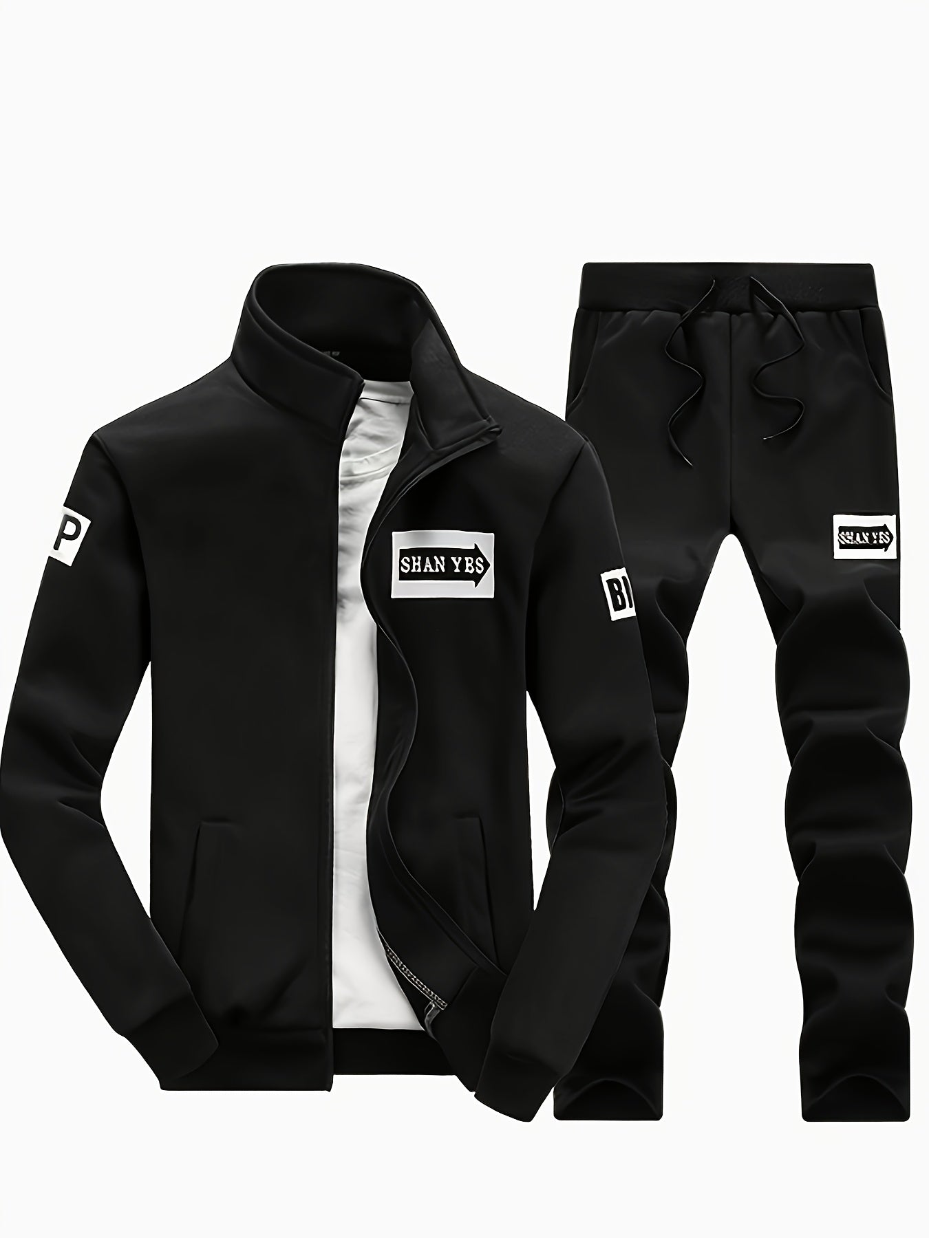 Men'S Navy Blue "Shan Yes" Print Casual Sports Suit - Zip-Up Hoodie & Joggers with Pockets, Regular Fit for Spring & Fall, Comfortable Leisure Wear, Leisure Wear Hoodie | Sporty Hoodie | Zipper Closure, Essential Hoodie