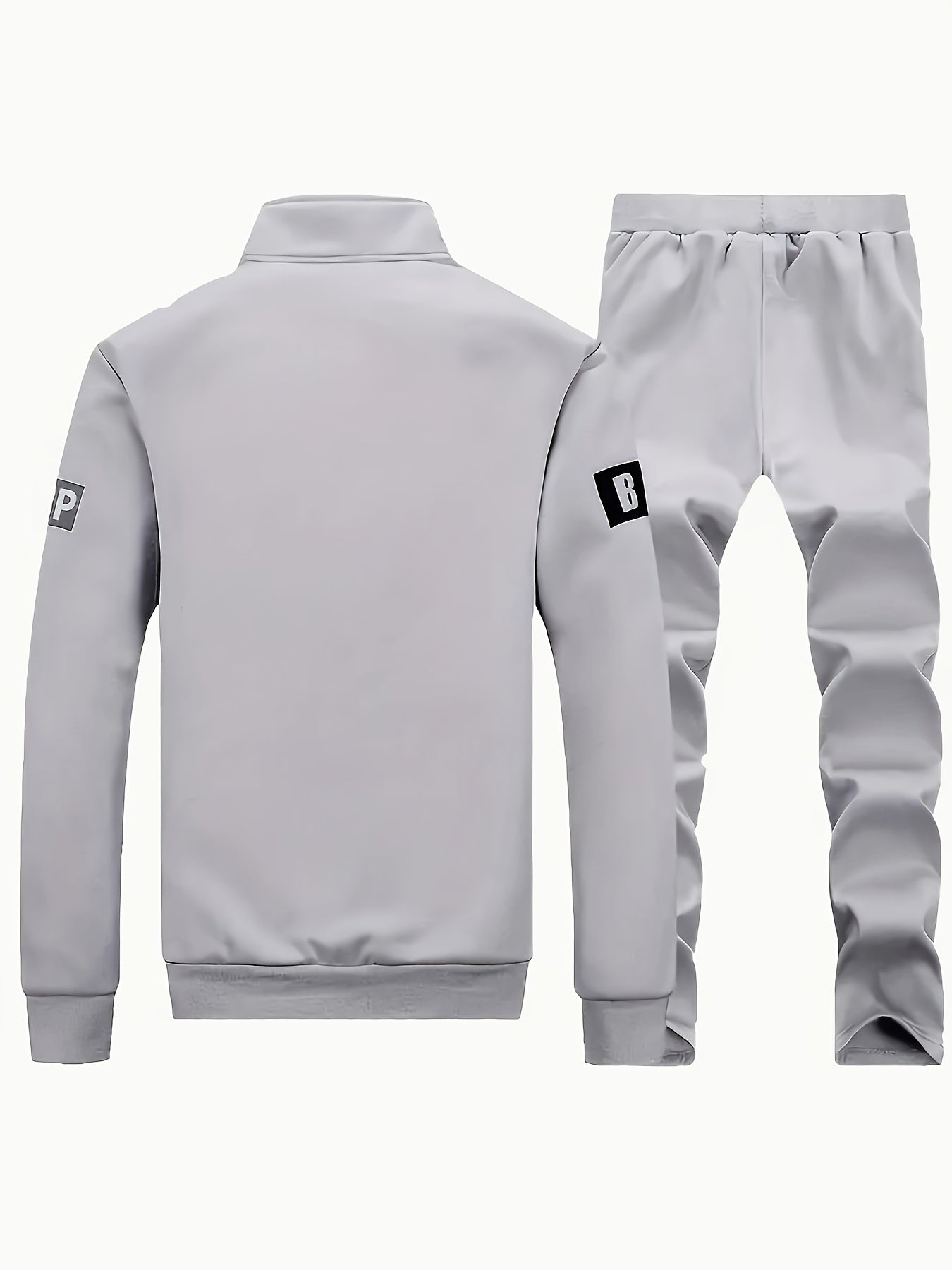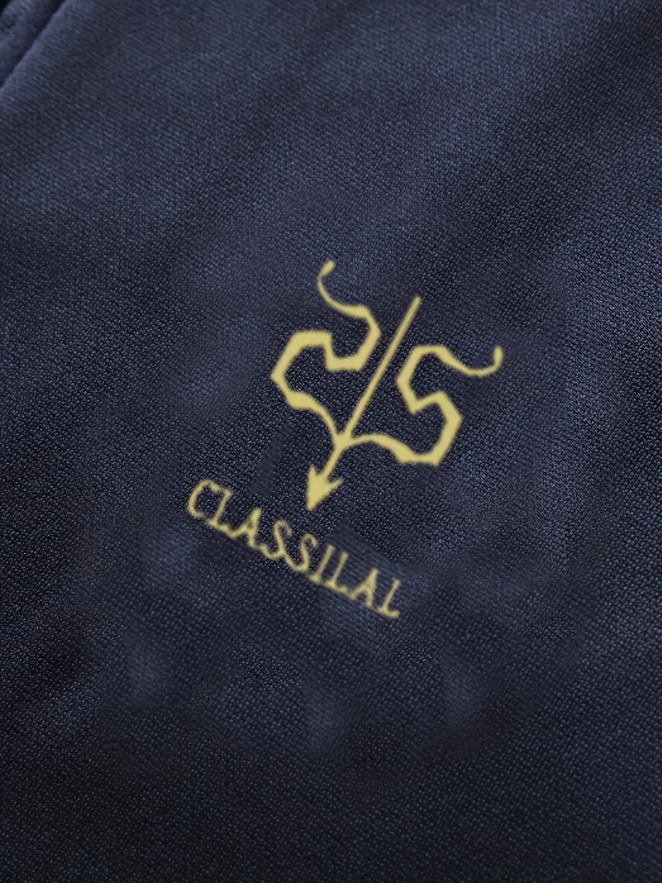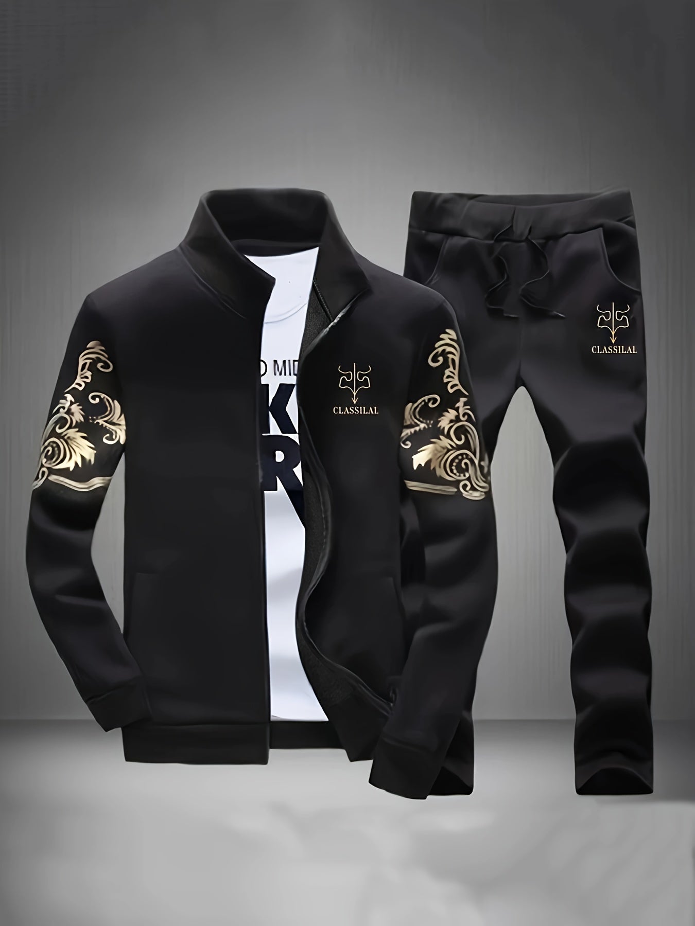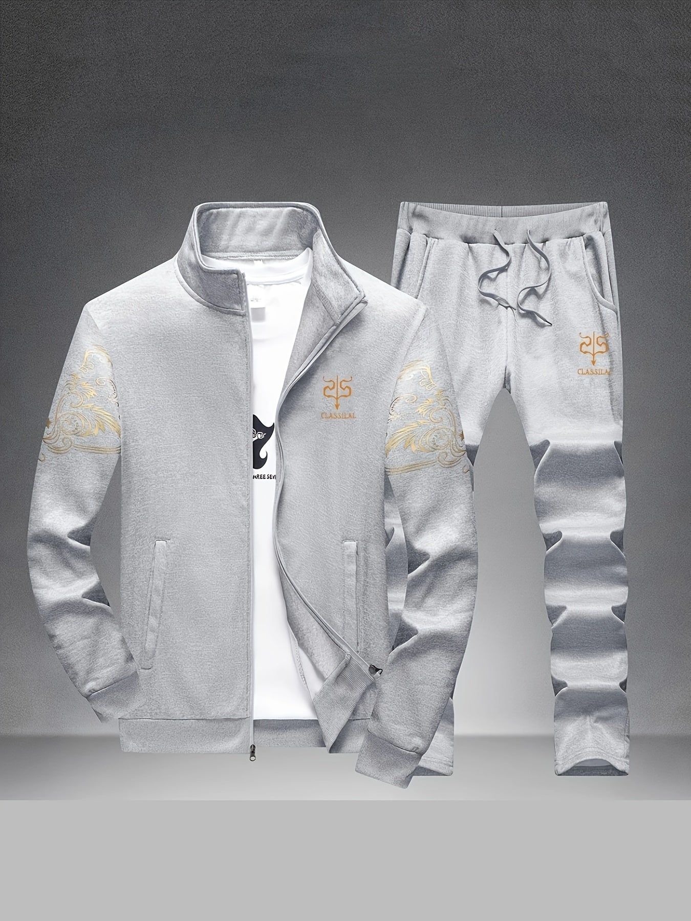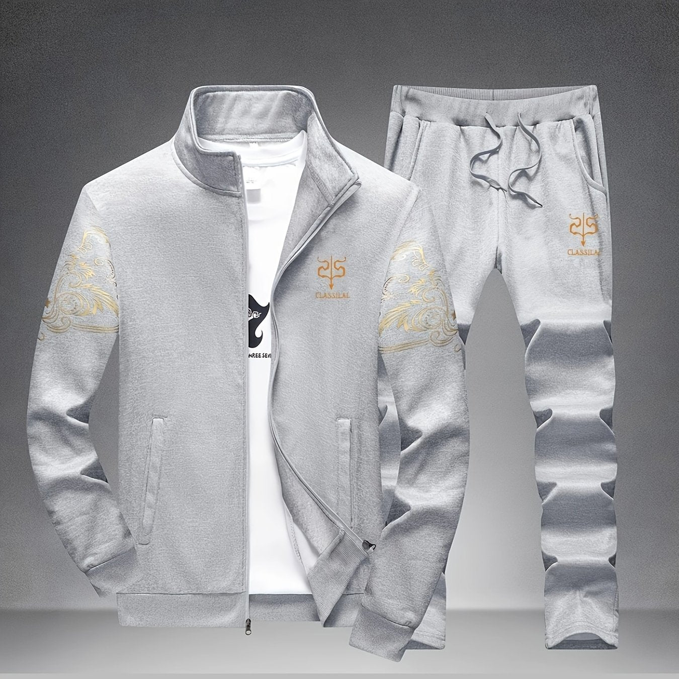 Men'S Navy Blue "Shan Yes" Print Casual Sports Suit - Zip-Up Hoodie & Joggers with Pockets, Regular Fit for Spring & Fall, Comfortable Leisure Wear, Leisure Wear Hoodie | Sporty Hoodie | Zipper Closure, Essential Hoodie